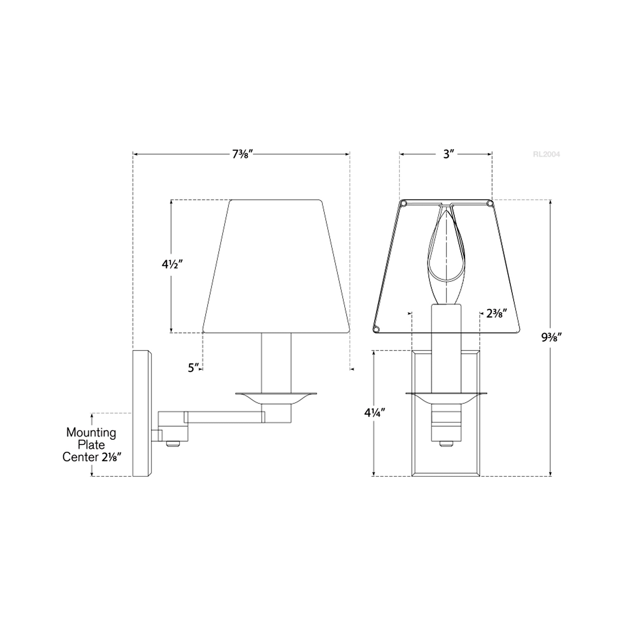 - 1-Light/Rectangle: 5"W X 9.38"H; 7.38" Extension