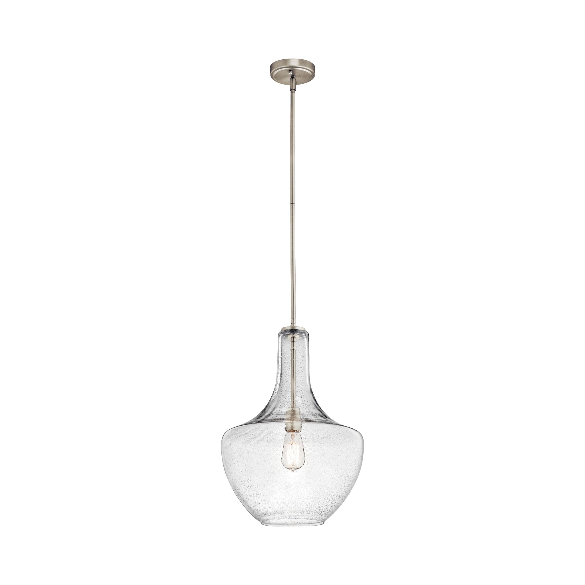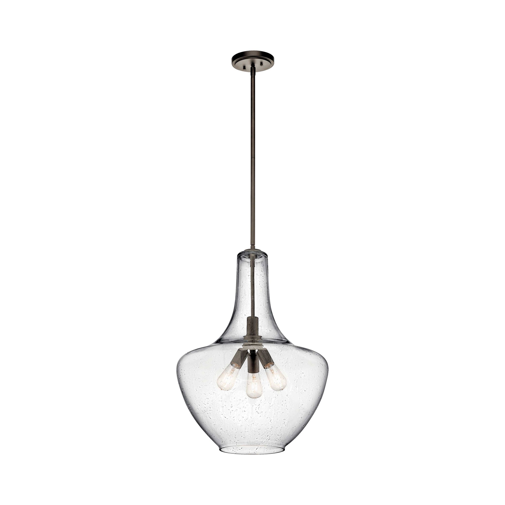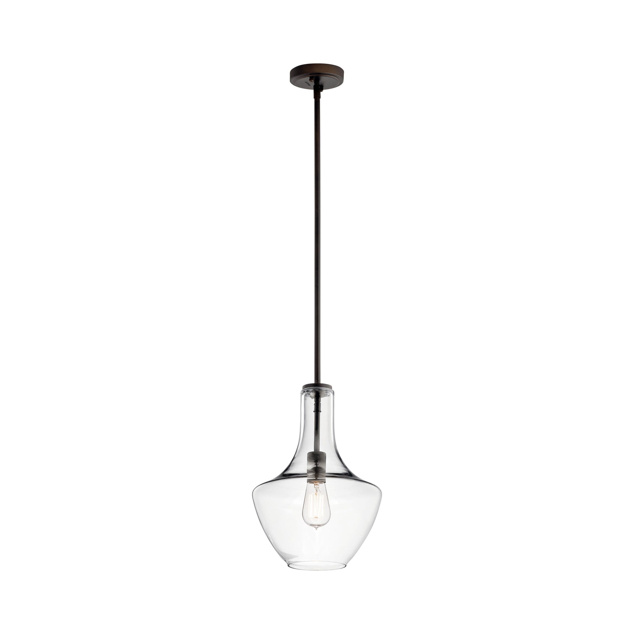 Delicacy and simplicity form a tasteful motif to interior lighting with the Everly Bell Pendant Light from Kichler, merging elegant curved, blown glass shades with the clean lines of a straight metal down rod.
