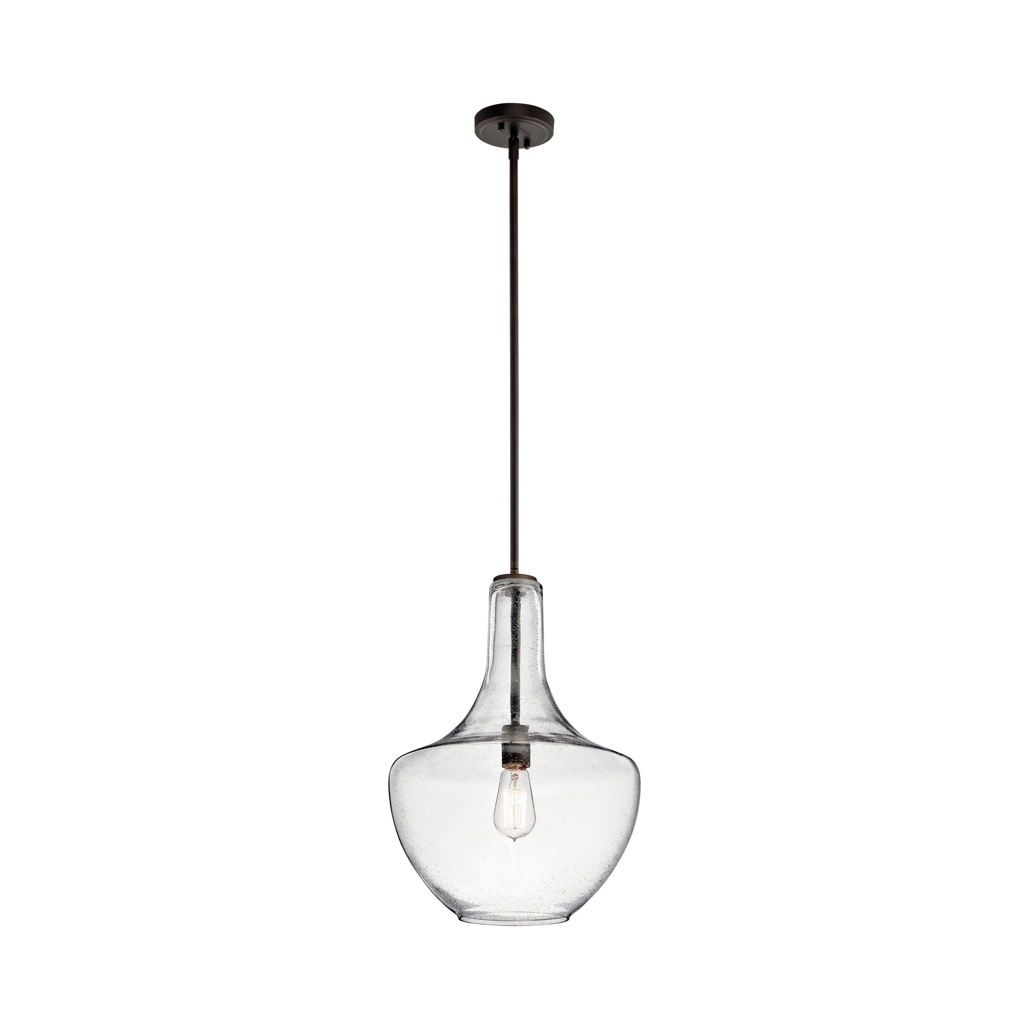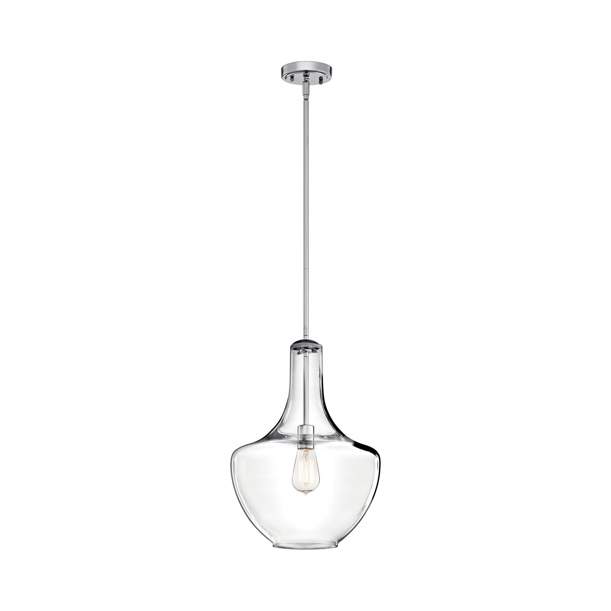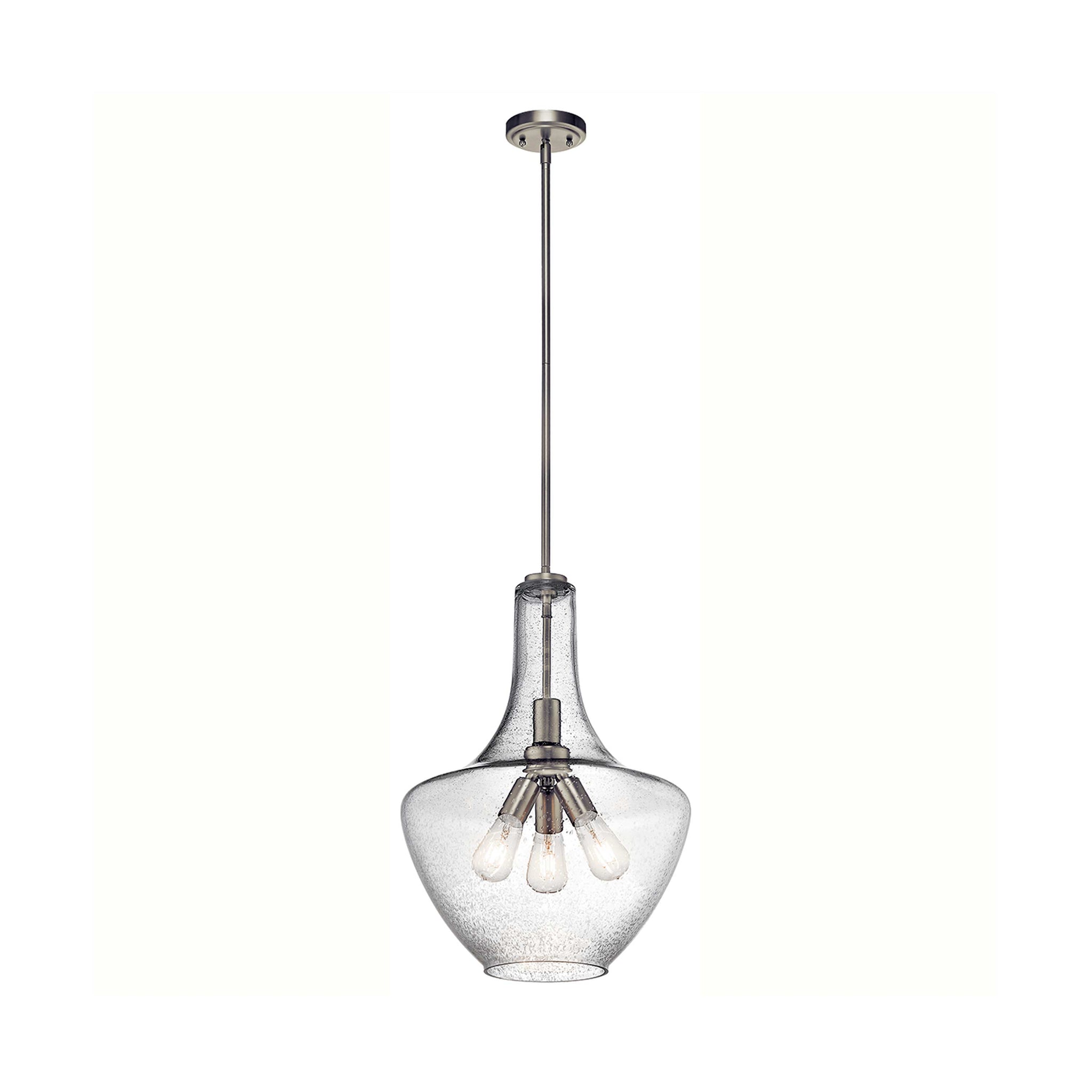 Delicacy and simplicity form a tasteful motif to interior lighting with the Everly Bell Pendant Light from Kichler, merging elegant curved, blown glass shades with the clean lines of a straight metal down rod.