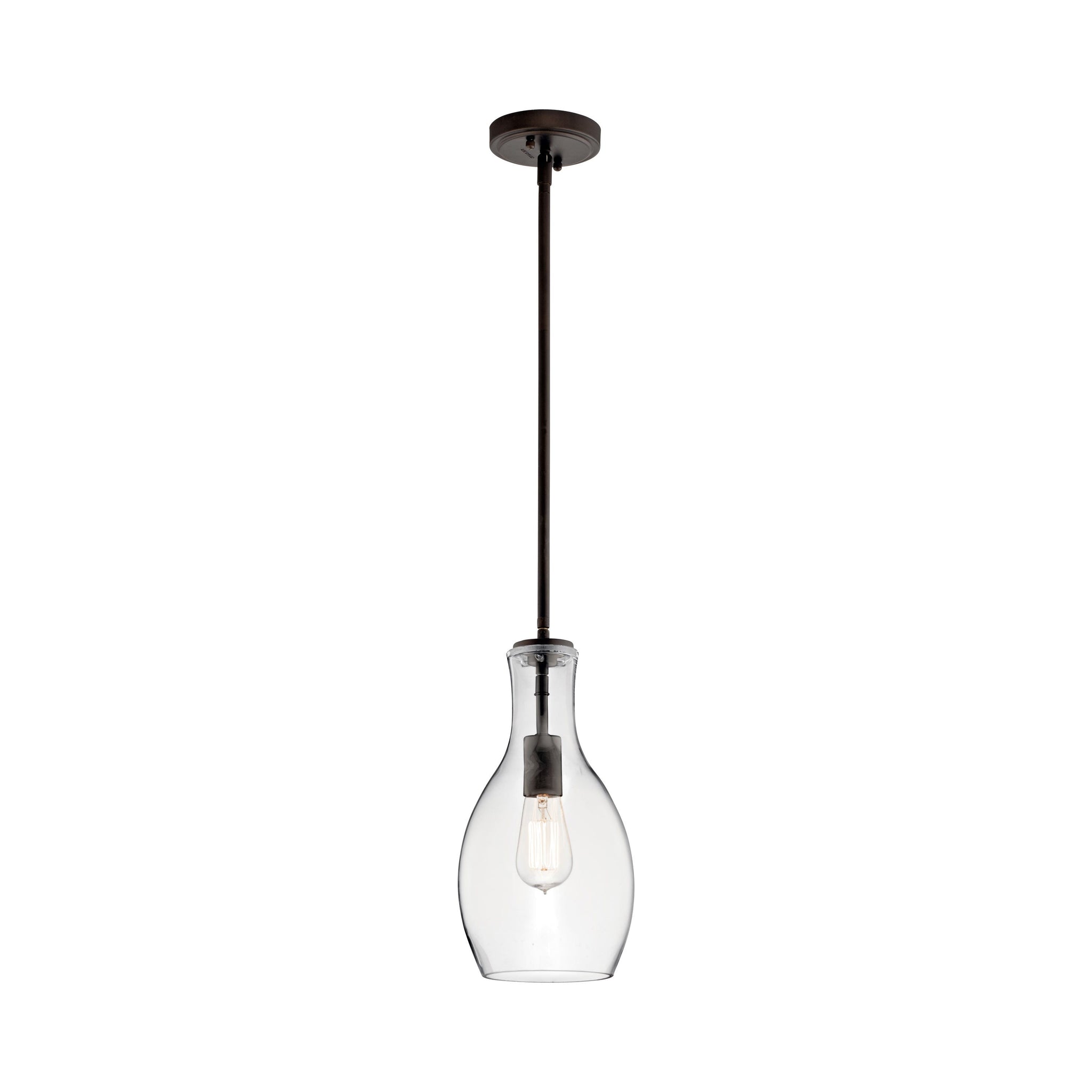 Curvy blown glass pairs with a sleek finish to create a stylish but versatile profile for the Everly Hourglass Pendant Light from Kichler.