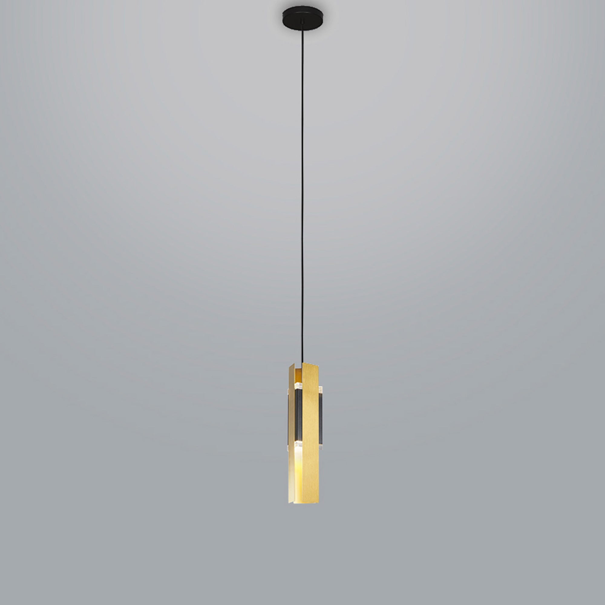 Definition calls on an architectural perspective in the design of the Excalibur Pendant Light from Tooy. Its linear and angular silhouette with bold panes of metal form a partially open outer shade with interior shades aiding in sending radiant lighting through a modern space.