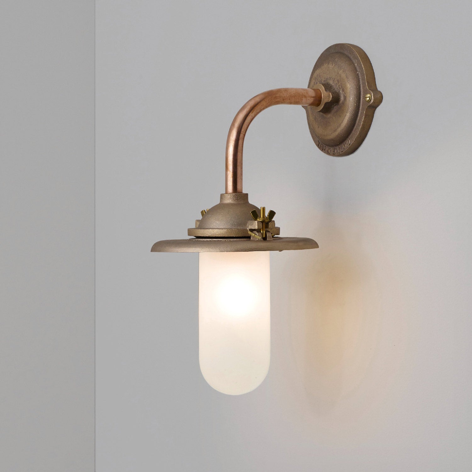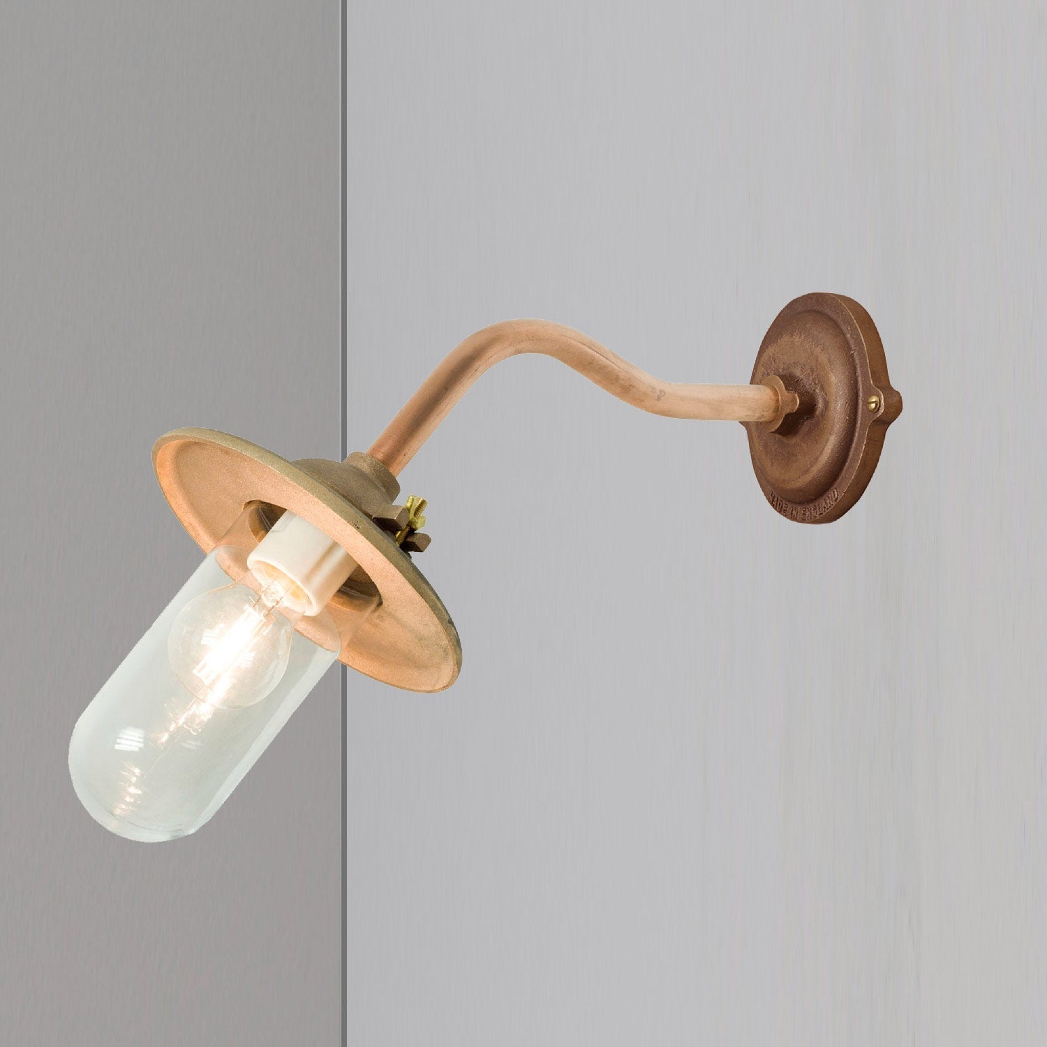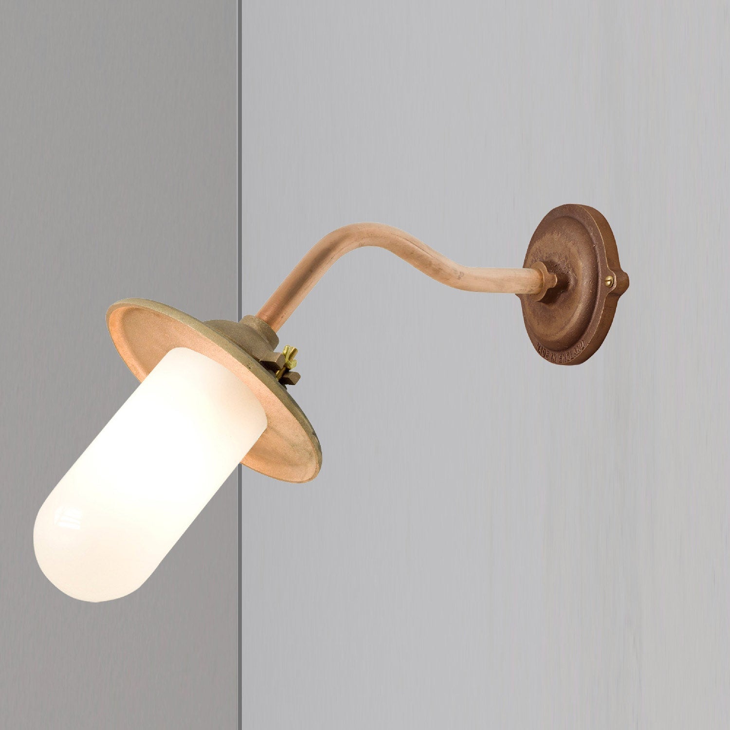 The robust quality of industrial inspired hardware and lighting weaves into an impressive fixture as the Exterior Bracket Indoor/Outdoor Wall Light from Original BTC rekindles a vintage vibe with modern updates. Indoor or outdoor use is perfect for a versatile light featuring metal construction and accents. Focus diverts to a shapely glass diffuser filtering ambient lighting in a themed setting.
