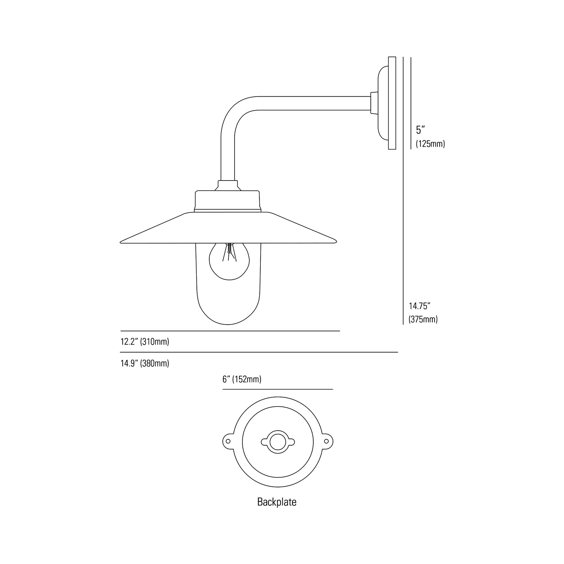 - Backplate: 6"W X 5"H