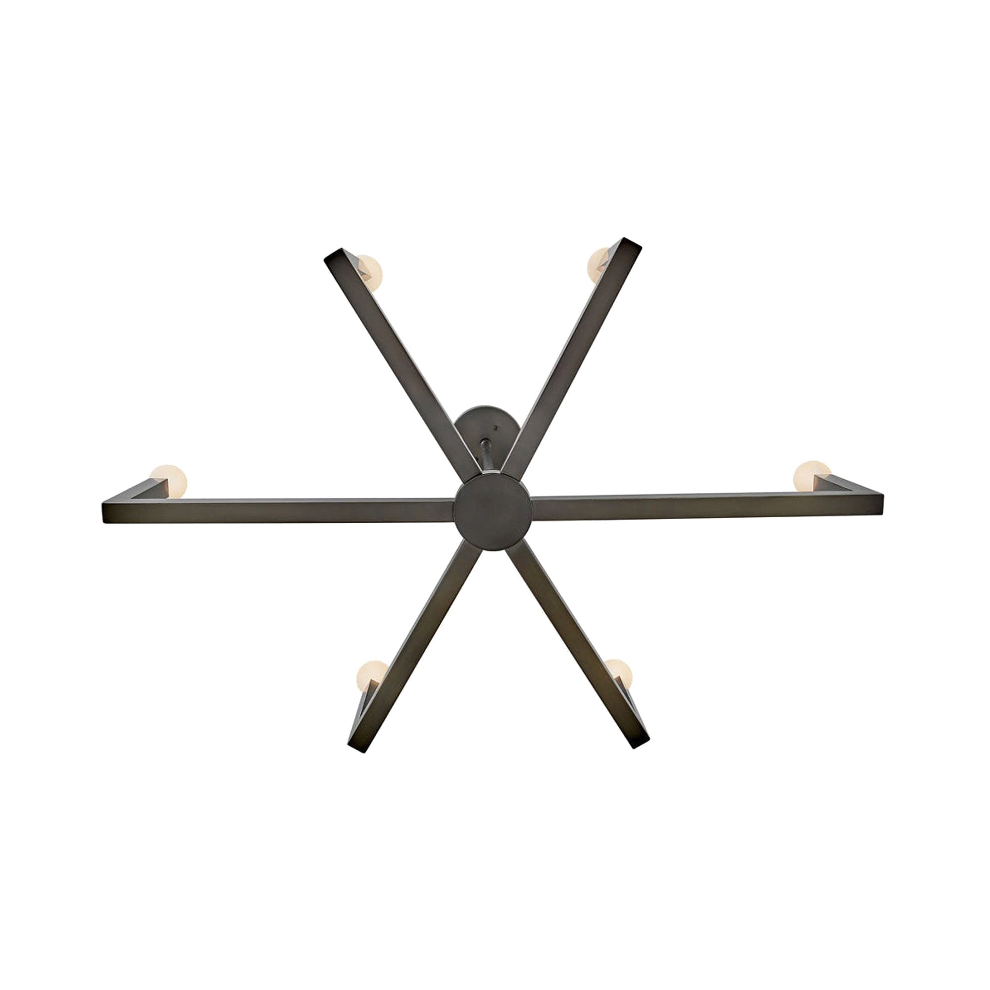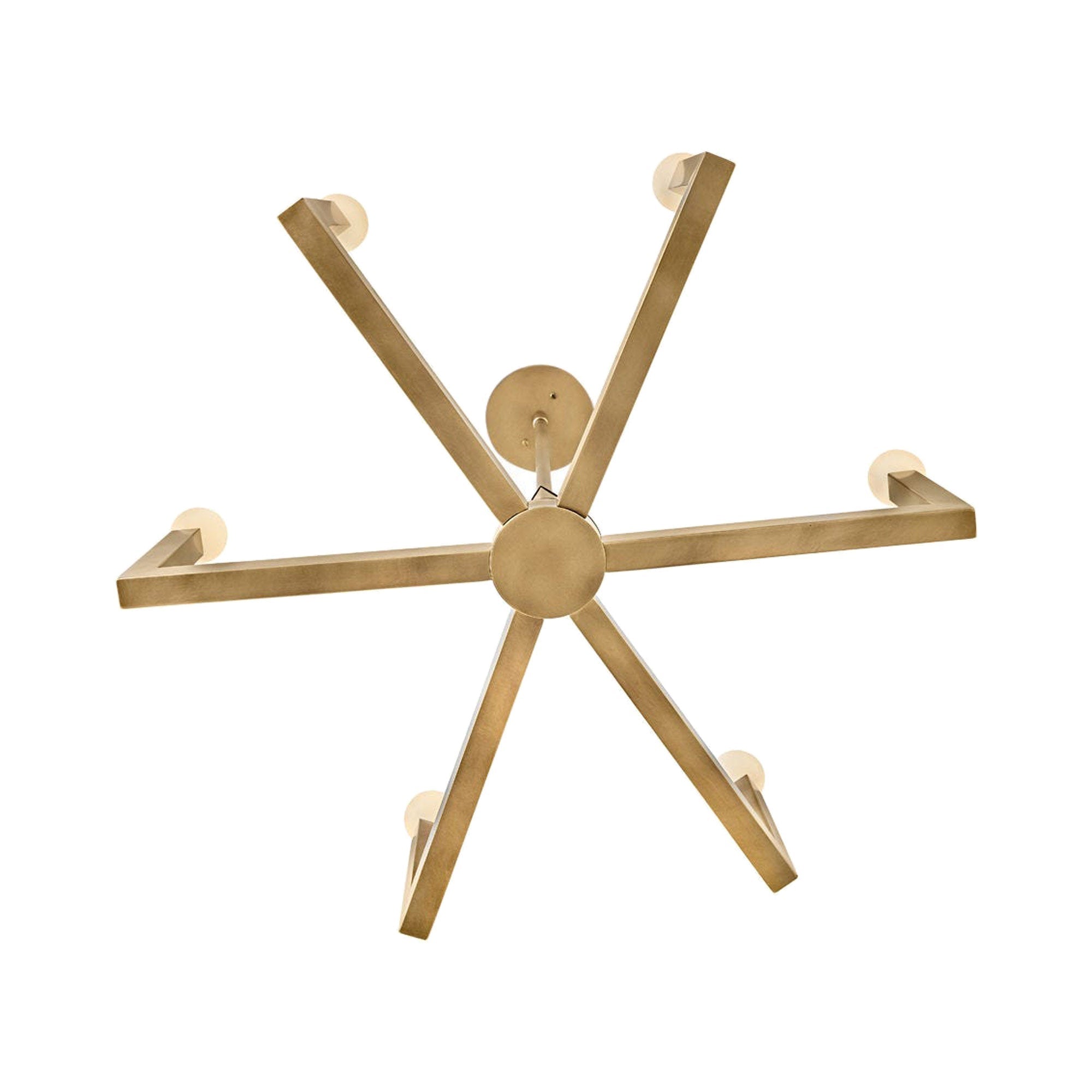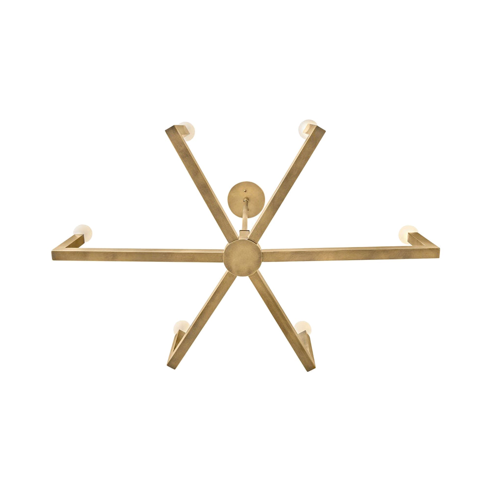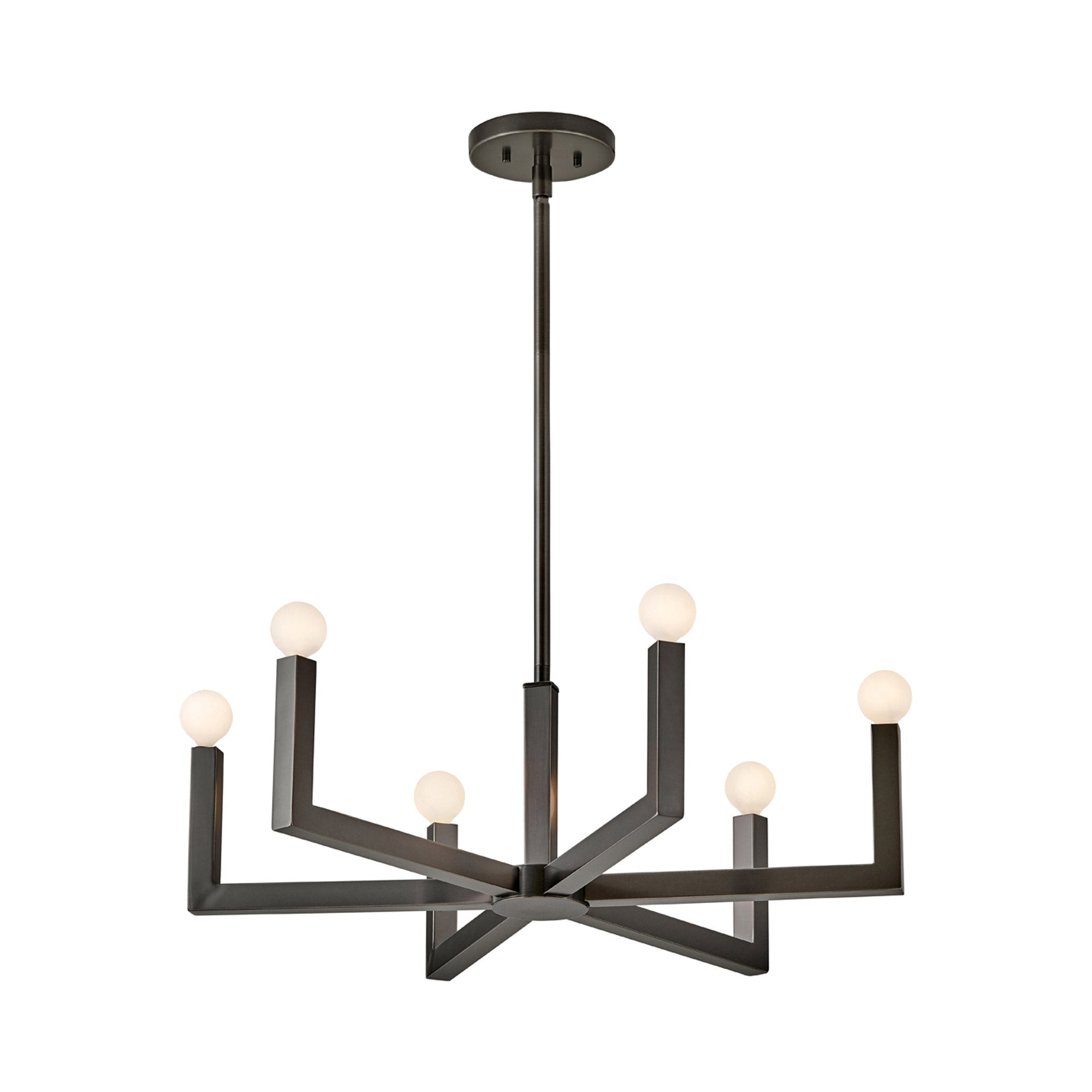 The Ezra family stunningly pairs minimalist elegance with industrial edge. Strong square arms set at 45° angles intersect to create a rounded chandelier and oval linear chandelier design in black oxide and heritage brass finishes.