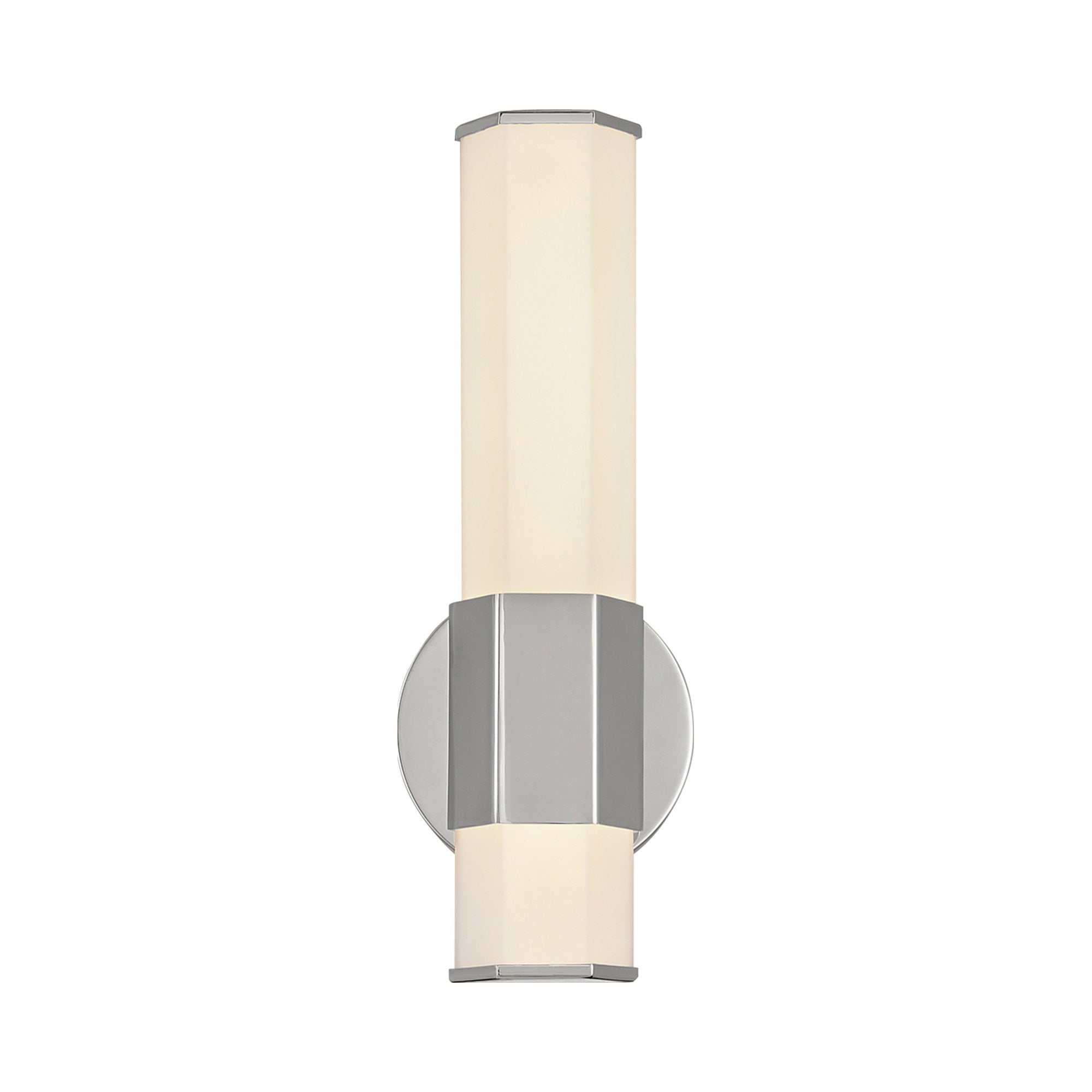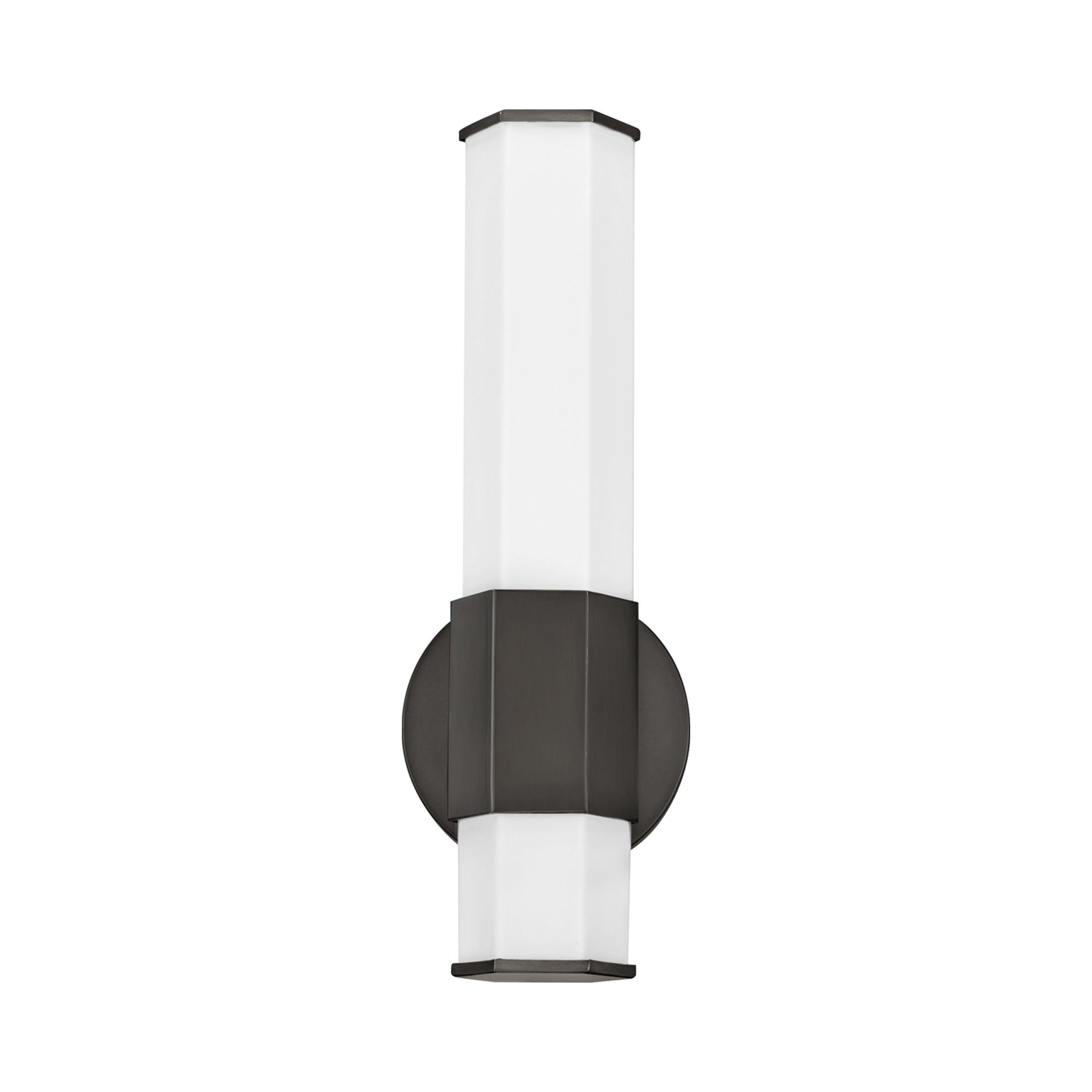 For a profile that is unpretentious, yet unforgettable, view all the sides of Facet. Interesting angles combine with a bold center bracelet to create the edgy and contemporary look. Hexagonal etched glass is showcased by Heritage Brass, Polished Nickel or Black Oxide center and end caps of the same shape, while the Invisimount system remains unseen to simply highlight the superior style.