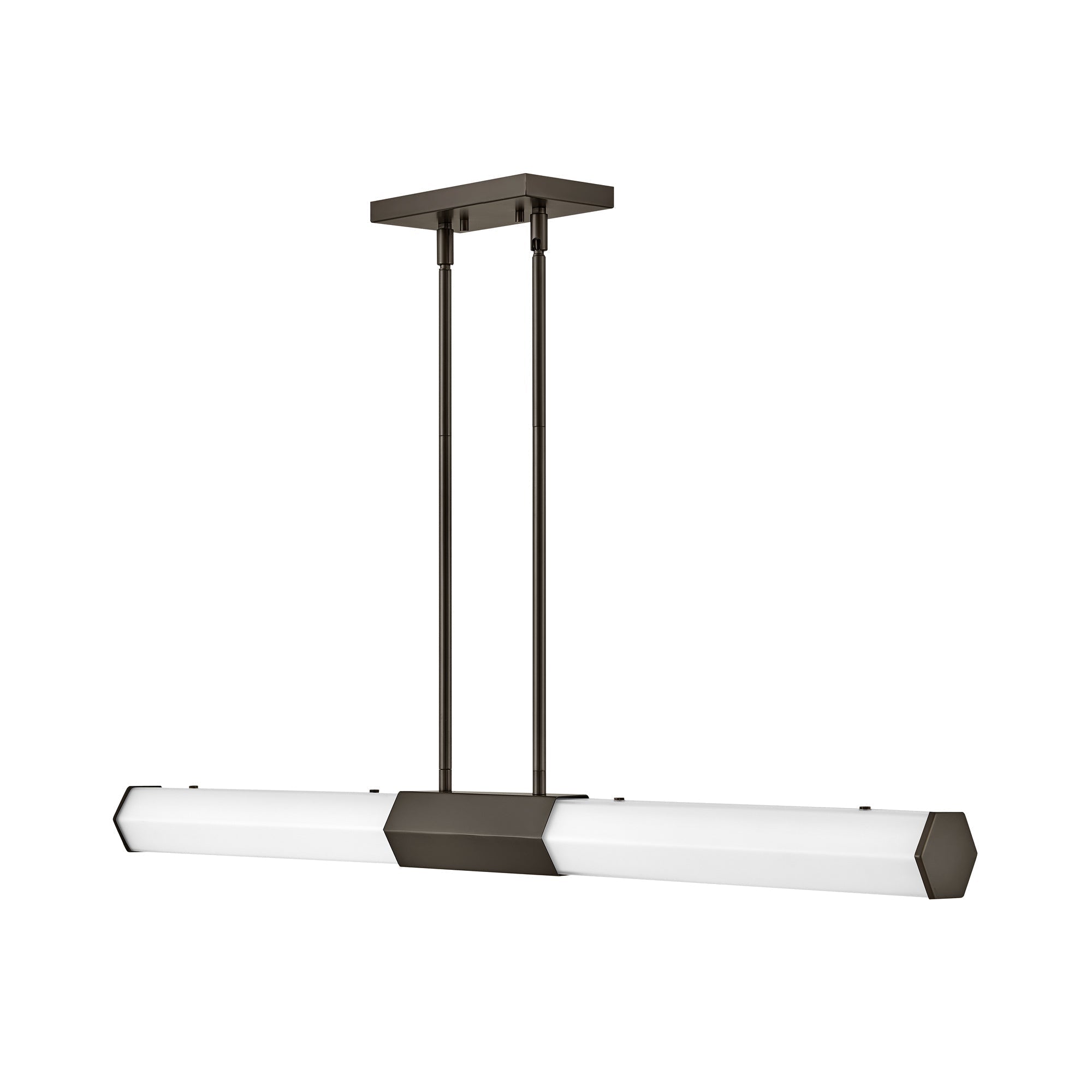Infused with modern geometric design elements that lend gravitas without pretention, the Facet LED Linear Pendant Light from Hinkley is a truly eye-catching choice for your modern kitchen. Hexagonal etched glass diffusers glow warmly to create a welcoming ambiance as a contrasting finish adds depth and dimension to its structured silhouette.
