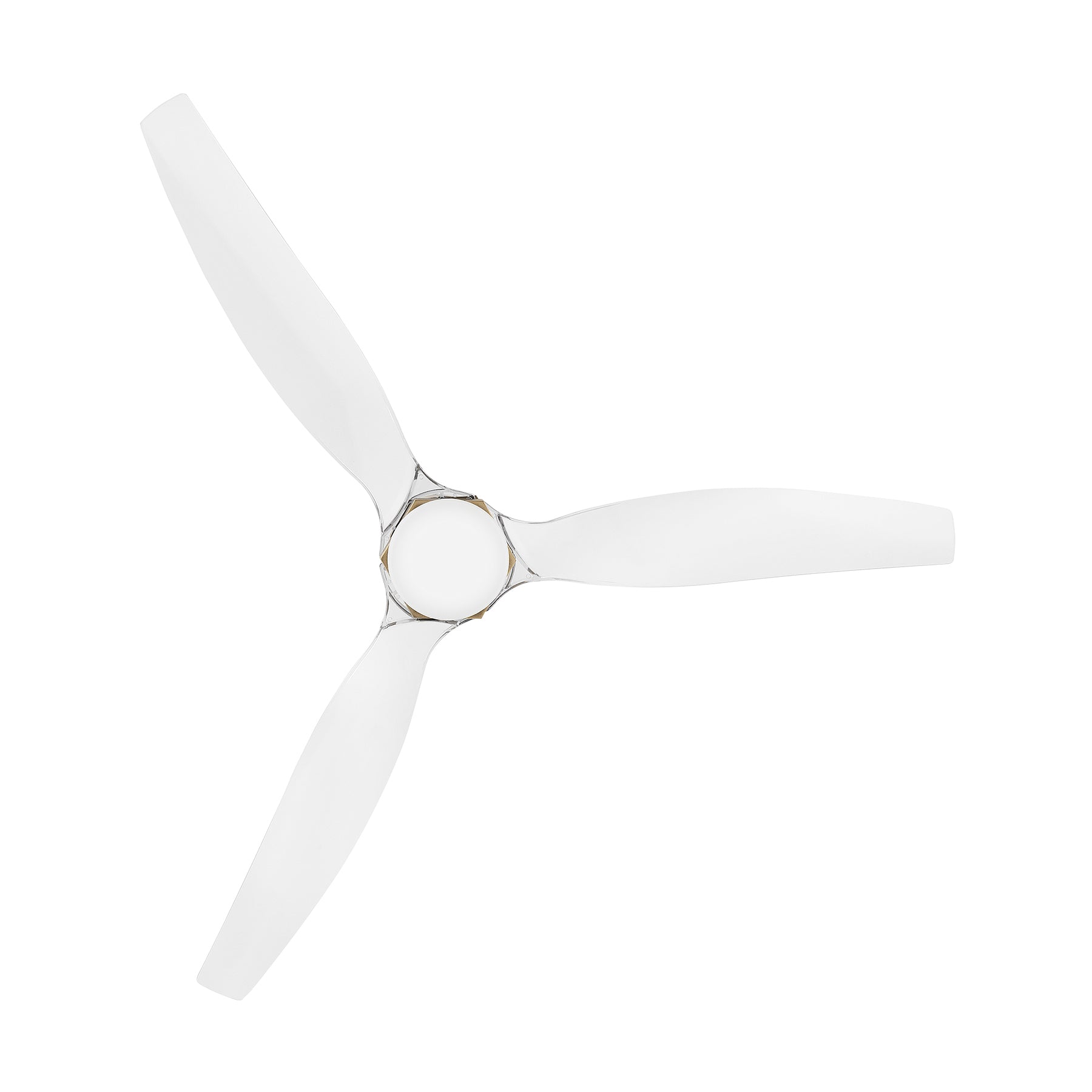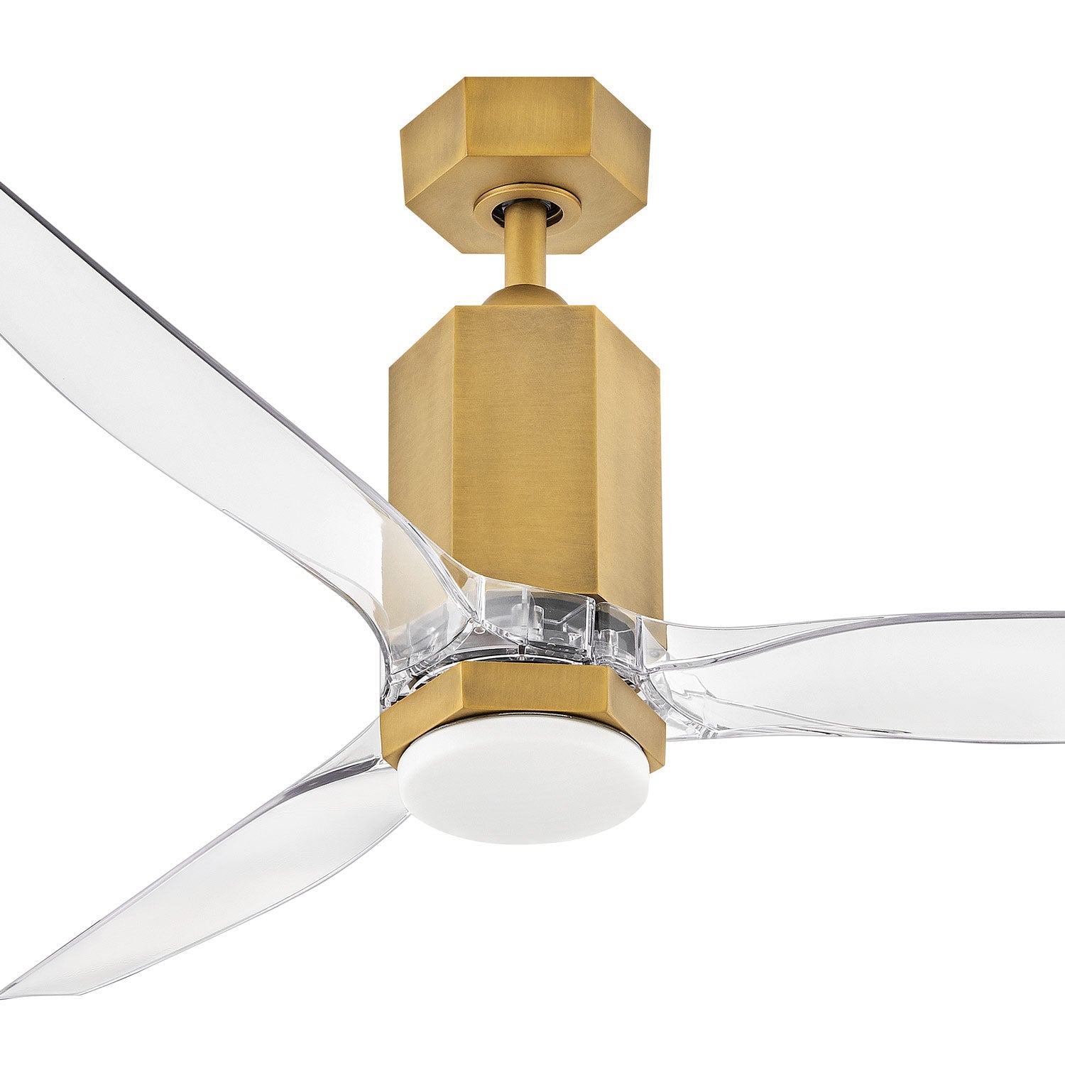 A hexagonal motor housing brings visual interest and geometric flair to the modern Facet LED Smart Ceiling Fan from Hinkley. It includes a light with an etched glass diffuser, while a stylish motor finish complements surrounding decor. Three blades are light and airy, adding refined but unpretentious style in a ceiling fan that does an excellent job of providing ambiance and air circulation.