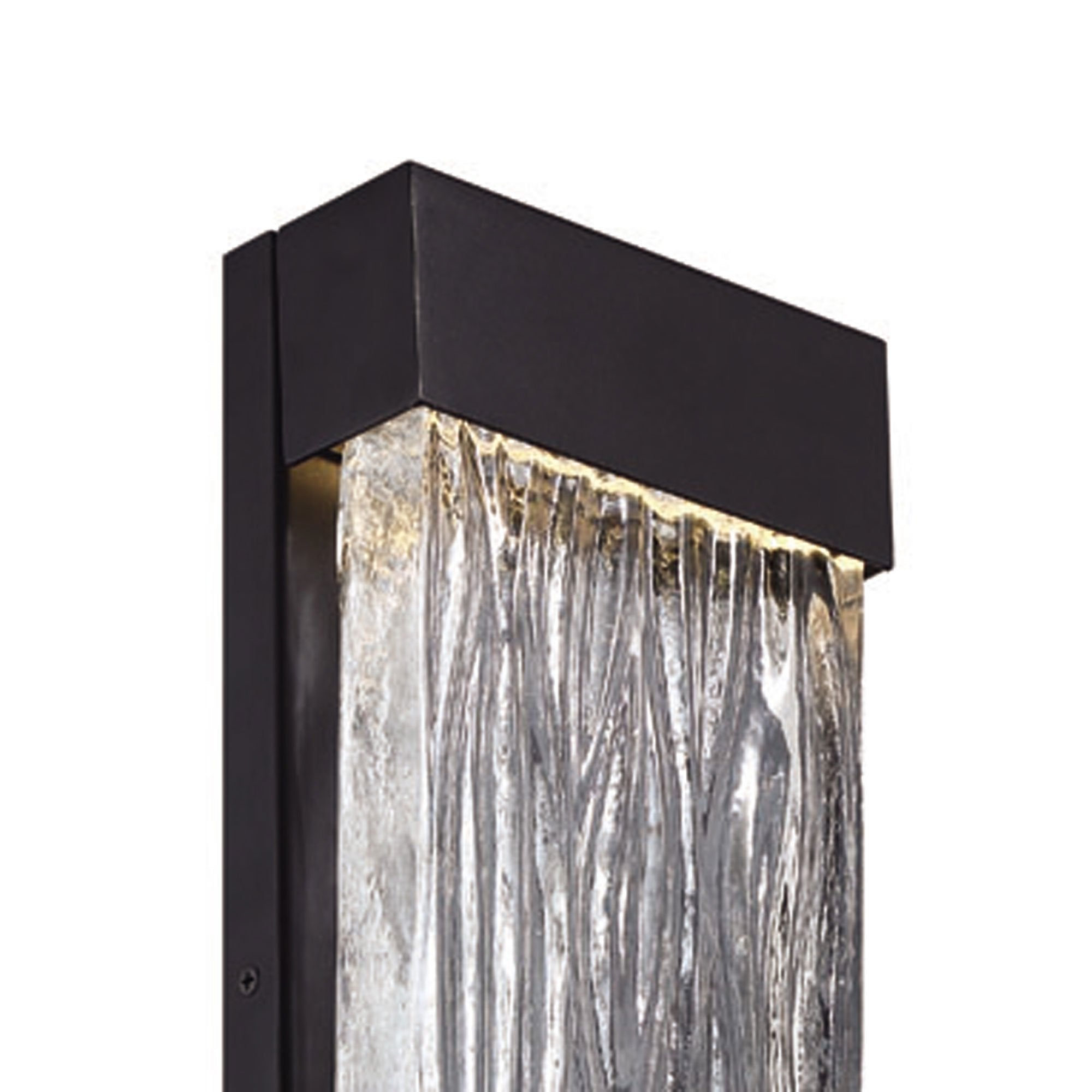 Like diving down into the mysterious depths below the ocean surface. A dramatic art cast glass design emerges and is embraced by bold black hardware. This thoughtfully designed wall sconce is ideal for luxurious exteriors and interiors, kindled with beautiful illumination from above and below.