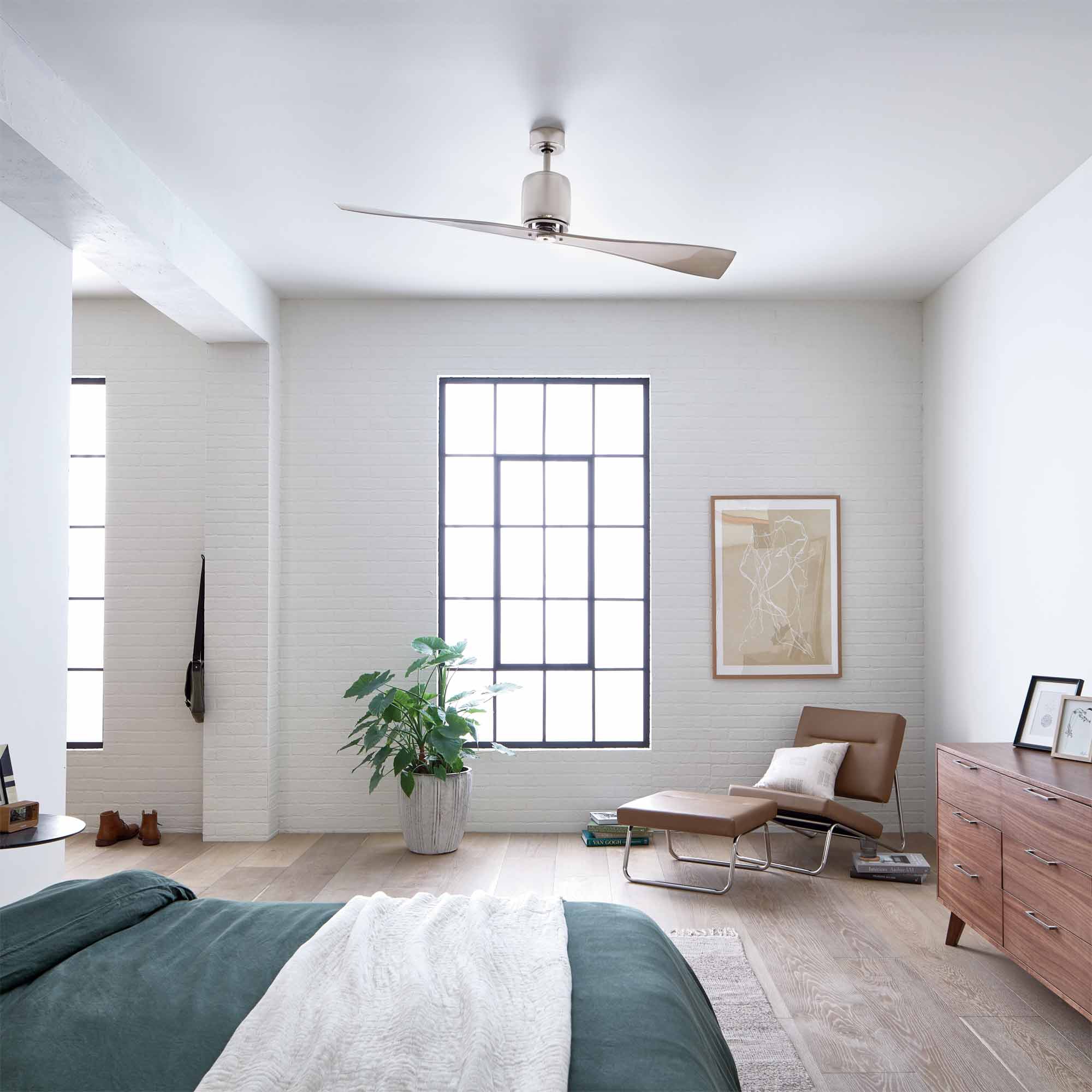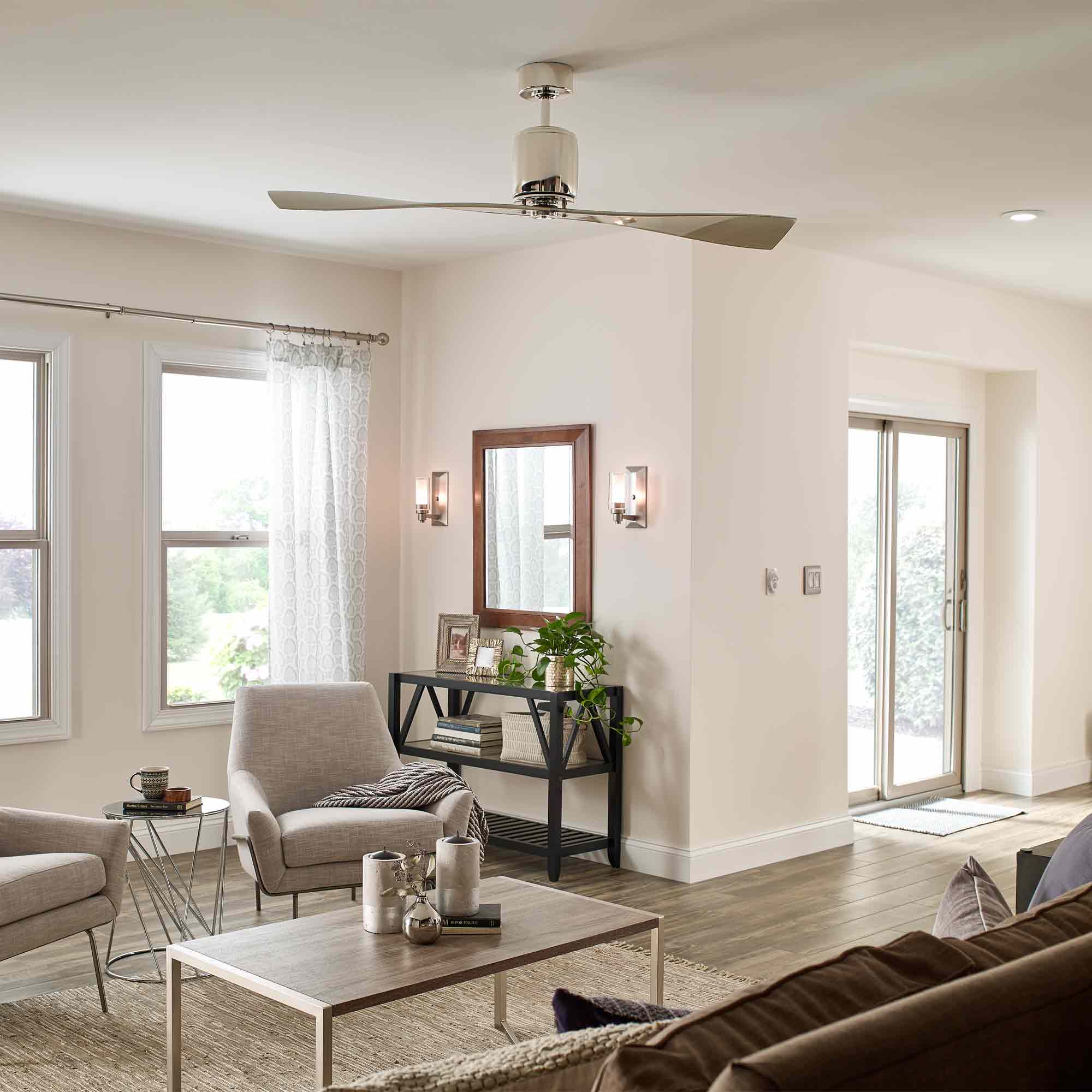 The unique, minimalist silhouette of this 2 blade 60 inch Ferron fan creates a strong impact. The tailored, Brushed Nickel and Polished Nickel finish and angular design of this fixture will elevate and enhance the styling in your home.