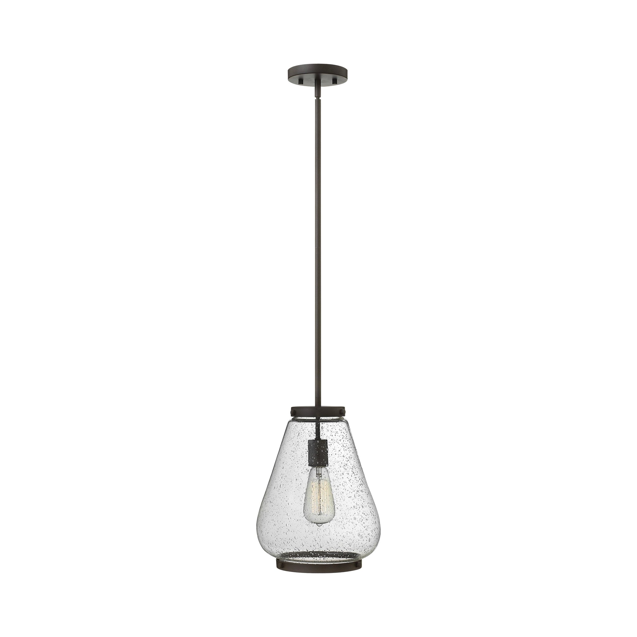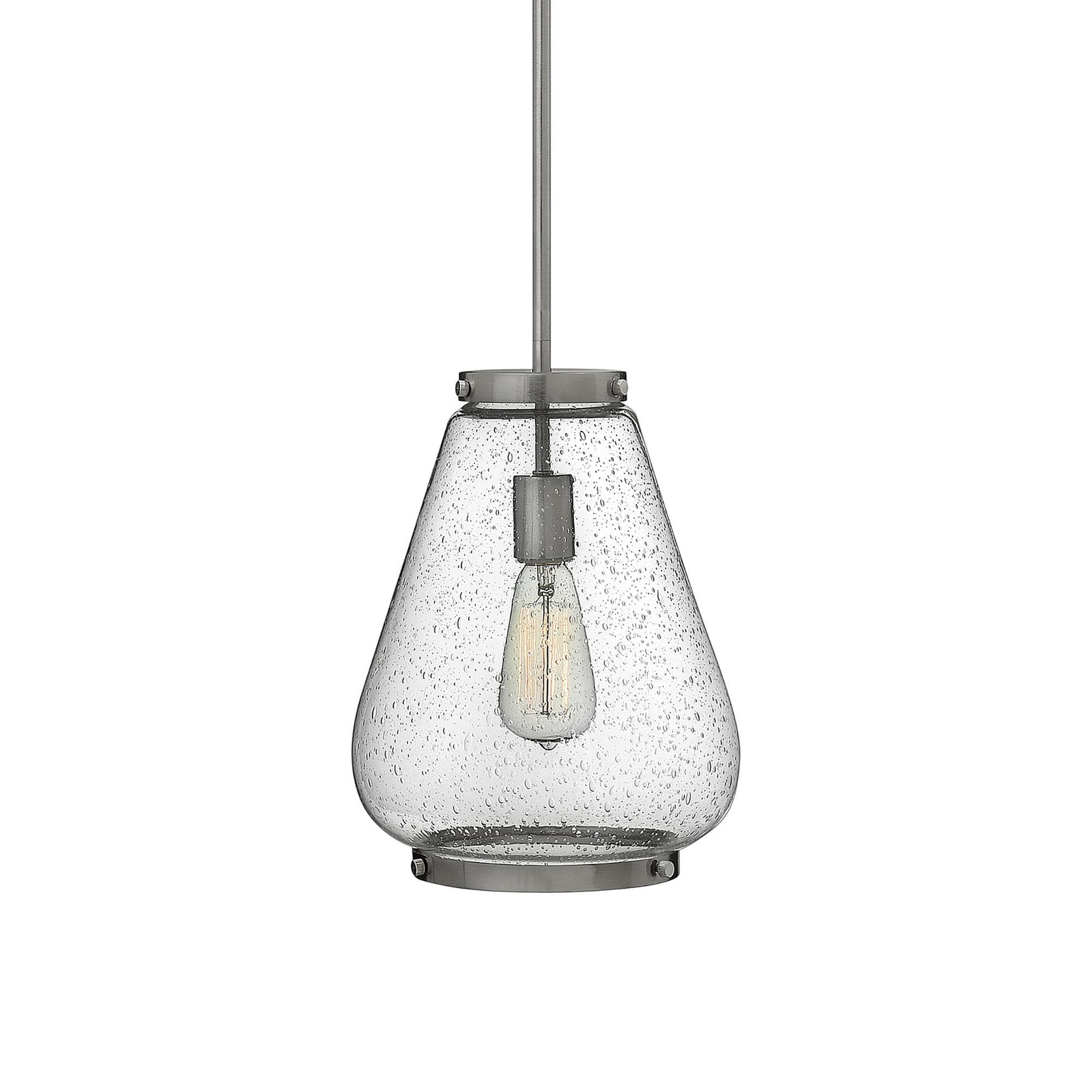 Finley Mini Pendant Light's modest composition makes a vintage statement with an austere, clean design. Three classic knurled knobs secure the clear seedy glass while a matching bottom trim ring completes the authentic look.