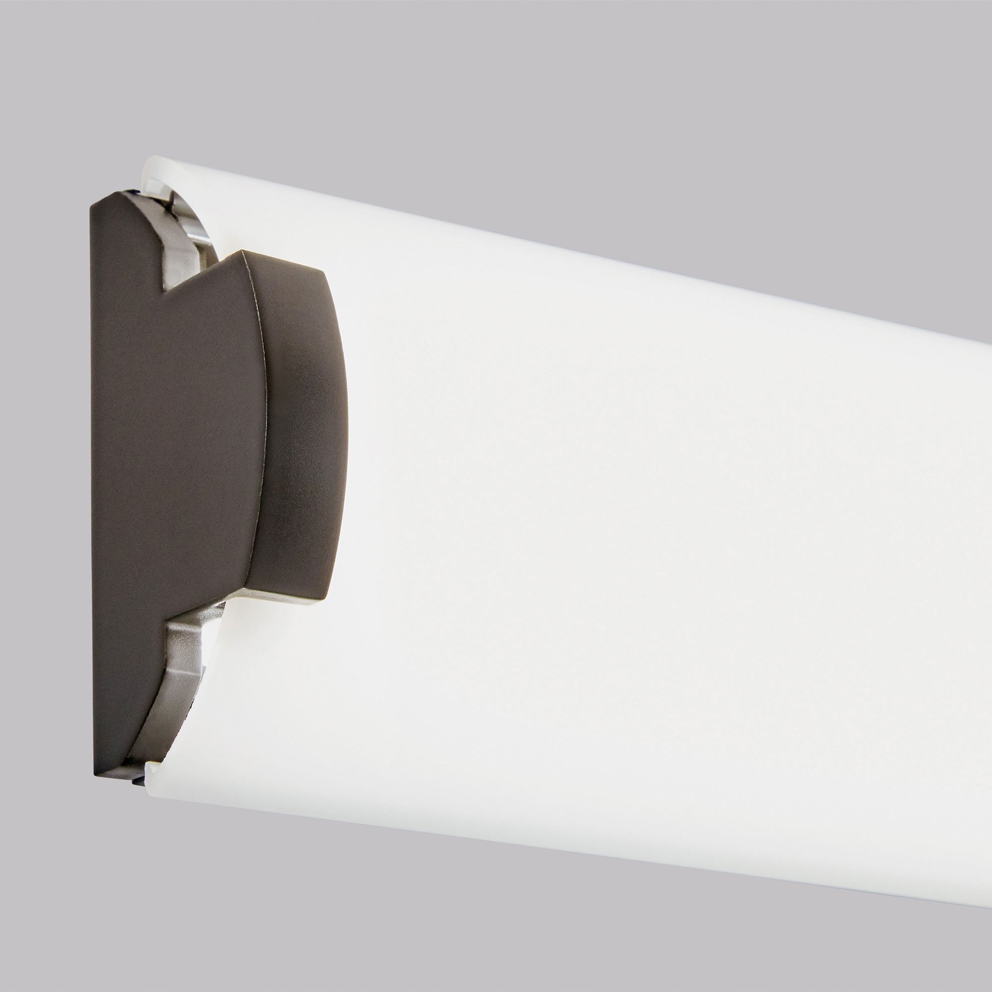 The Finn LED Bath Vanity Light from Visual Comfort Modern is simply sophisticated with its sleek dome shaped acrylic diffusor. The Finn provides an ample amount of wide-angled task and ambient light though the acrylic diffuser. The Finn is available in two on-trend hardware finishes, Antique Bronze and Satin Nickel, each finish further enhances the modern beauty of the Finn bath light. The Finn Bath ships with your choice of efficient LED lamping both options are fully dimmable to create the desired ambiance in your unique space. The Finn scales at 24" in length and 4.3" in width making it ideal for bathroom lighting and vanity lighting.