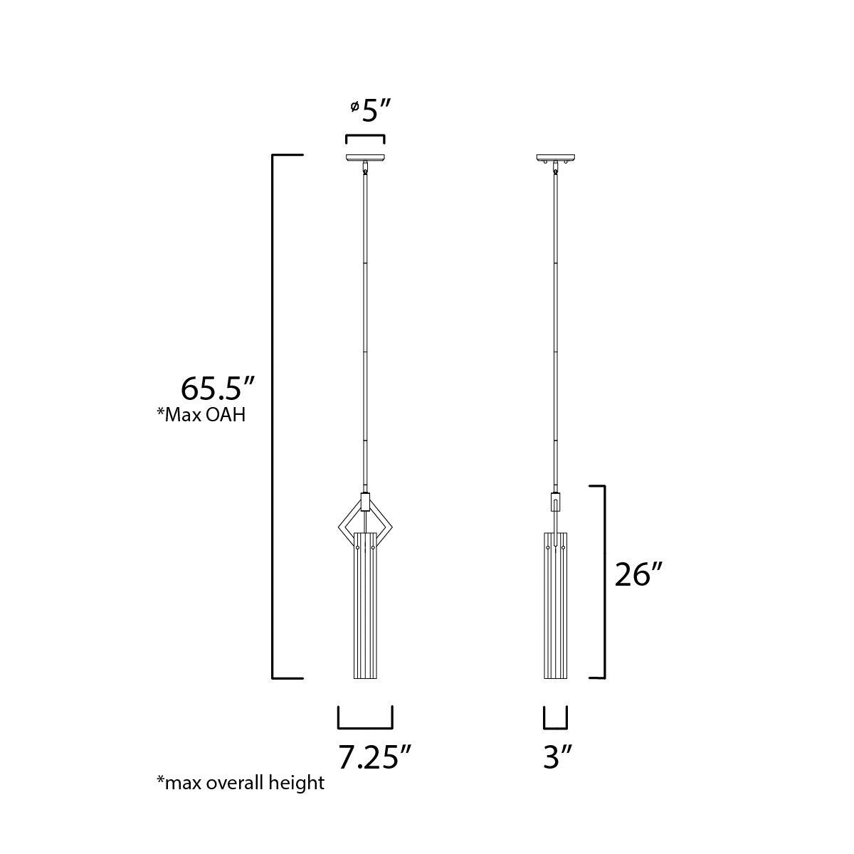 - Dimensions: 7.25"W X 26"H; 65.5" max height