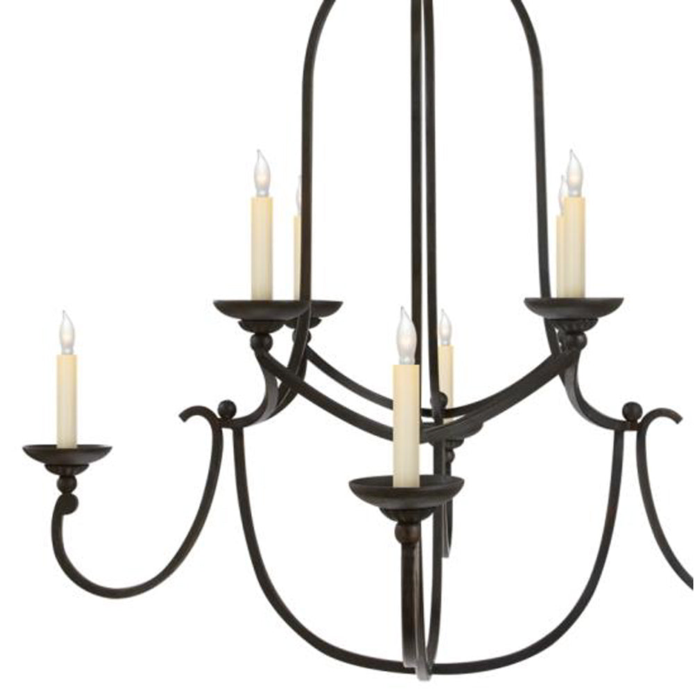 A focus on gentle shaping and a symmetrical silhouette tells the romantic story of the Flemish Chandelier from Visual Comfort Signature. A careful design blends curved metal rods that emulate a draped ribbon, as romantic candelabra light bases infuse dramatic Euro-inspired elegance perfect for maintaining an easy, elegant feel.