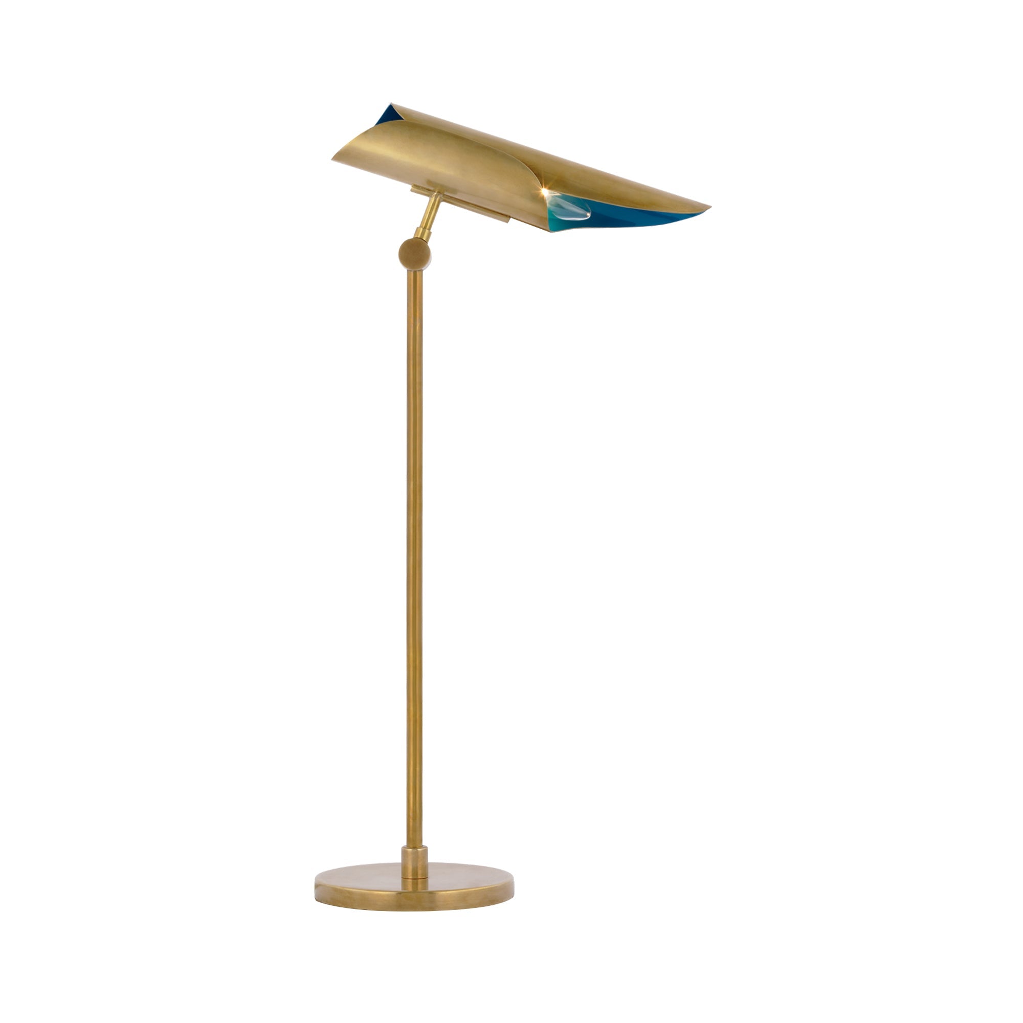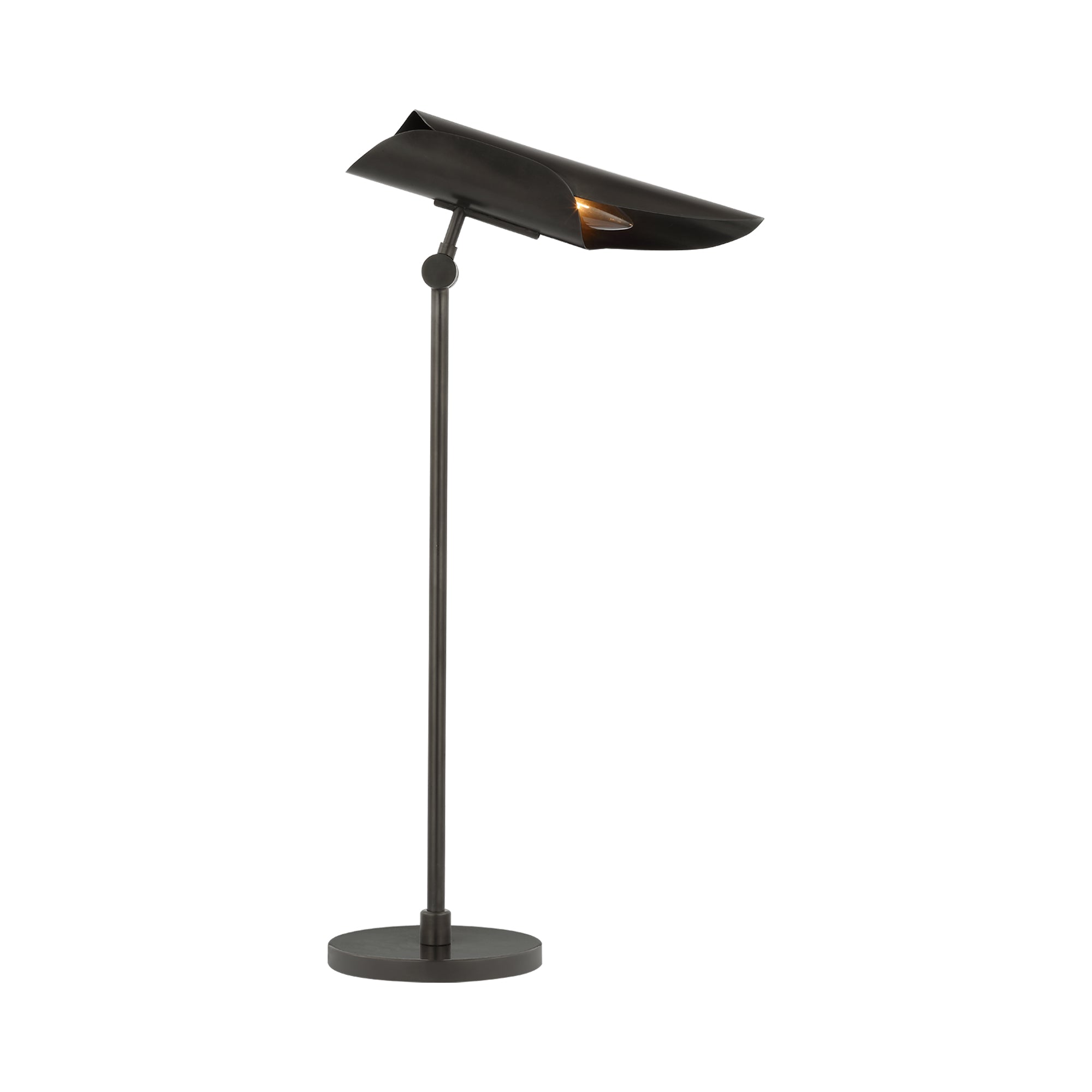 The Flore Table Lamp from Visual Comfort Signature blends iconic retro and contemporary elements to make its own signature statement. Metal construction offers a bold round base and thick body accented with a ball element. Its shapely shade redefines the classic look of industrial fare as it adjusts to customize light directionality.