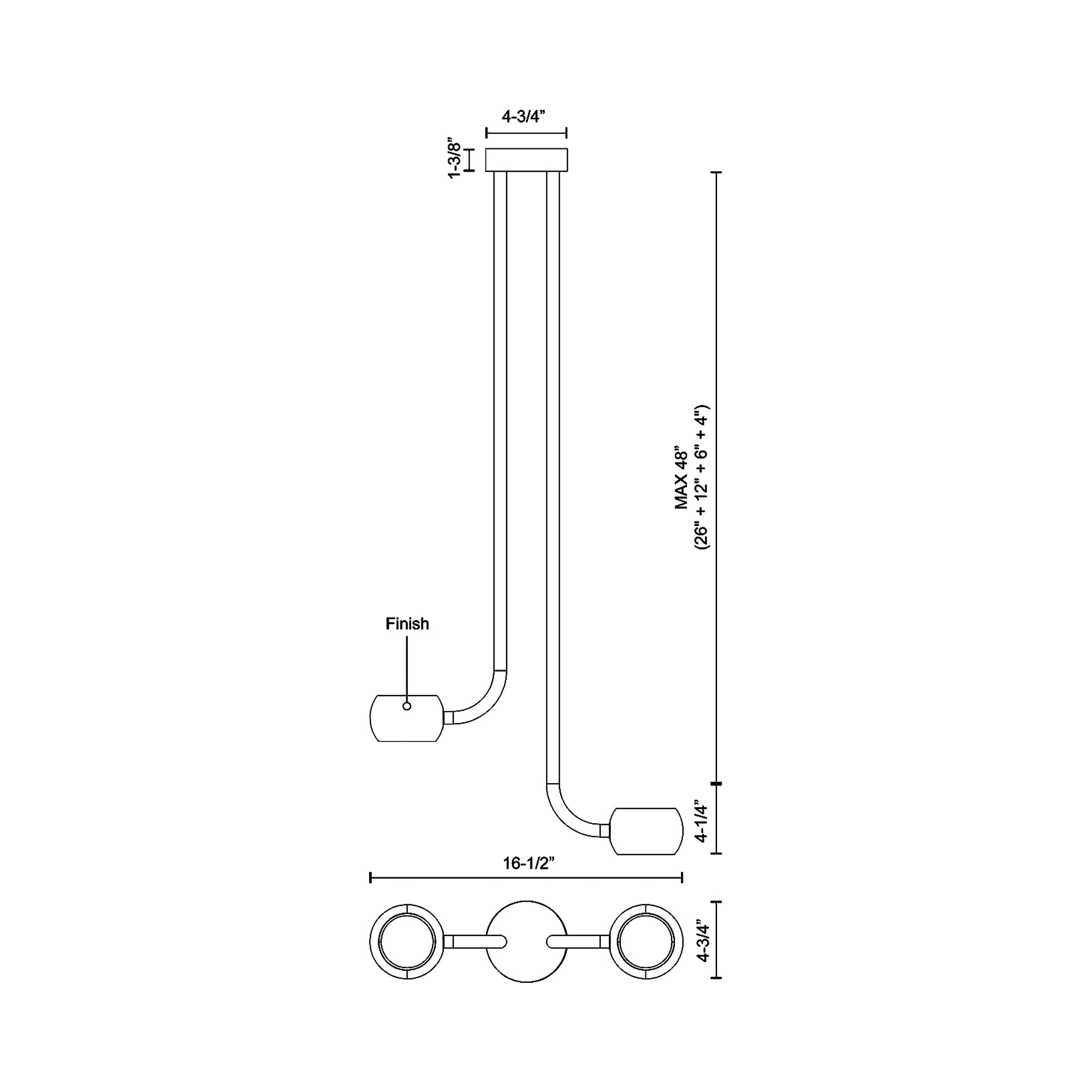 - Dimensions: 16.5"W X 4.25"H; 53.63" max height