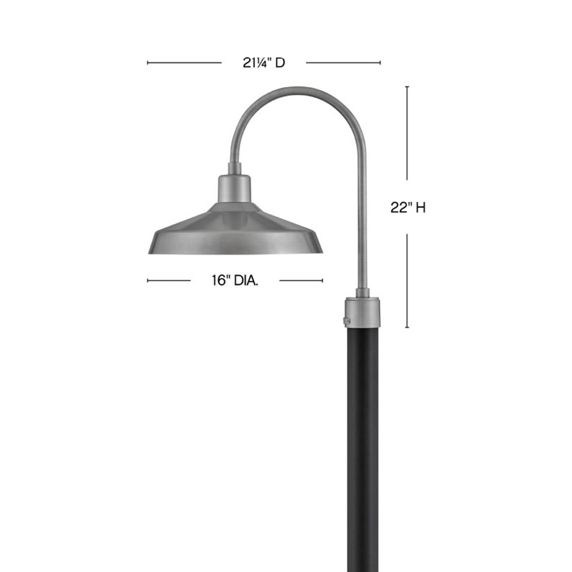 Rethink exterior lighting with a fabulous twist in design. The Forge Outdoor Post Light from Hinkley will turn heads with its unconventional style and sleek silhouette. A shower of radiant illumination infuses through its barn-light like metal shade, with a prominently arched arm adding a captivating optical impact.