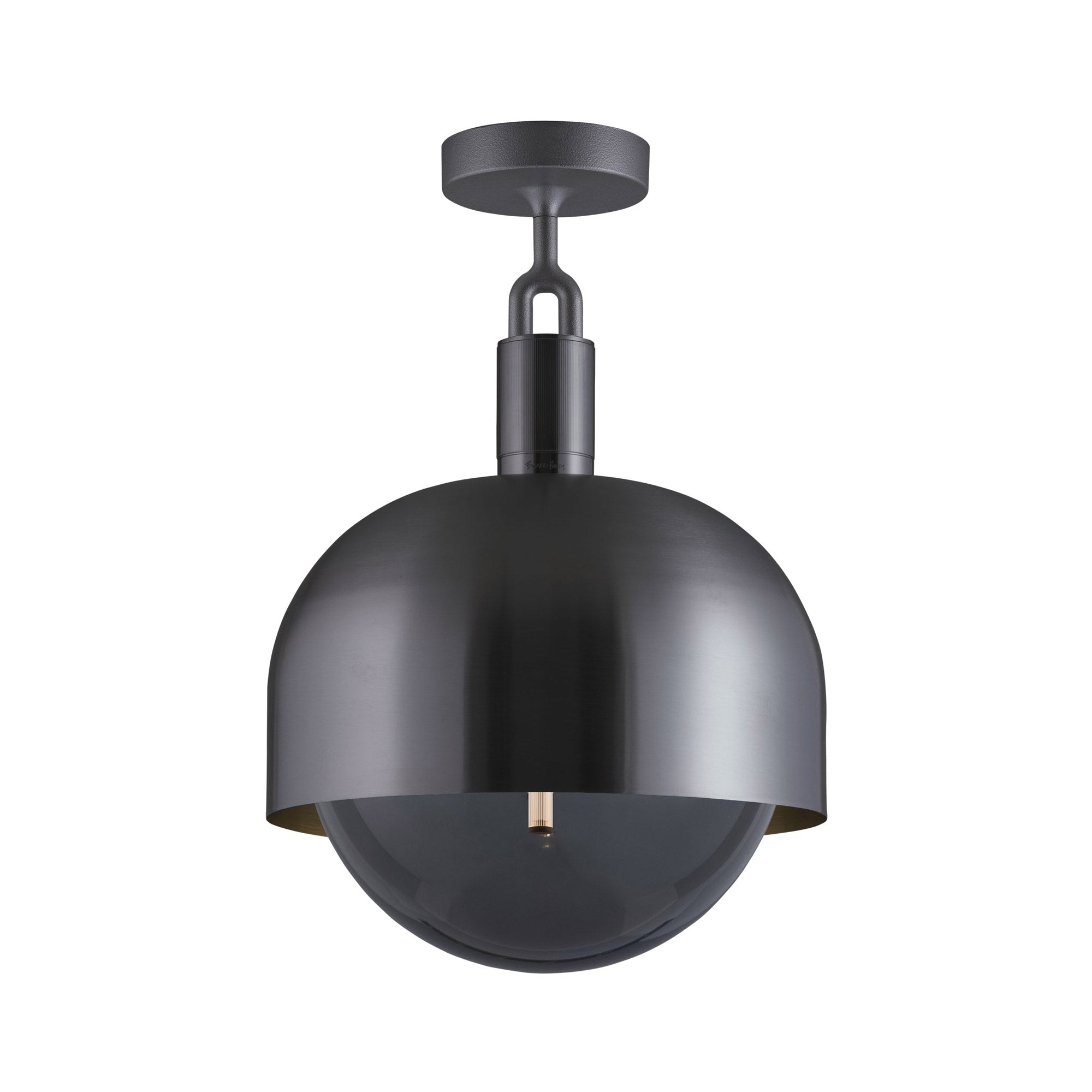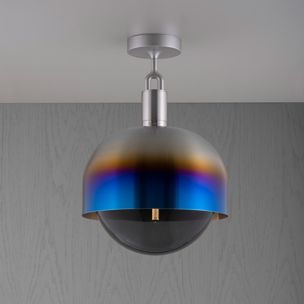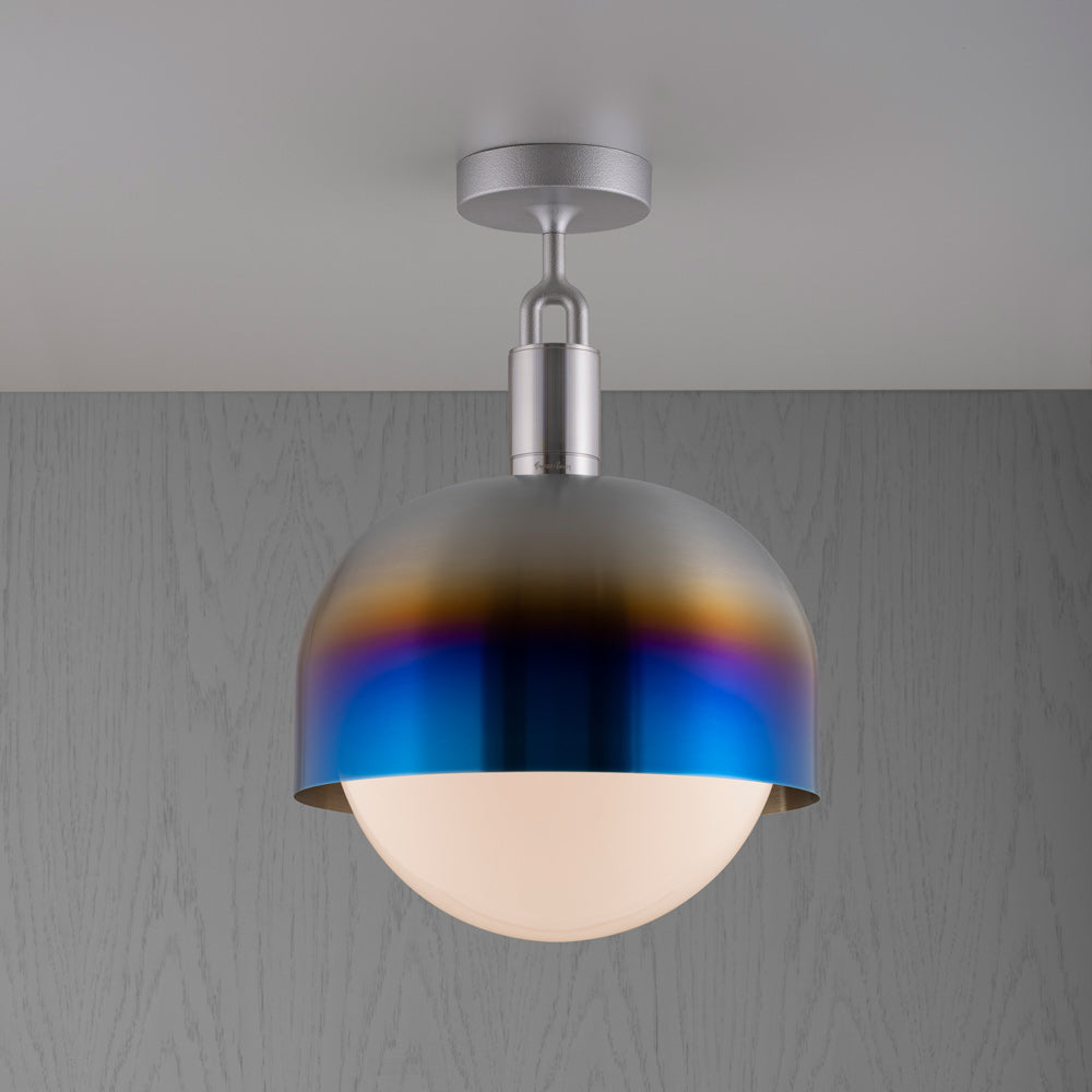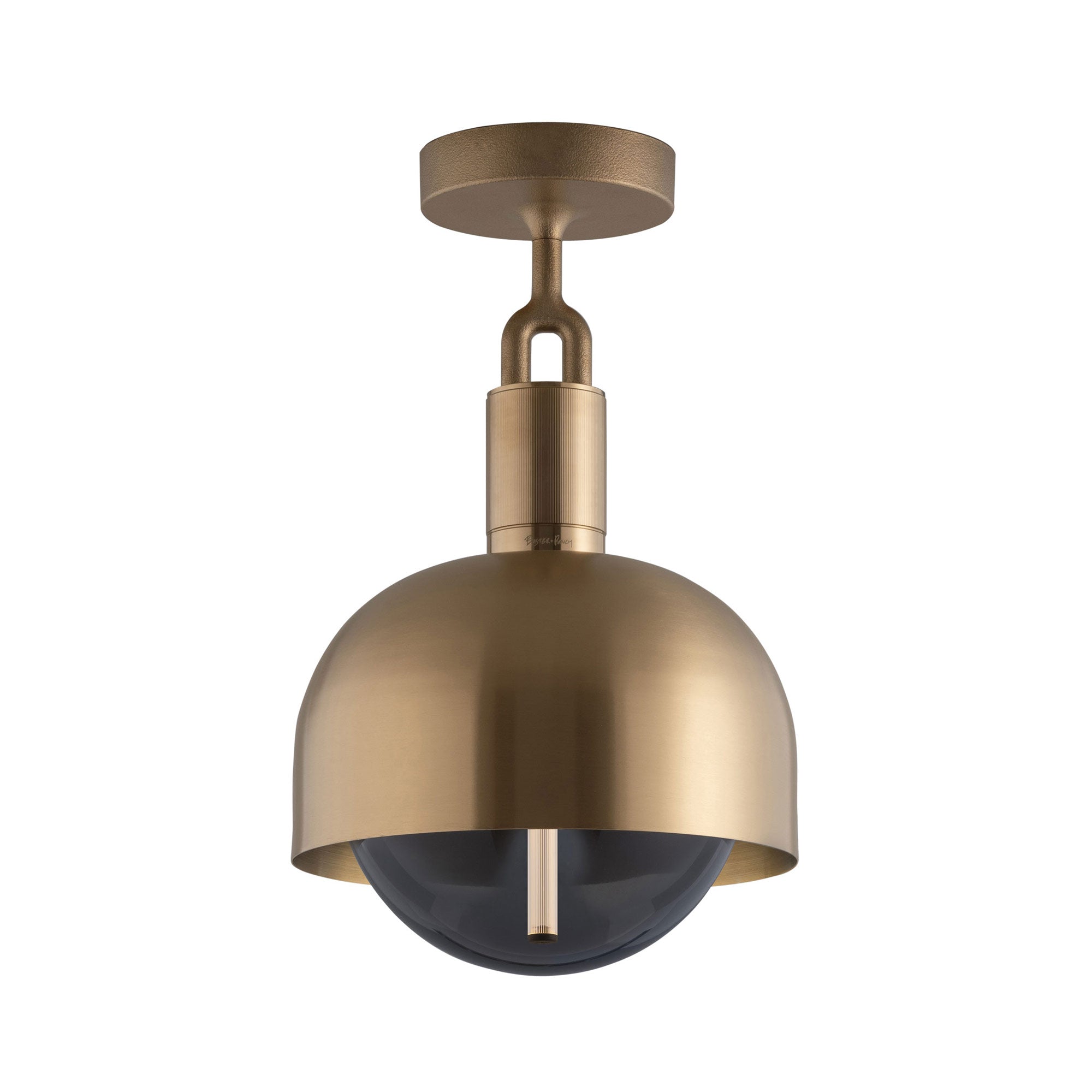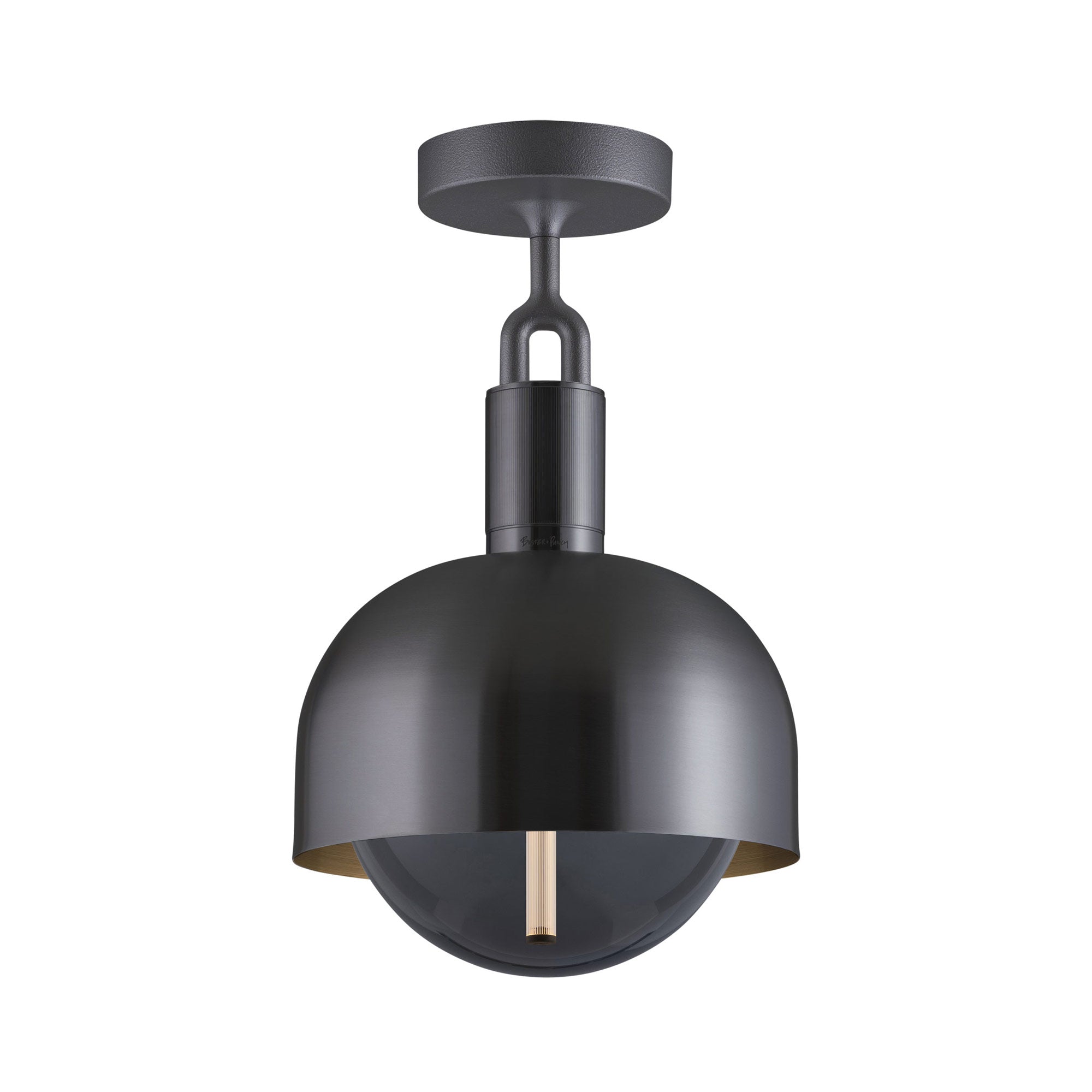 Make a statement consistent with a blend of industrial and farmhouse motifs. Adding energy-efficient illumination to a focal point, the Forked Shade Globe Semi Flush Mount Ceiling Light from Buster + Punch maintains a conventional sleek metal-constructed shade with ornate accents. A festive globe shade descends to glow with illumination.