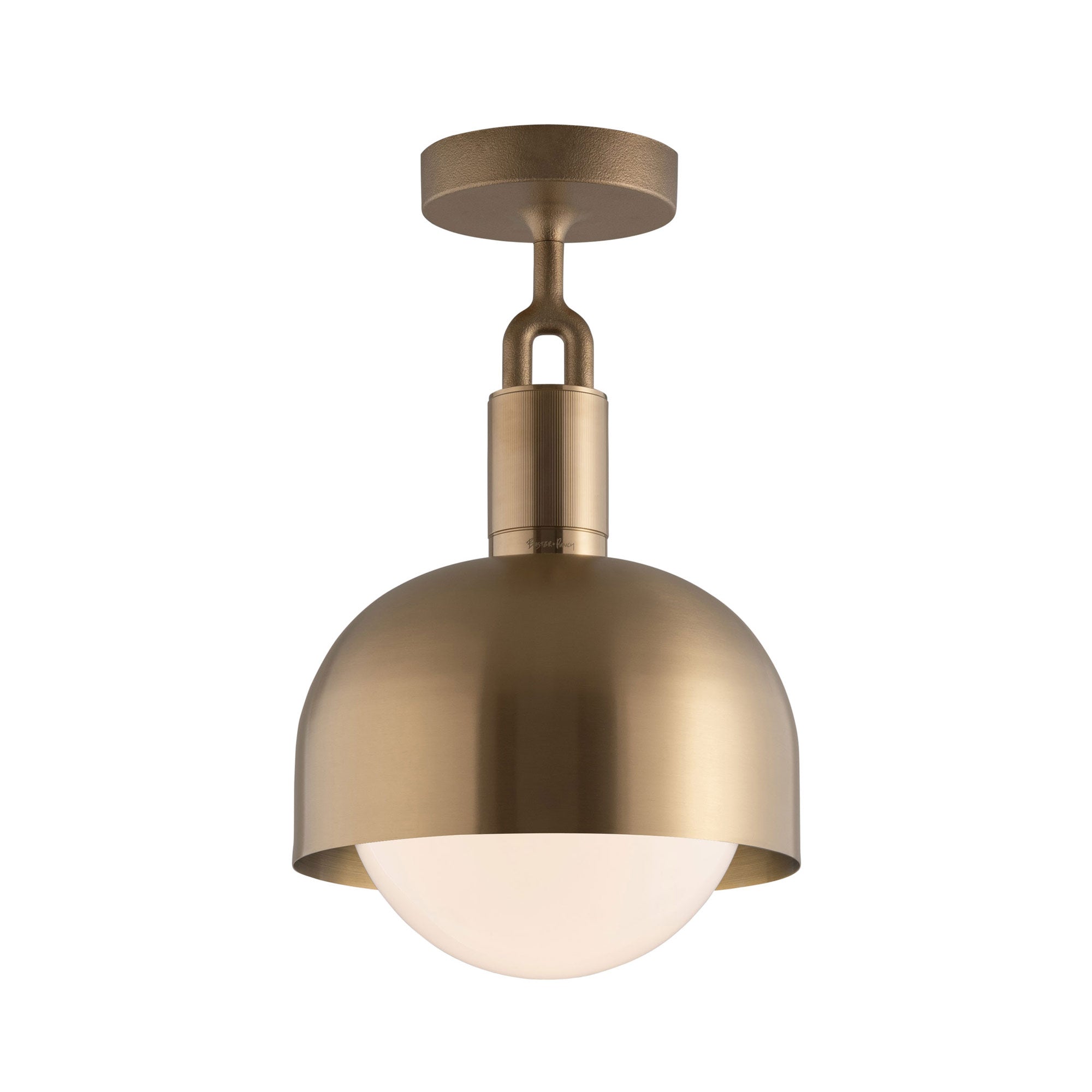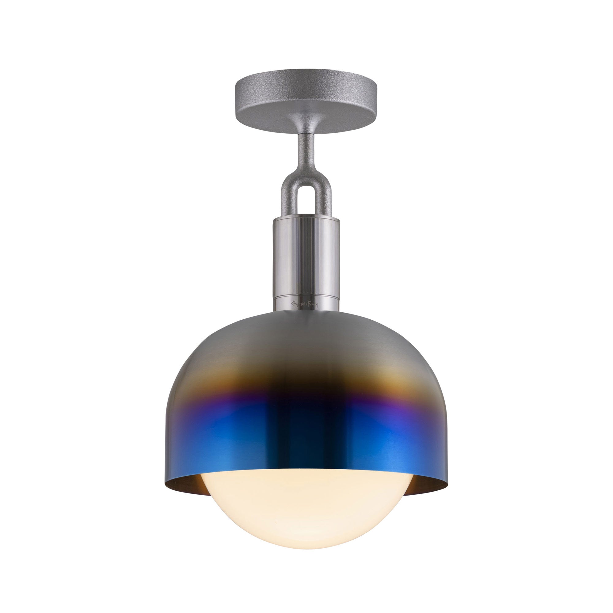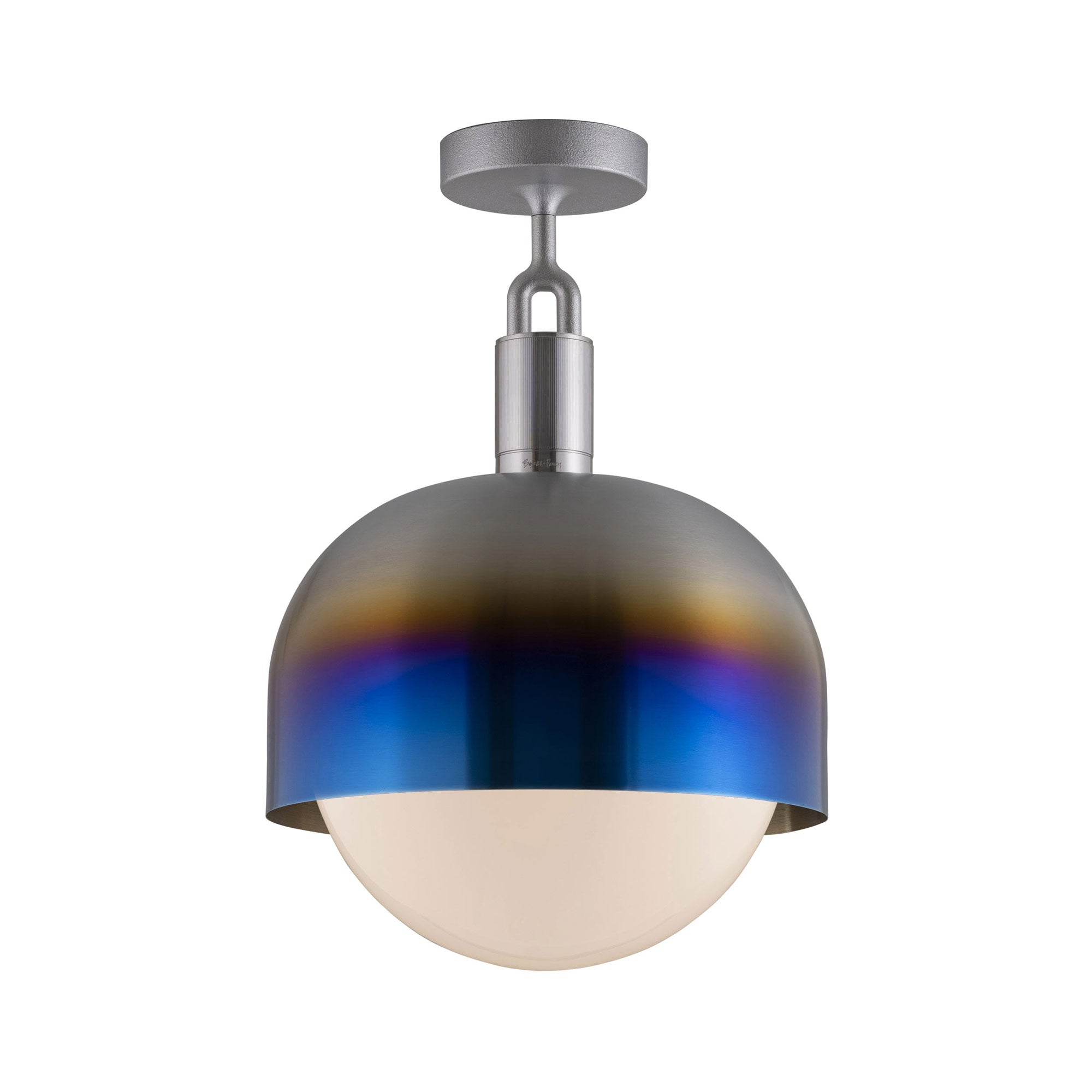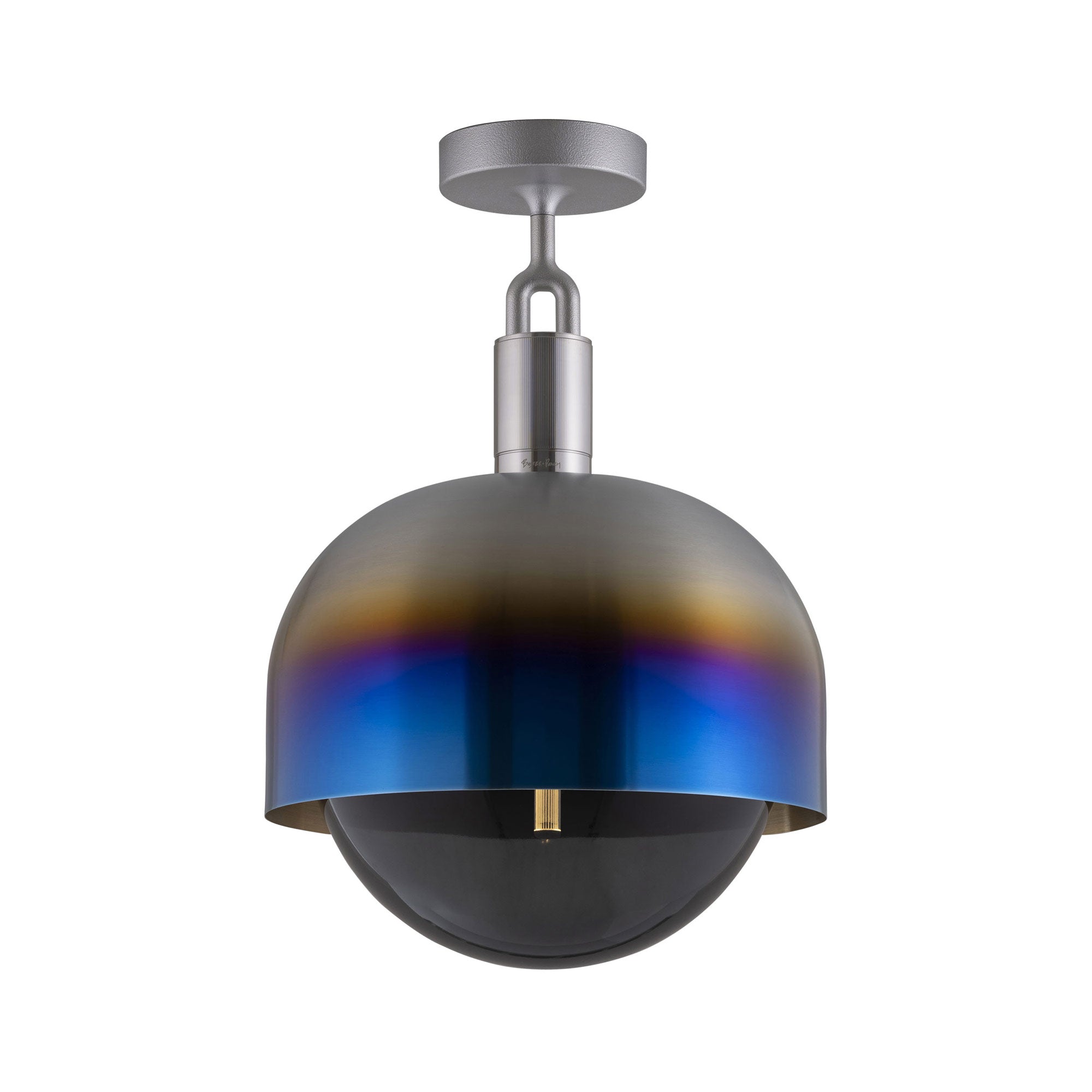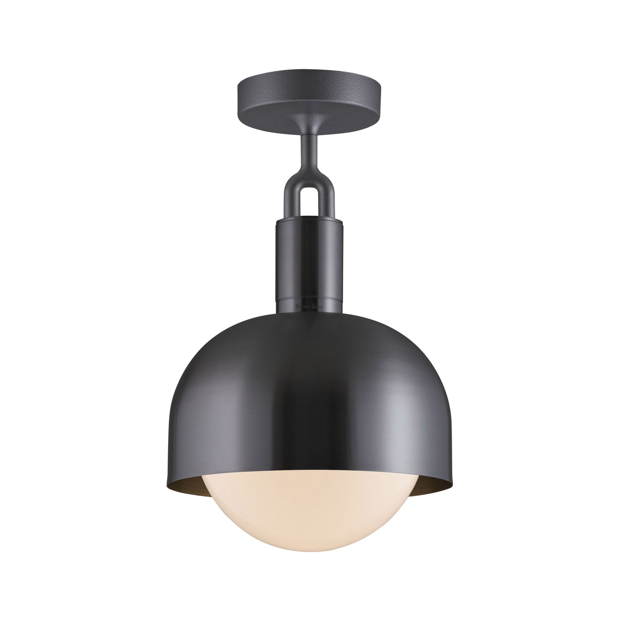 Make a statement consistent with a blend of industrial and farmhouse motifs. Adding energy-efficient illumination to a focal point, the Forked Shade Globe Semi Flush Mount Ceiling Light from Buster + Punch maintains a conventional sleek metal-constructed shade with ornate accents. A festive globe shade descends to glow with illumination.