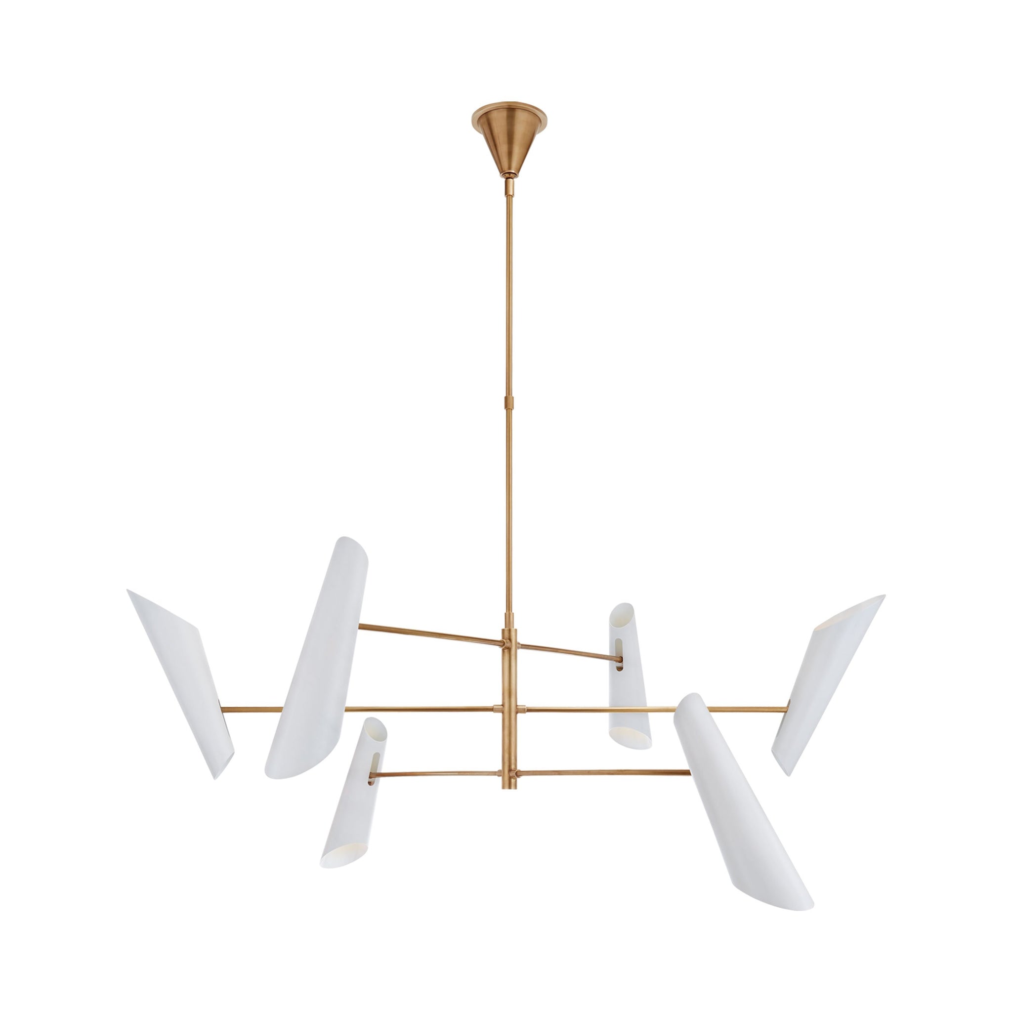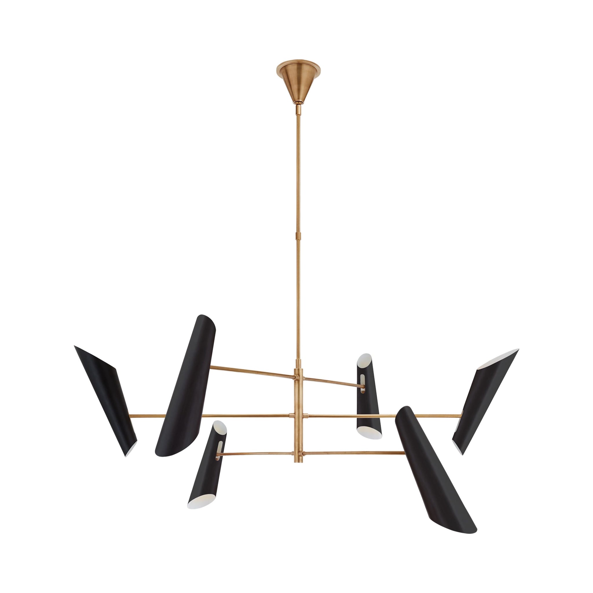 The Franca Chandelier from Visual Comfort Signature allows for pivoting with each light for a perfected illumination. Tubular shades complement the clean lines of this piece with stunning visual impact.