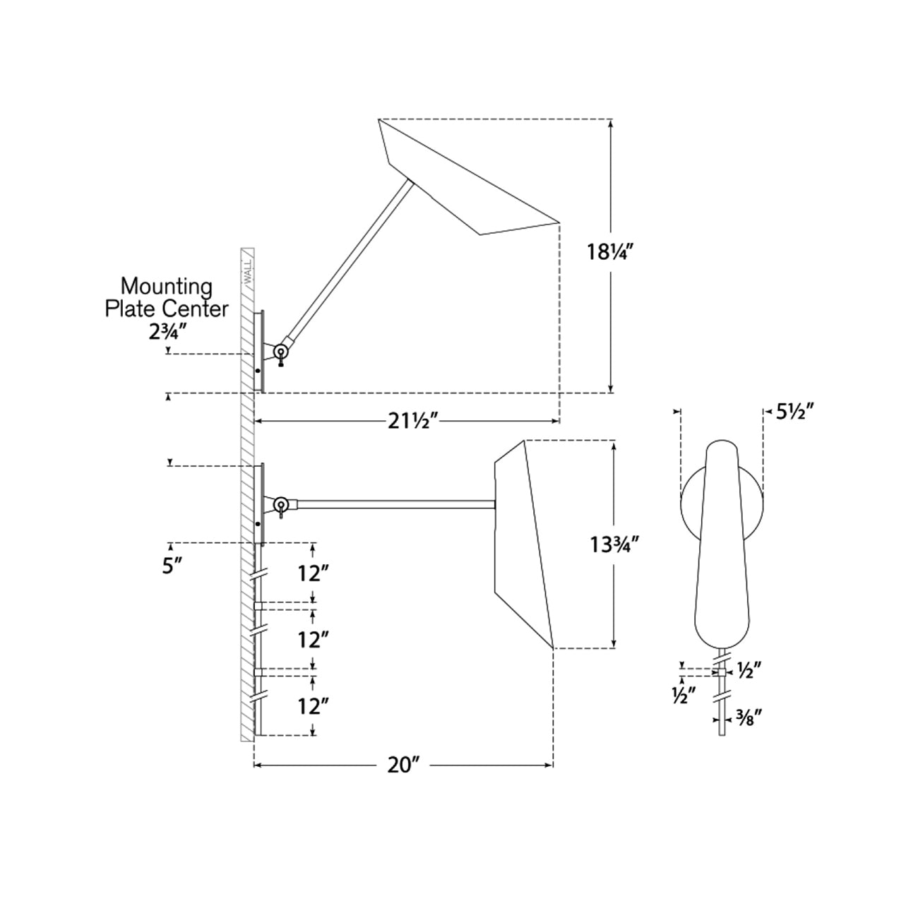 - Dimensions: 5.5"W X 13.75-18.25"H; 20"-21.5" Extension