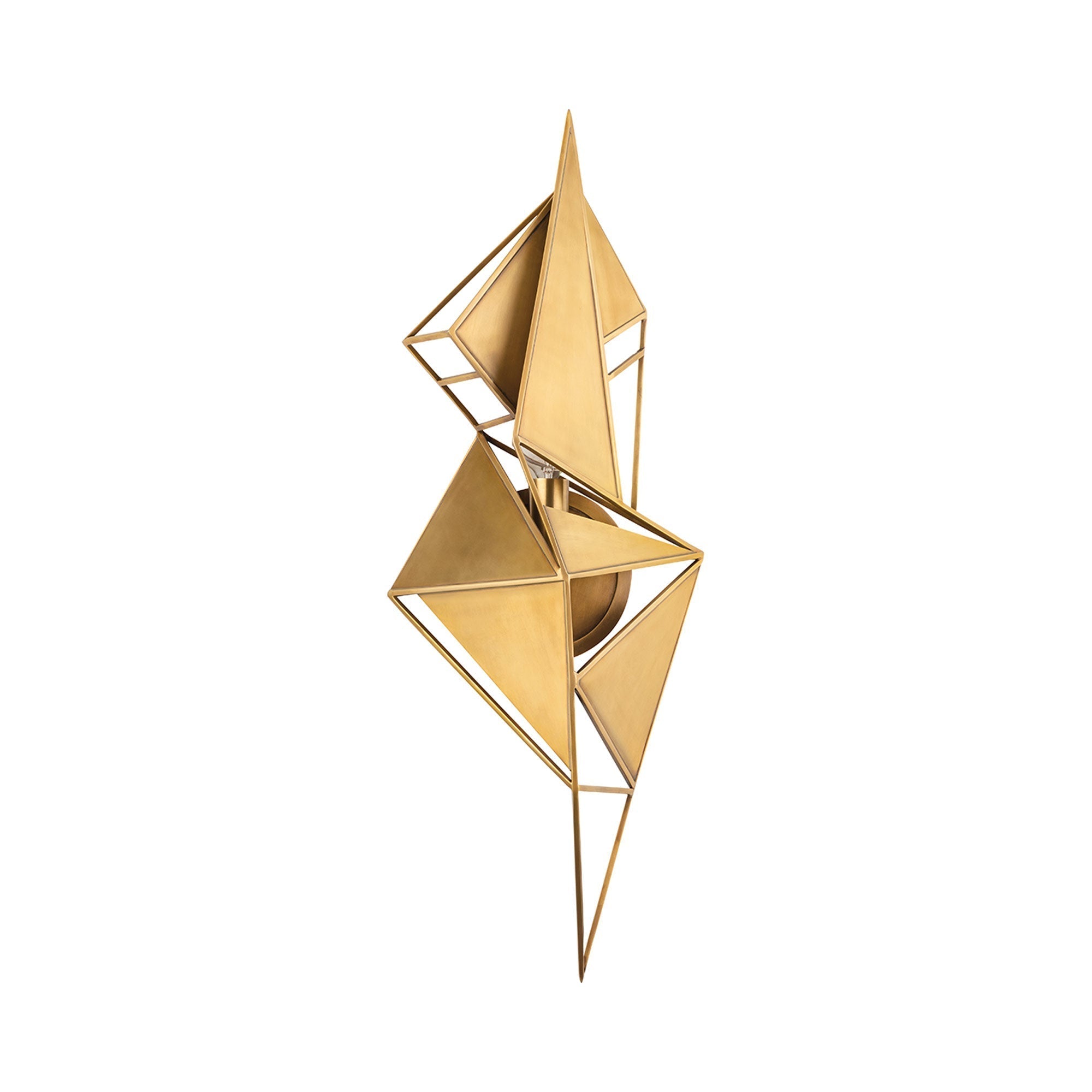The Freesia Wall Light from Corbett Lighting represents the intersection of organic fine art and lighting, producing an unforgettable aesthetic with impact. A striking silhouette configured with triangles and openwork metal with a romantic vintage brass finish comes together to make a signature design statement. Choose this fixture as a focal point for a bedroom or main living space.