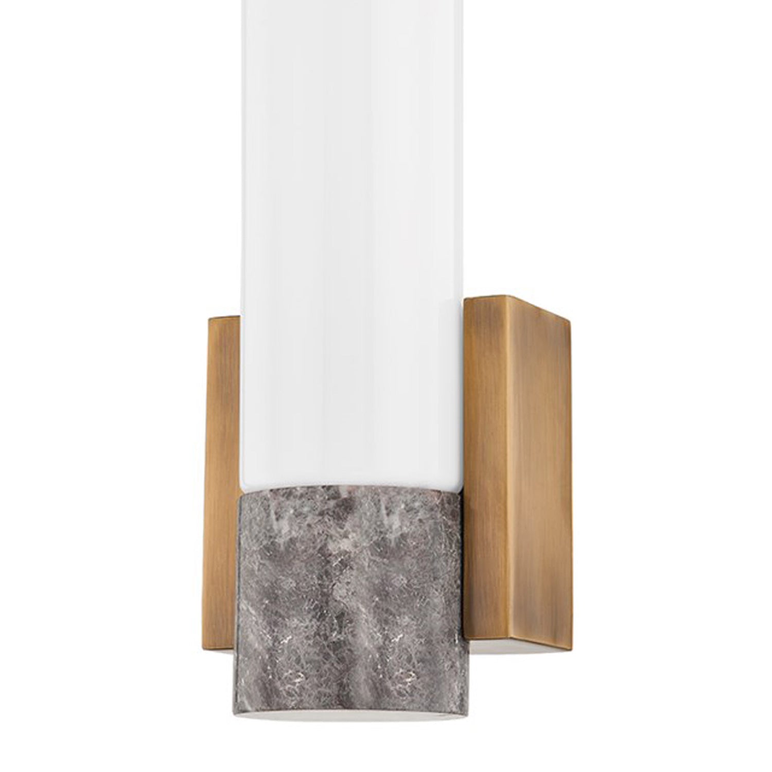 Count on the Fremont Wall Light from Troy Lighting to change the attitude in a modern space with charming personality. This intriguing fixture works with cylindrical glossy glass shades and banded gray marble accents, and attaches to a patina brass block mount. Embrace an exceptional mix of materials, finishes, and aesthetical branding.