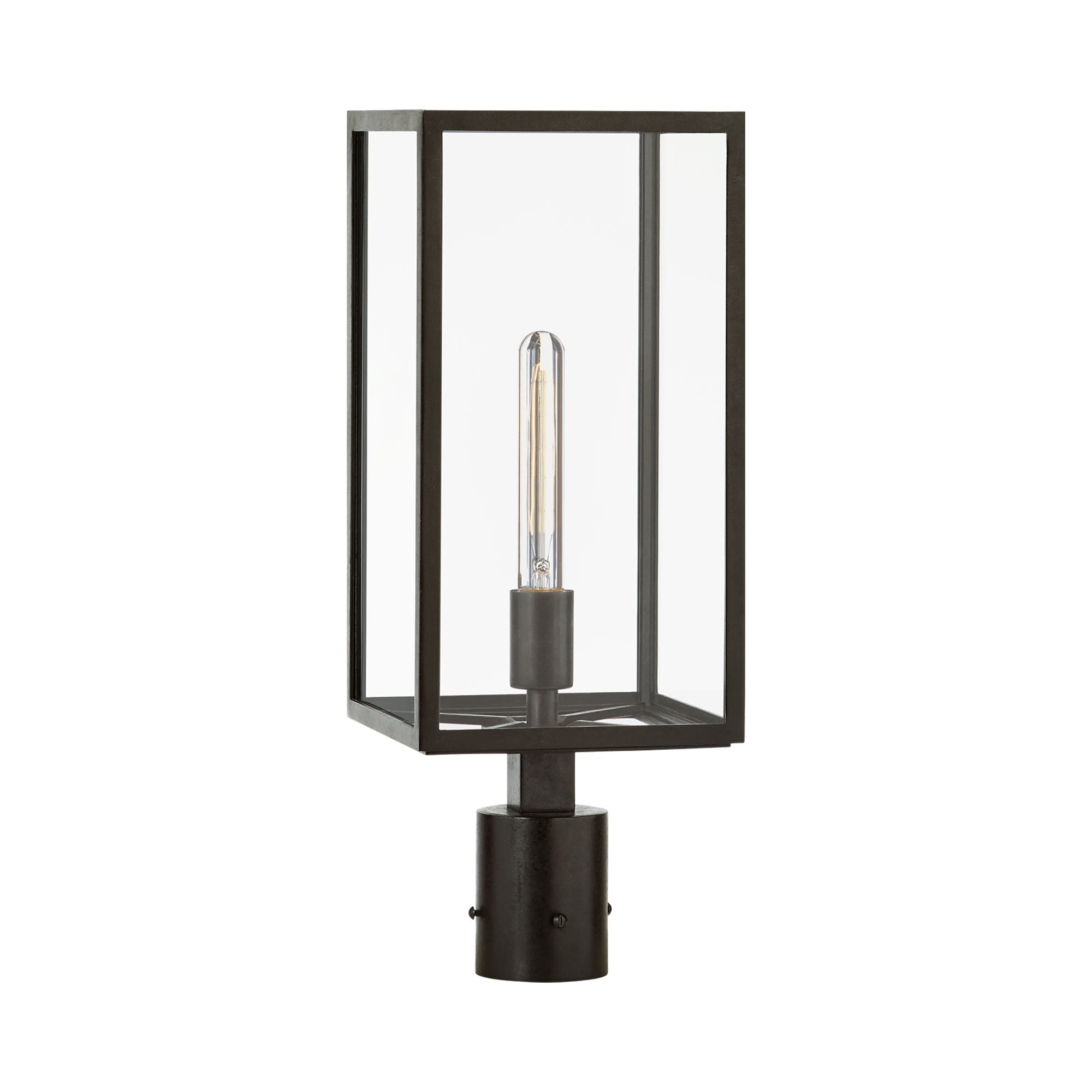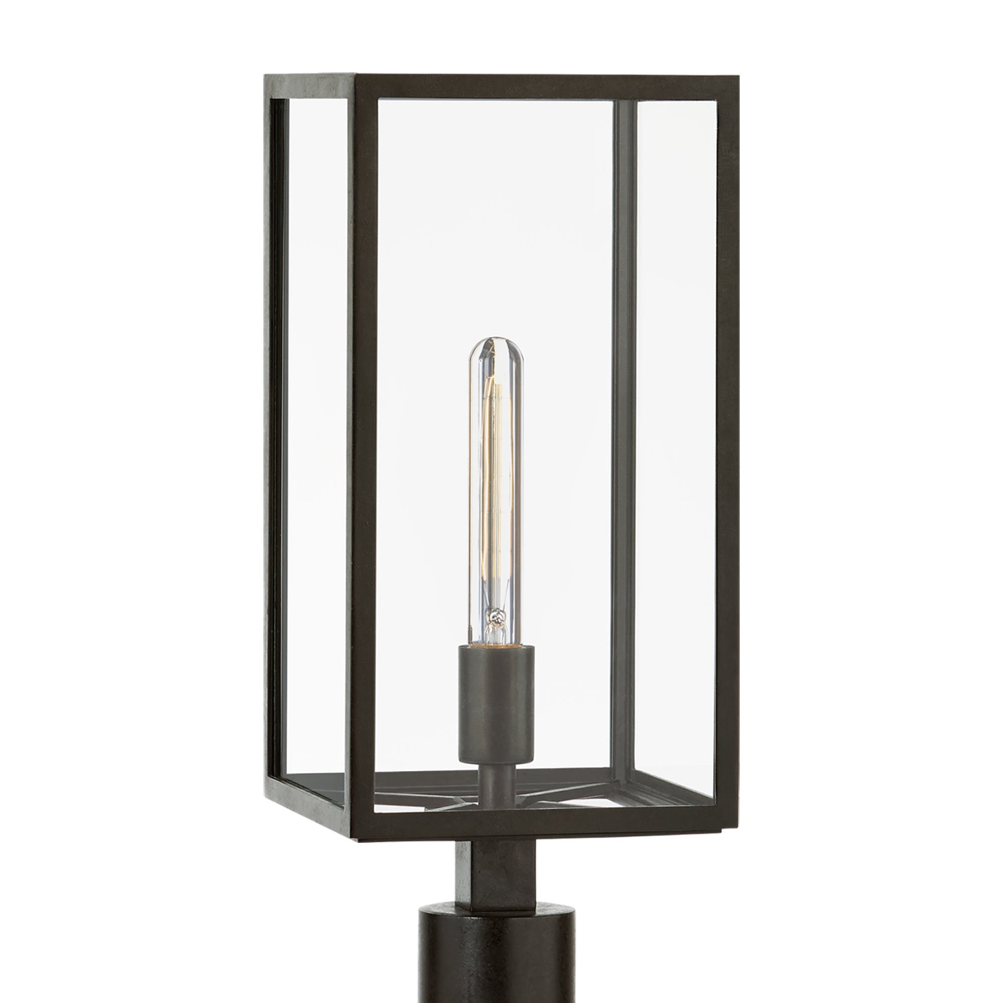 Exterior spaces come to life in a modern way when the Fresno Outdoor Post Light from Visual Comfort Signature adds illumination in a landscaped area or garden. Clean lines go full-on geometric in a rectangular aged iron finish metal frame with clear glass panels. Feel the contemporary attitude of a straight socket matching the cylindrical silhouette of its mount.