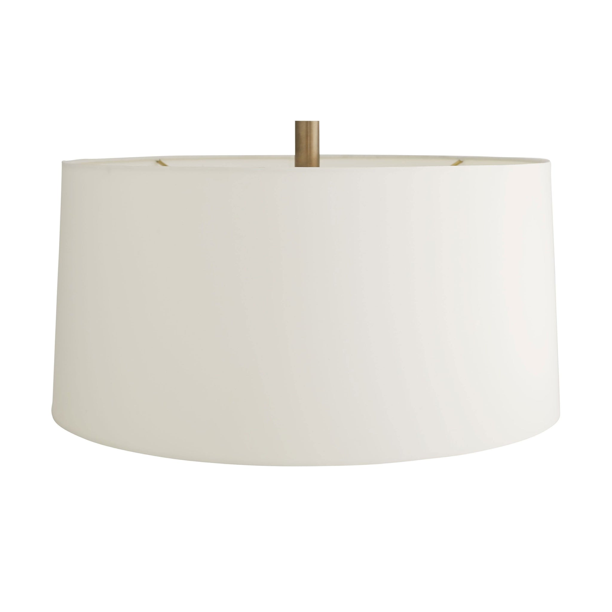 column lamp is updated with a thick antique brass band that tops its bronze-finished base. The dueling hues deliver a striking contrast that elevates its aesthetic from straightforward to staggering. Topped with an ivory microfiber drum shade with white microfiber lining.