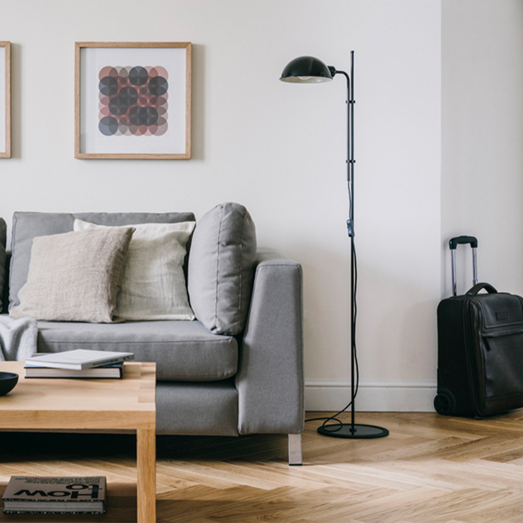 A height adjustable, 360-degree shade add compelling functionality to the engaging silhouette and industrial influences of the Funiculi Floor Lamp from Marset. Its dome shade and disc base are emphasized with a double post design and a curved arm for precision lighting in your home office, den, or living room.