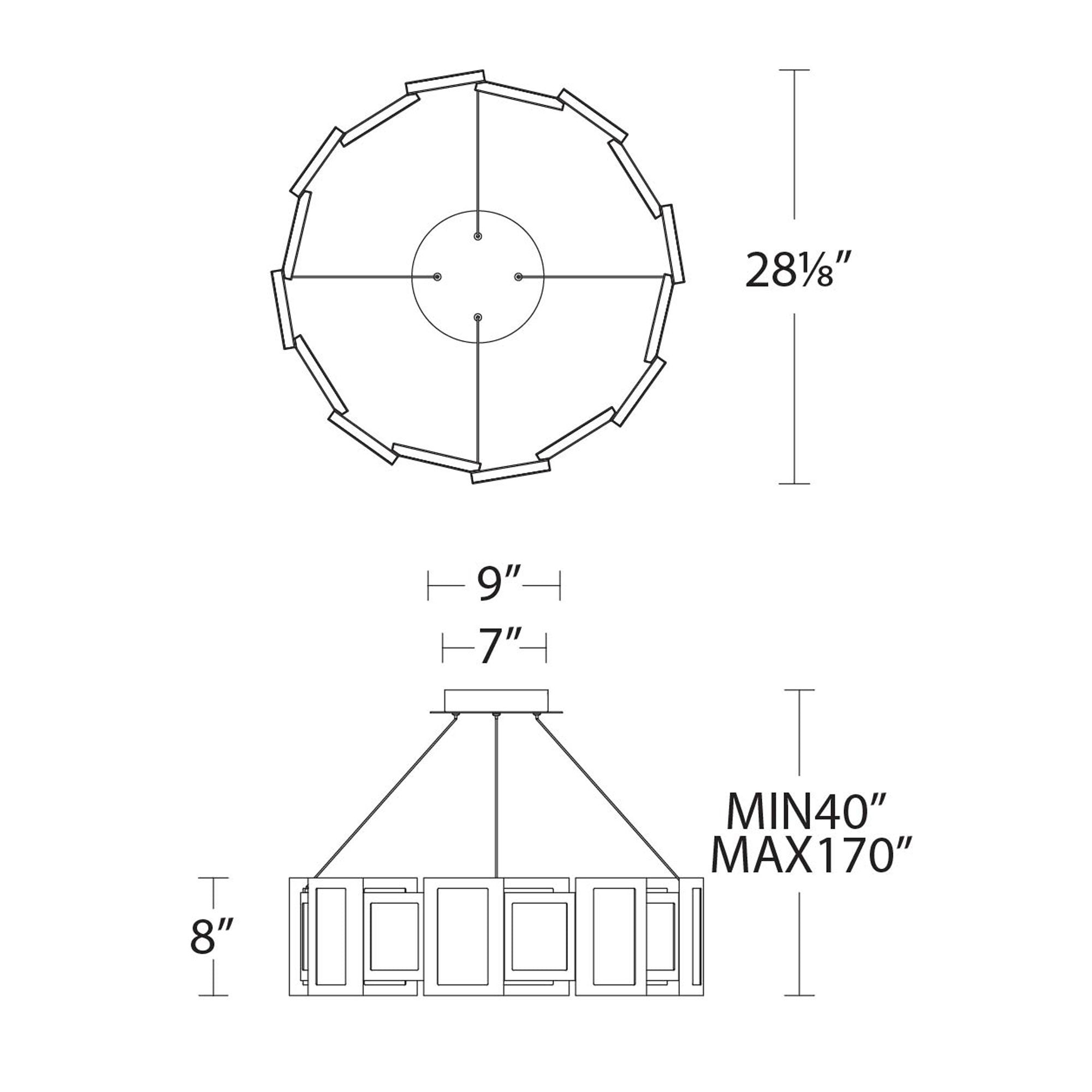 - Dimensions: 28.13"D X 8"H; 170" max height