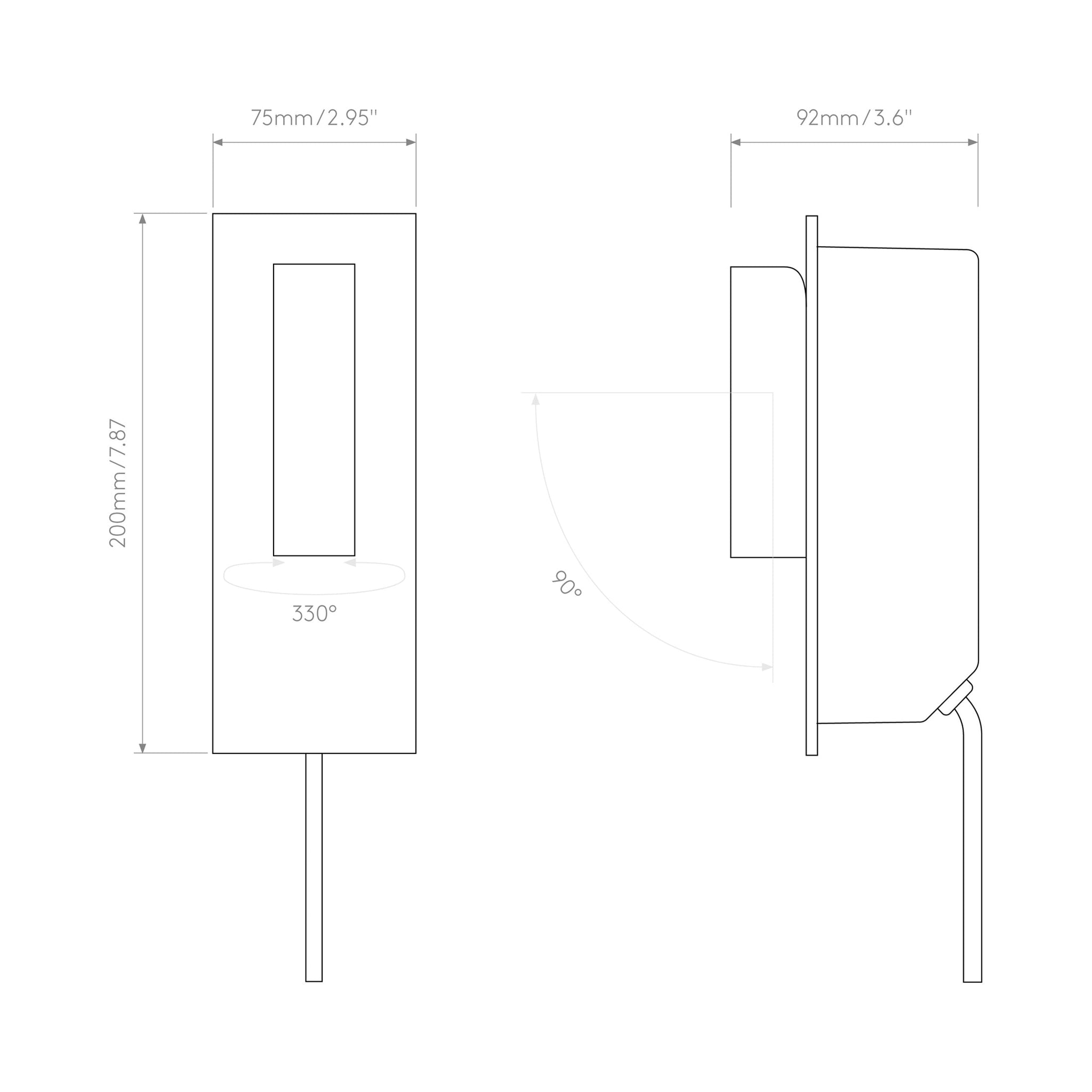 - Dimensions: 2.95"W X 7.87"H; 3.62" Extension (Cord Set) OR 4.01" Extension (Other Design)