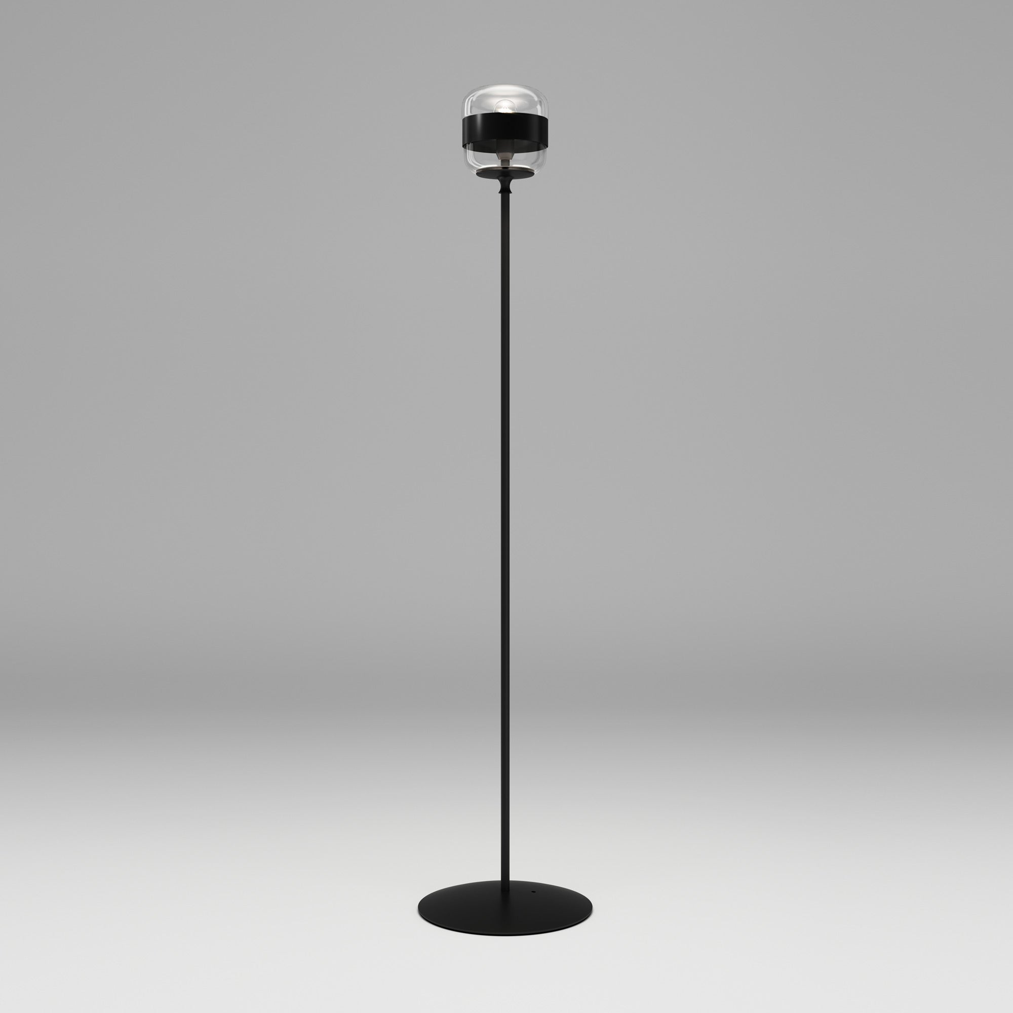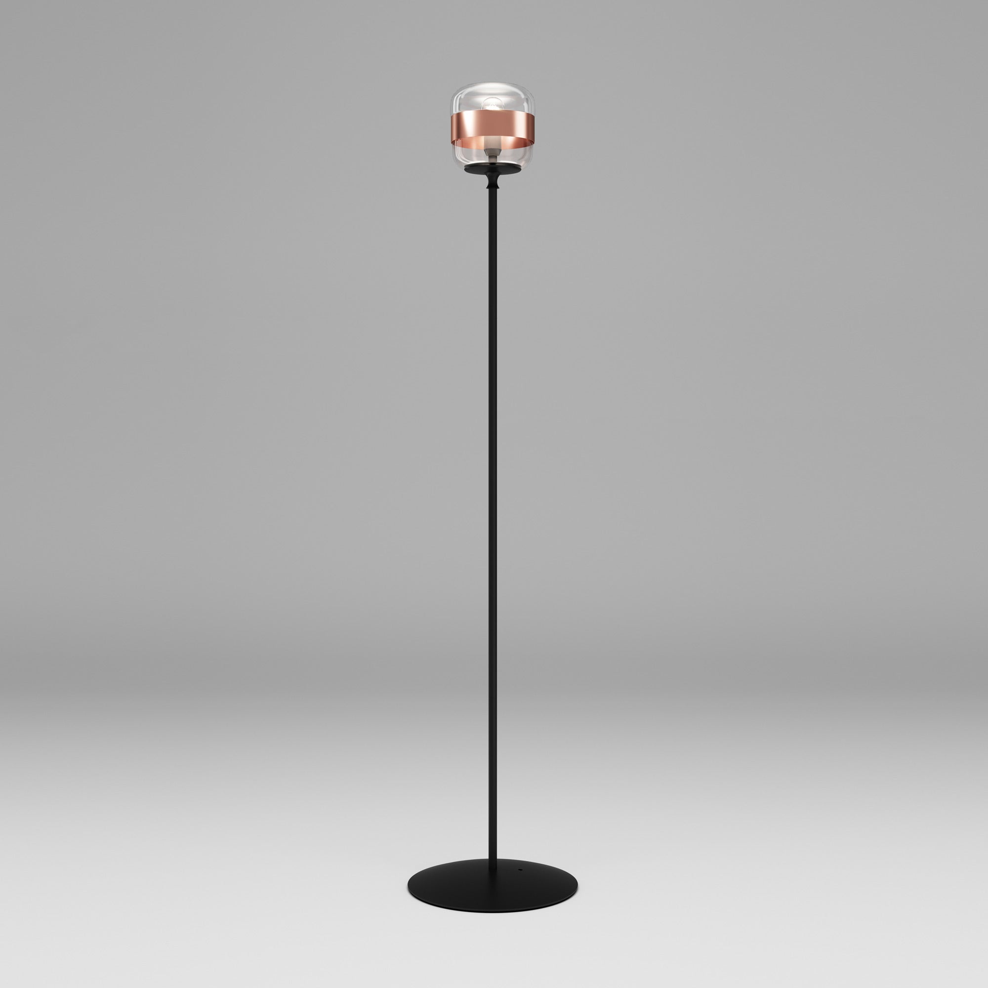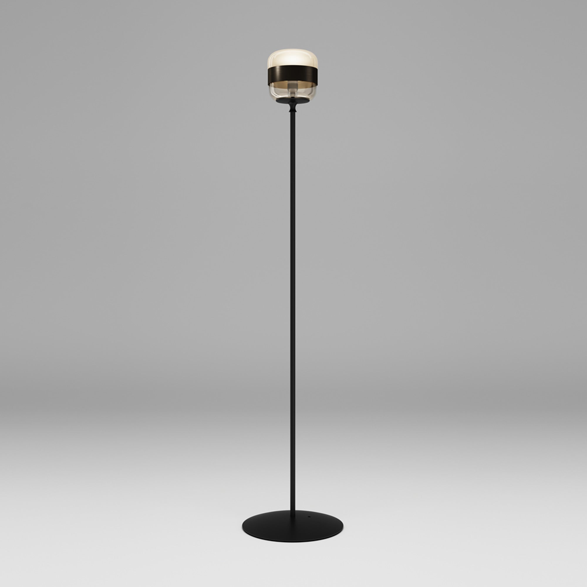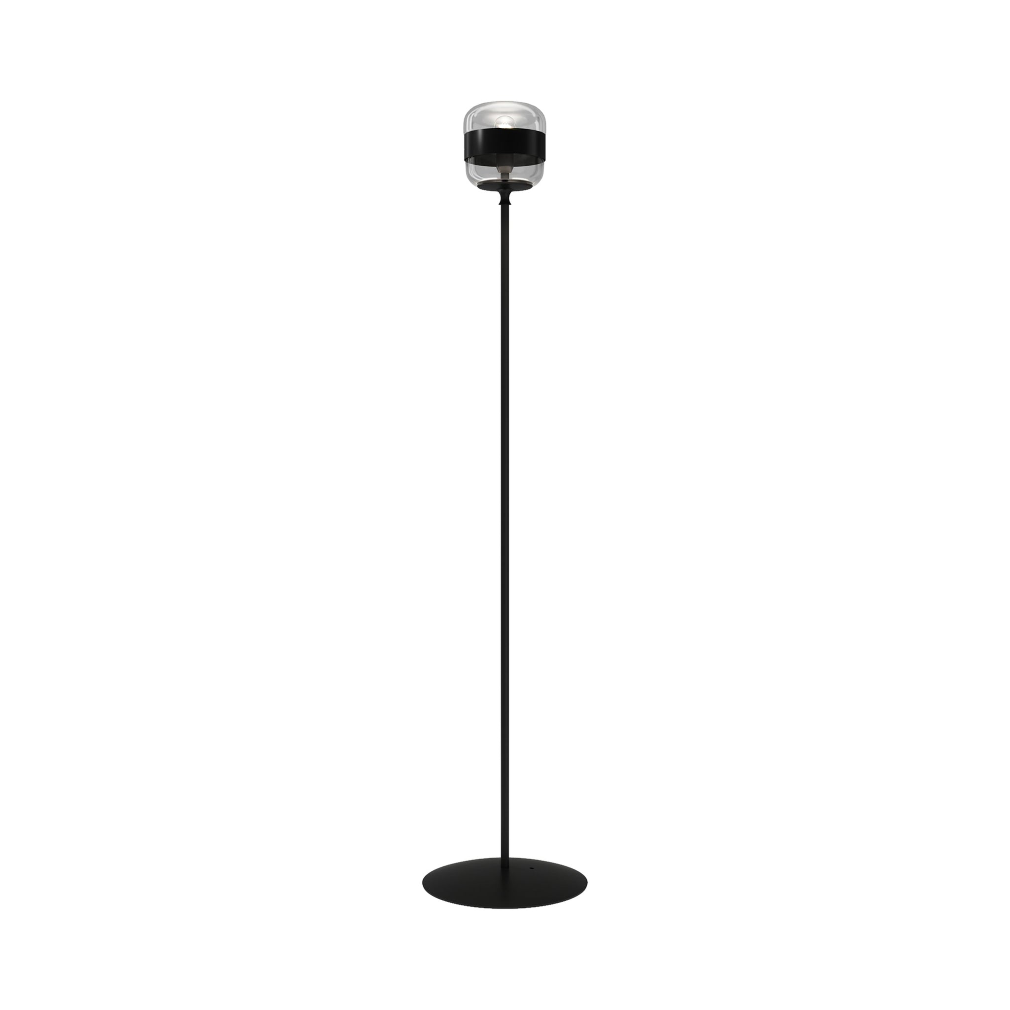 Notable industrial influence creates character and style in a light source with a distinctive look. Choose the Futura Floor Lamp from Vistosi to add a dynamic look fashioned of shapely glass with a sleek ribbon band that adds an extra light filter. Art Deco ambiance leans both casual and artistic in a lamp with a bold black finish metal frame.