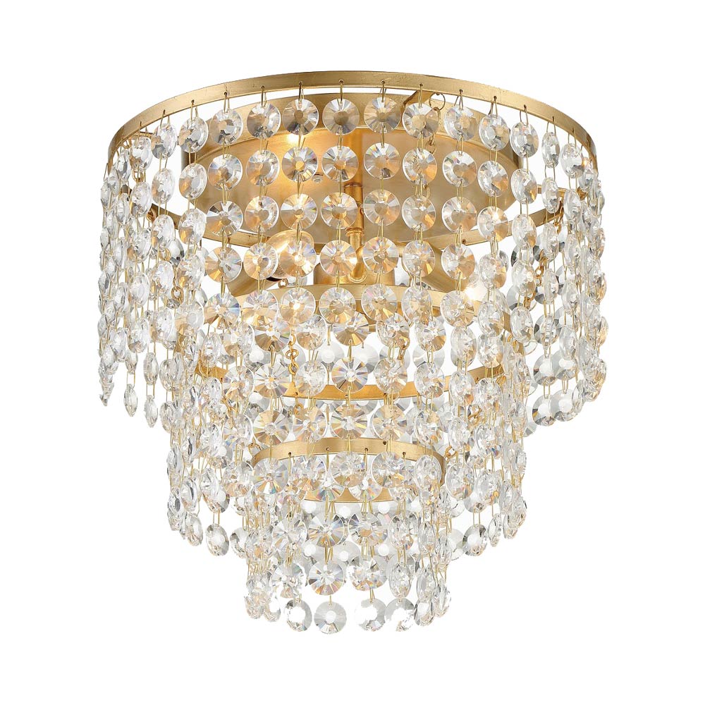 Captivating with a stunning design and materials mix, the Gabrielle Flush Mount Ceiling Light from Crystorama adds finishing touches to an upscale living space. Consider the decadence of a fixture with a carefully tapered silhouette, timeless and beautiful. Embrace the radiance of light flowing through strands of hand-cut crystal elements, and metal framing adding a subtle look.