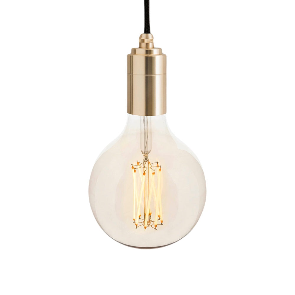 Raw aesthetics revisit a romantic industrial era to create lighting with surprising personality. The Gaia Mini Pendant Light from Tala maintains simplicity with an exposed filament clear glass bulb suspended from a prominent cable, as a metal accent holder glows as the bulb is illuminated.