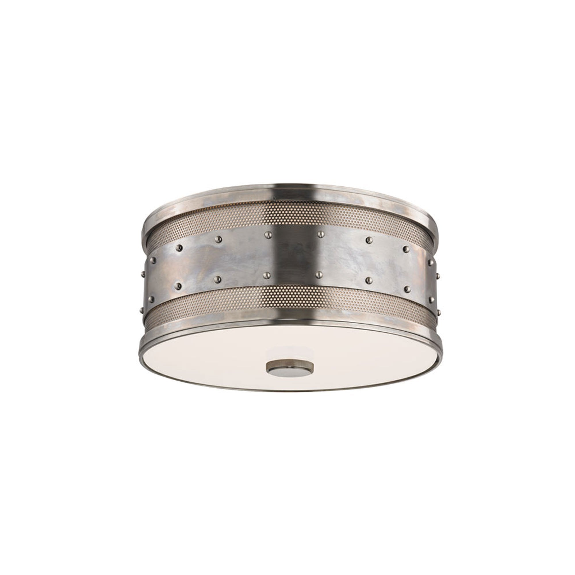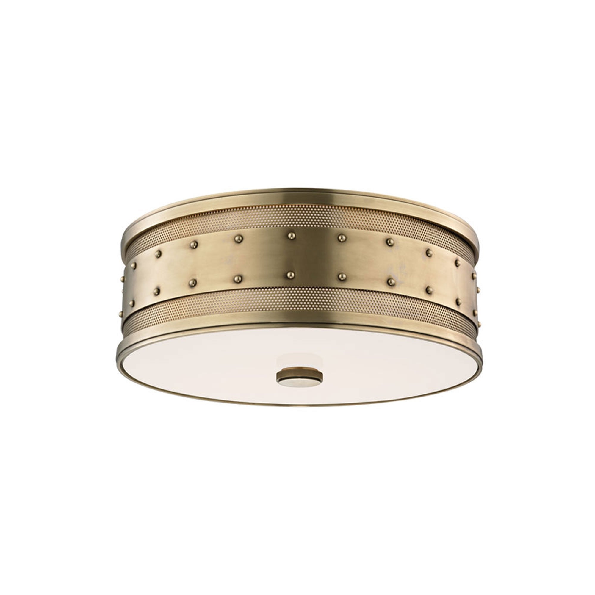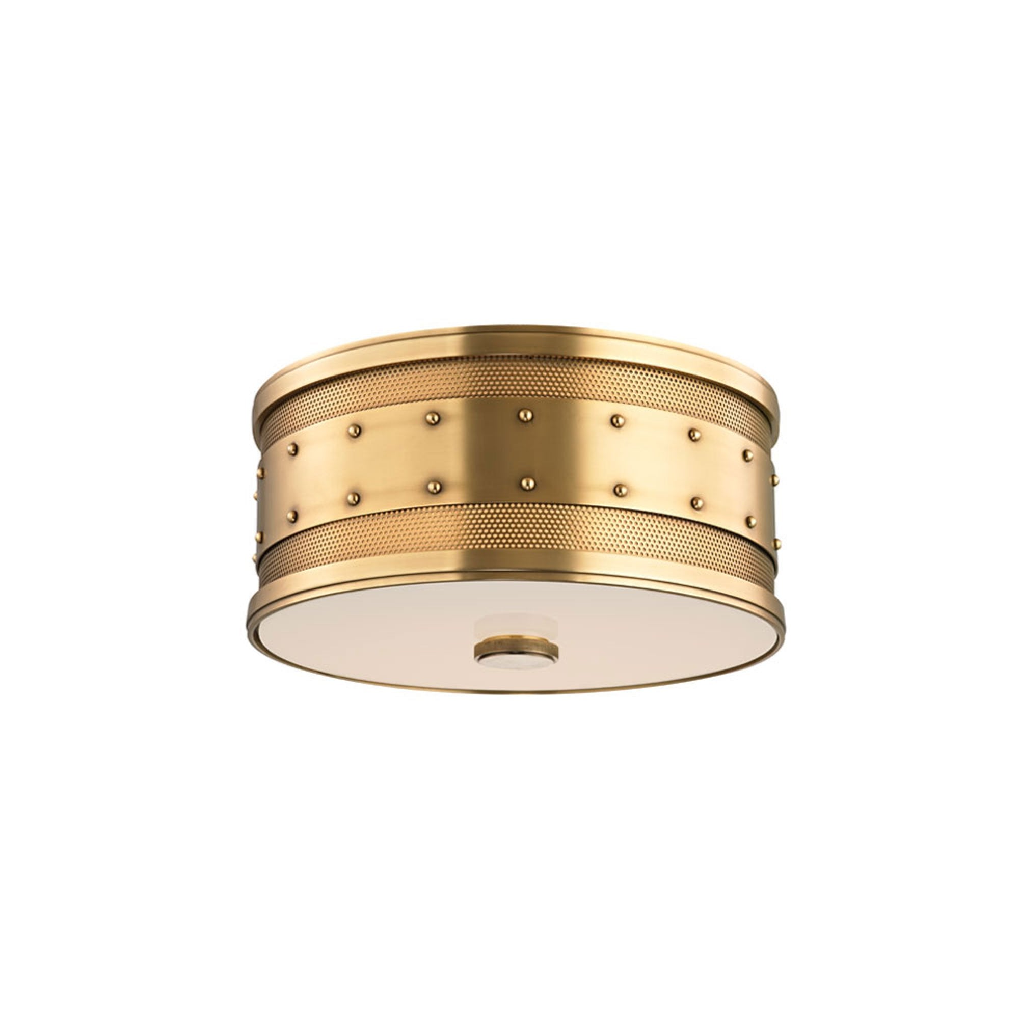 Our Gaines family applies industrial details such as studded rivets, perforated metalwork, and heavy brass extrusions to twenty-first century fixtures. Gaines offers a chance to add rich textural contrast and Machine Age intrigue to any space.