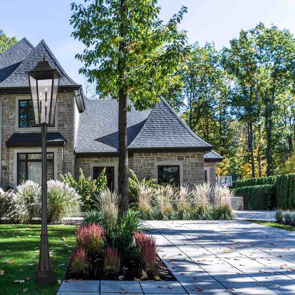 Indulgent village fare offers a retro look as the Gannon Outdoor Ornate Post Light from Z-Lite adds a romantic look to an exterior space. Clear beveled glass panels tuck into a lantern-inspired head, casting ambient lighting to illuminate front and back yards. Intricate silhouetting offers a custom look with plenty of charm.