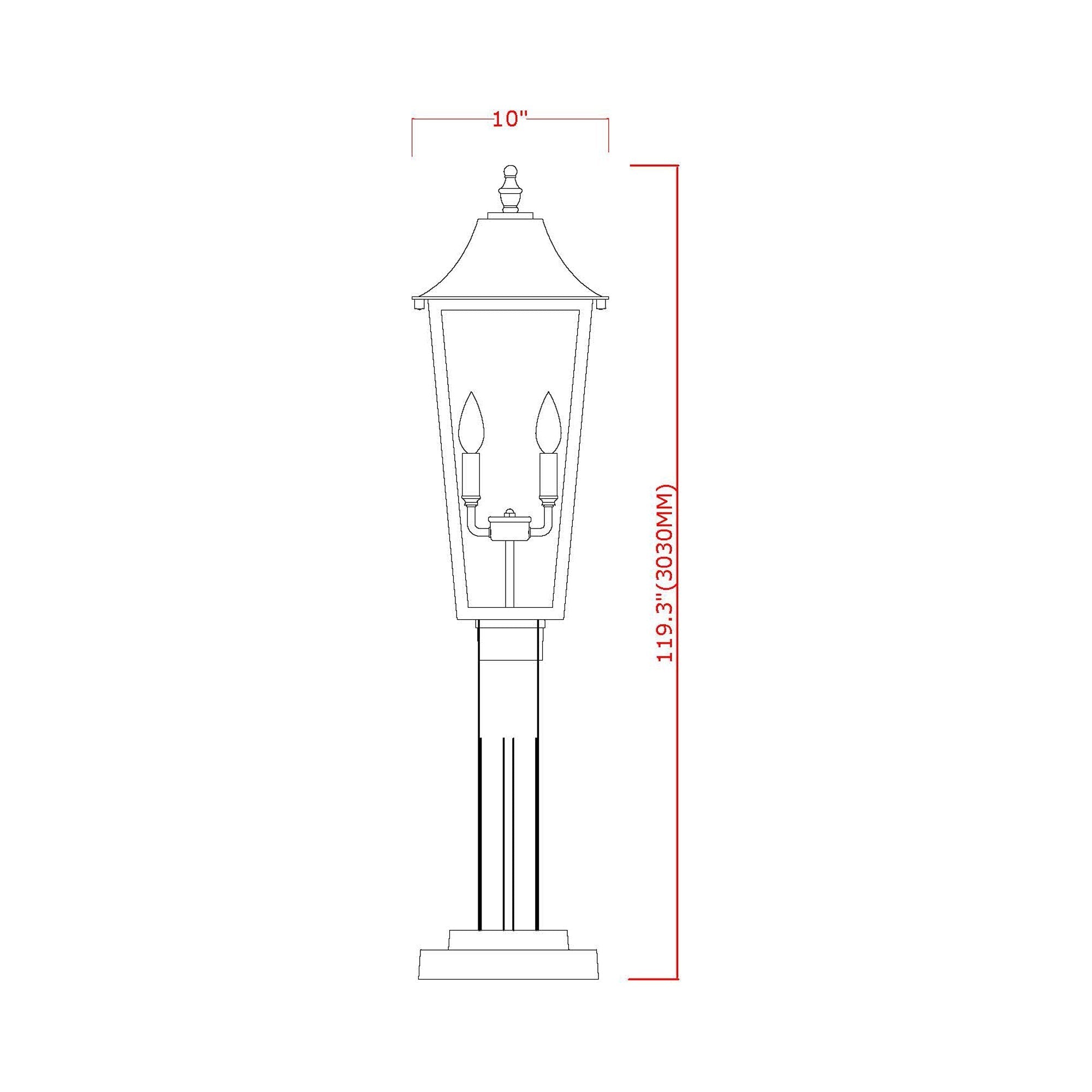 - 10-Inch: 10"W X 119.3"H