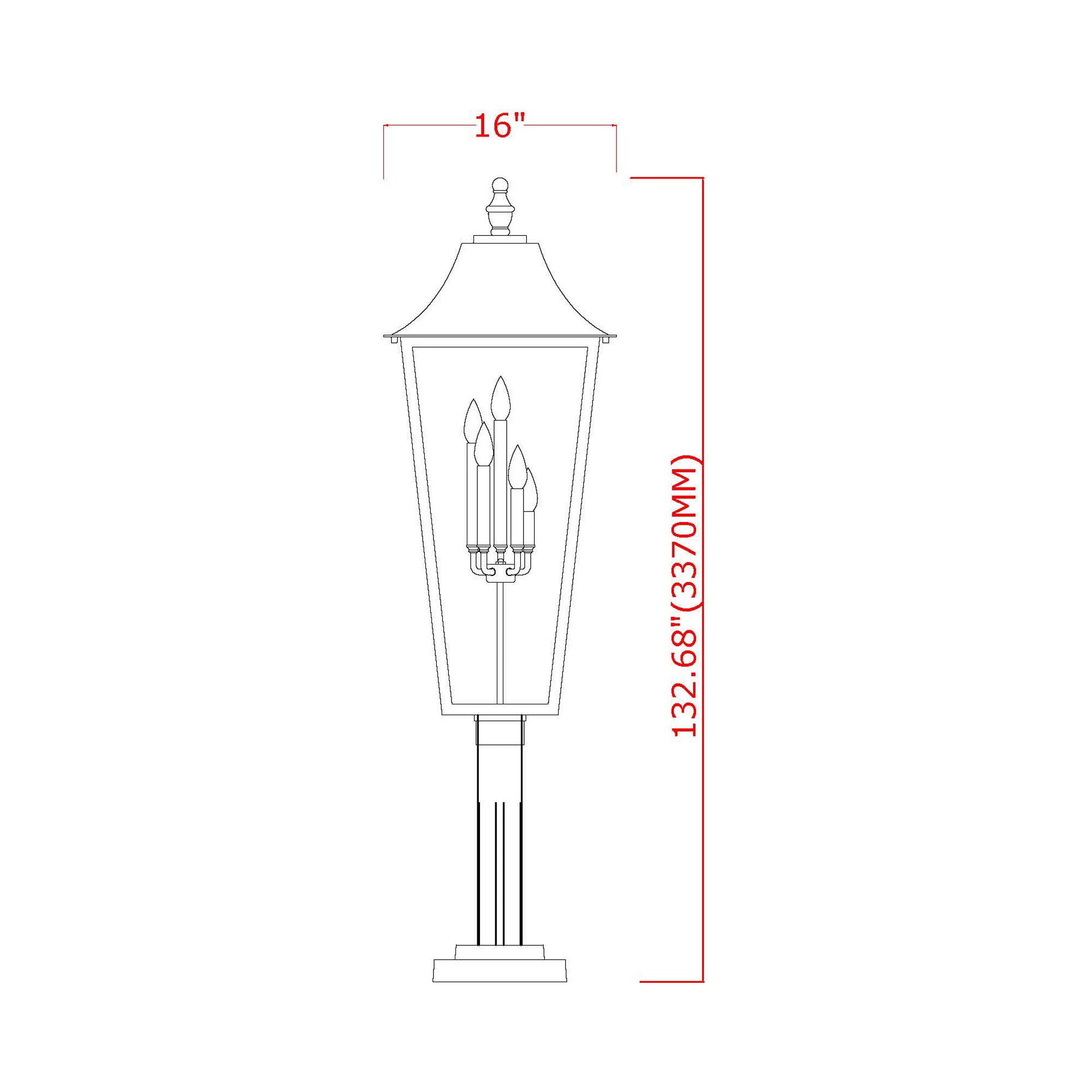 - 16-Inch: 5 X 60W 120V E12(candelabra base) incandescent lamps (not included)
