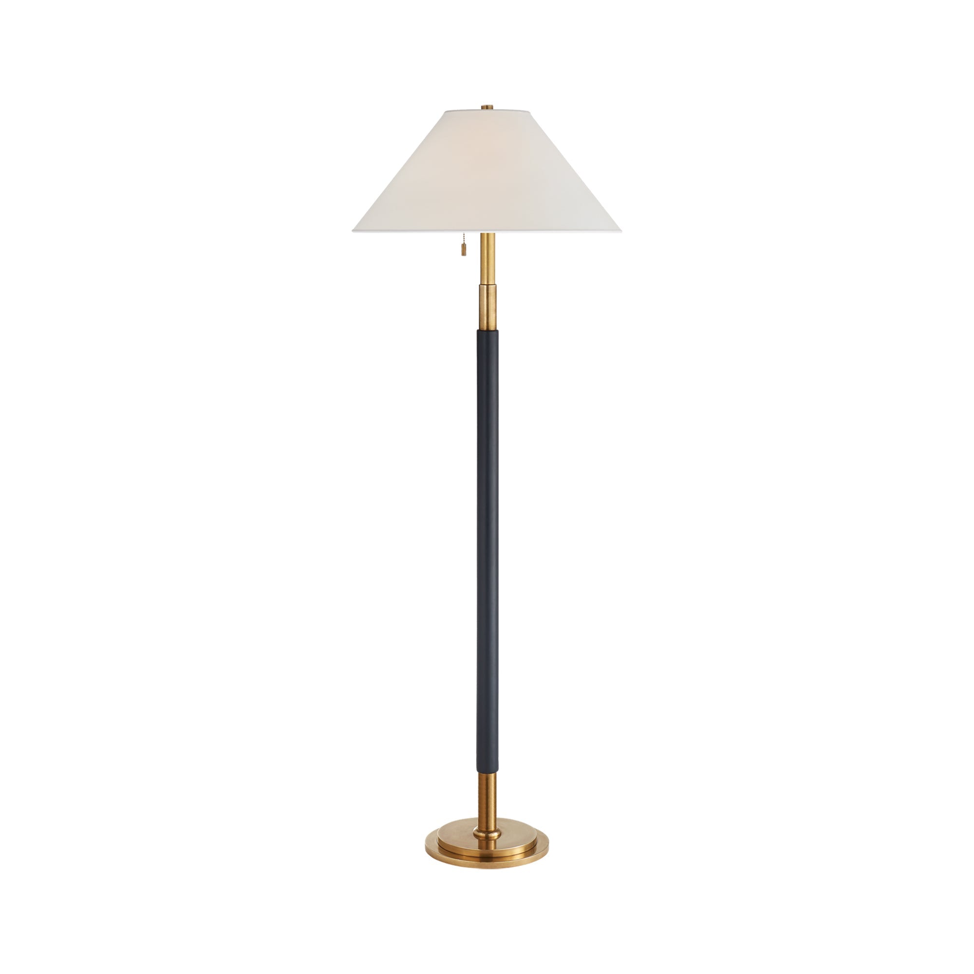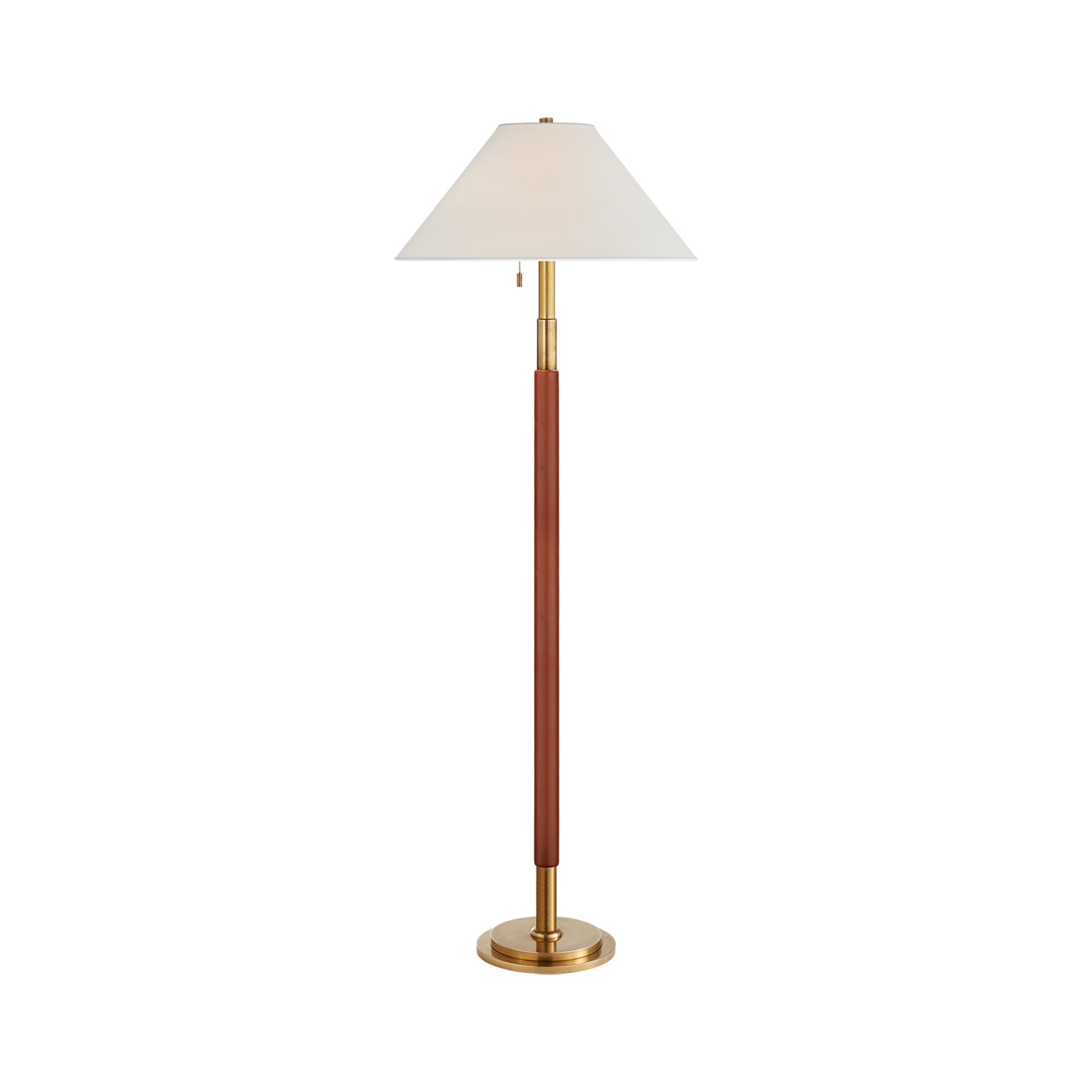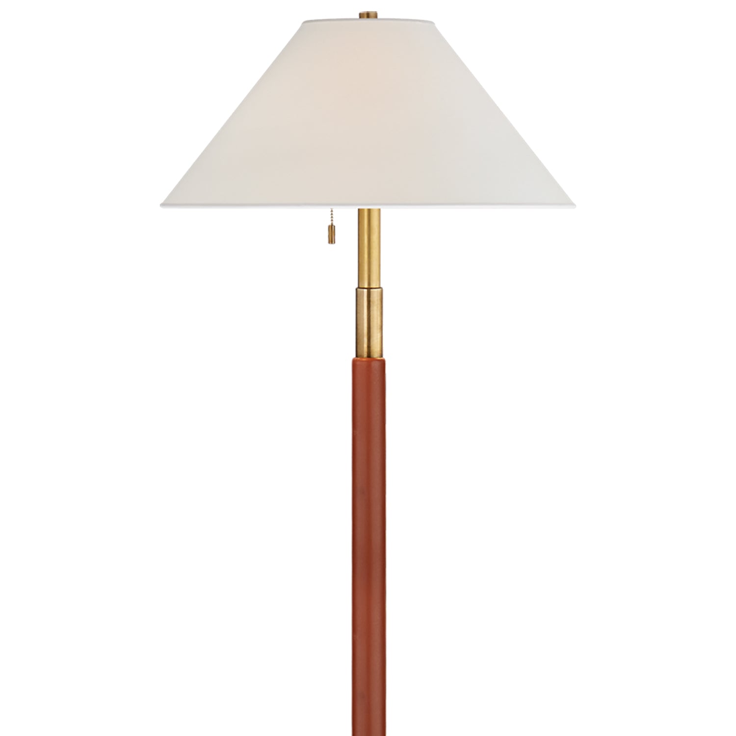 With no shortage of sophistication, the Garner Floor Lamp from Visual Comfort Signature manages to retain a versatile aesthetic perfect for use in any space. Designer creds speak to a lamp adding chic leather to metal framing, enhancing with a jolt of color and delivering spatial separation. A textured percale shade magnifies an elegant impact.