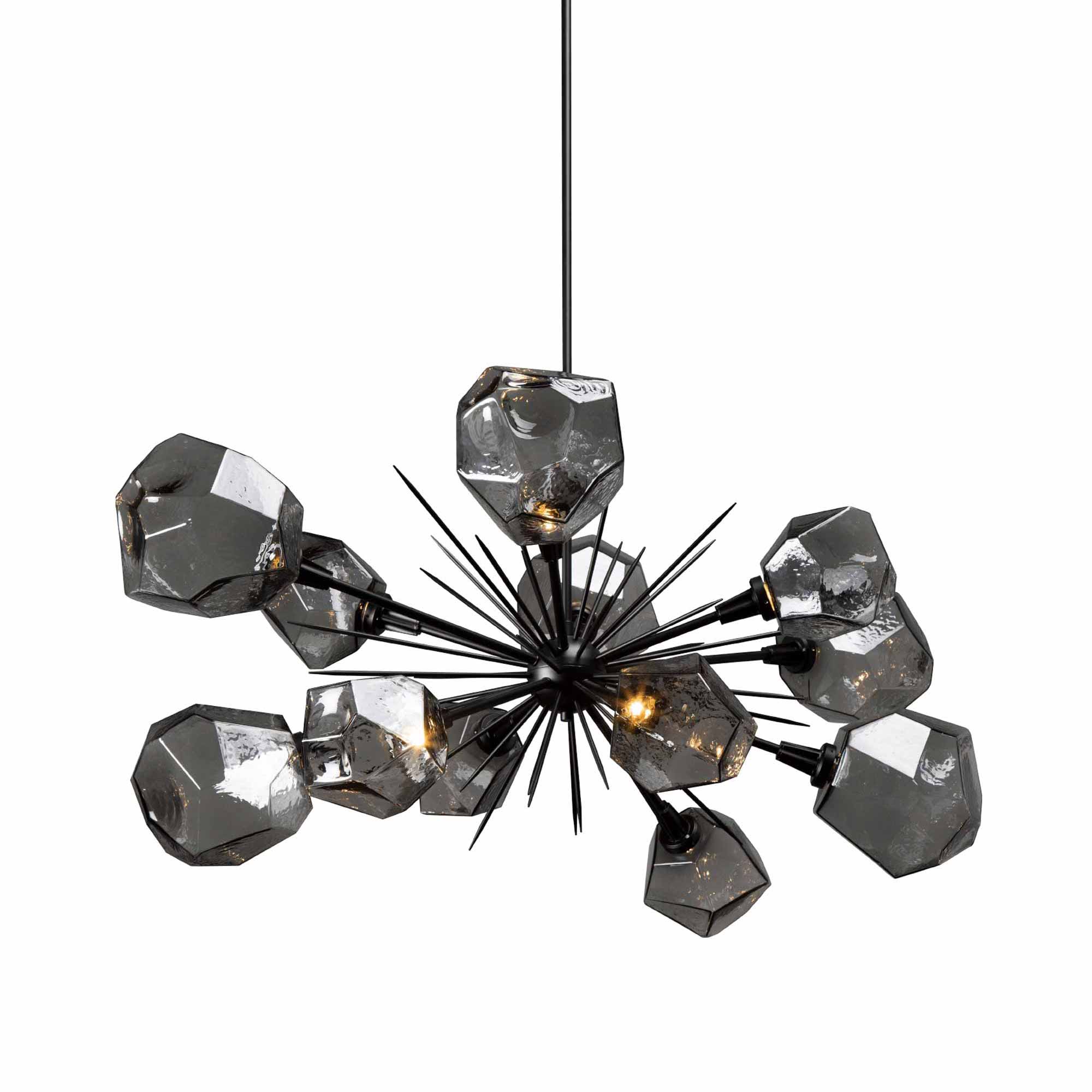 An explosion of sophistication, the Gem Oval Starburst LED Chandelier from Hammerton Studio is a dynamic addition over a dining table or in an entry. Metal shards reinforce the starburst motif while faceted, blown glass shades bring organic flair to any space.