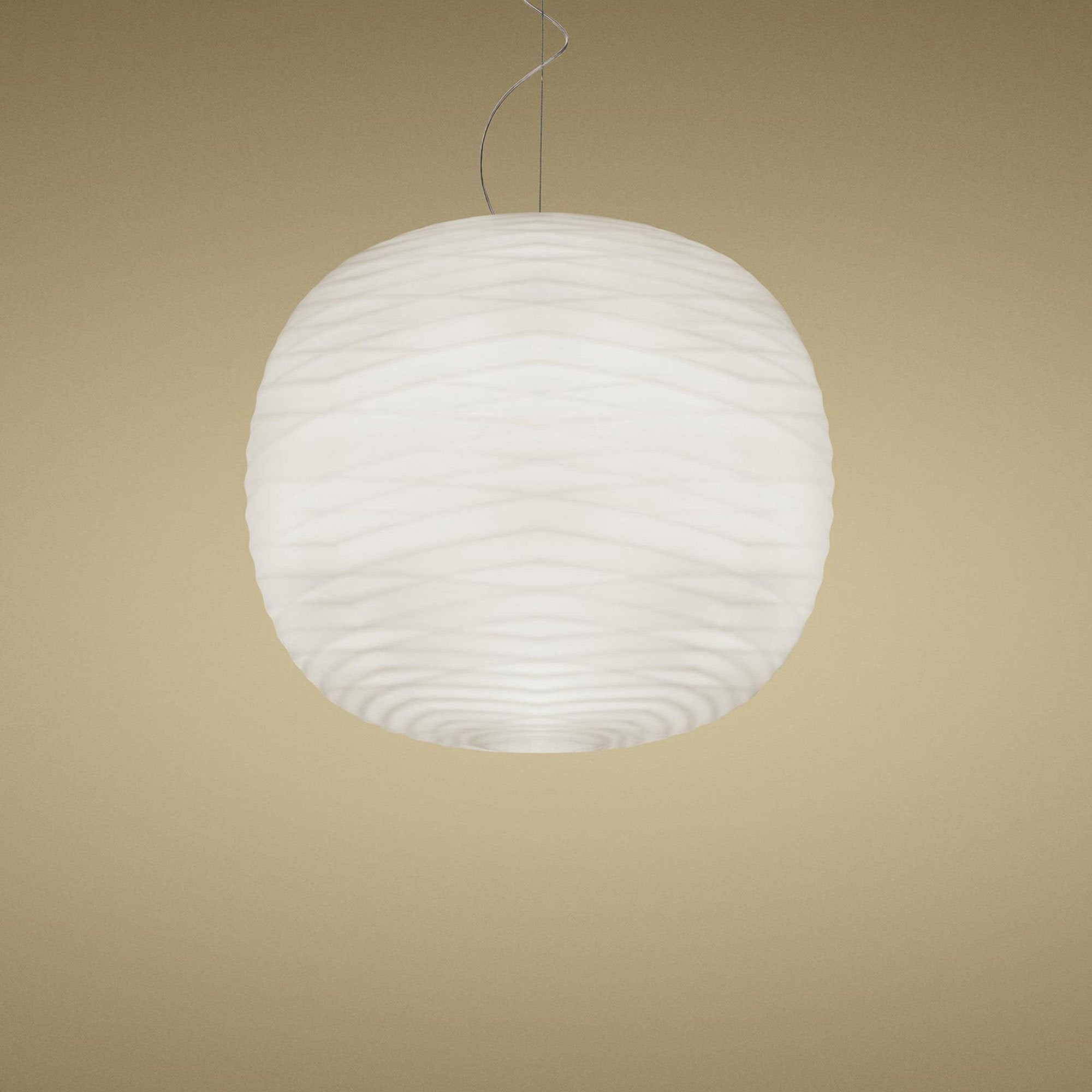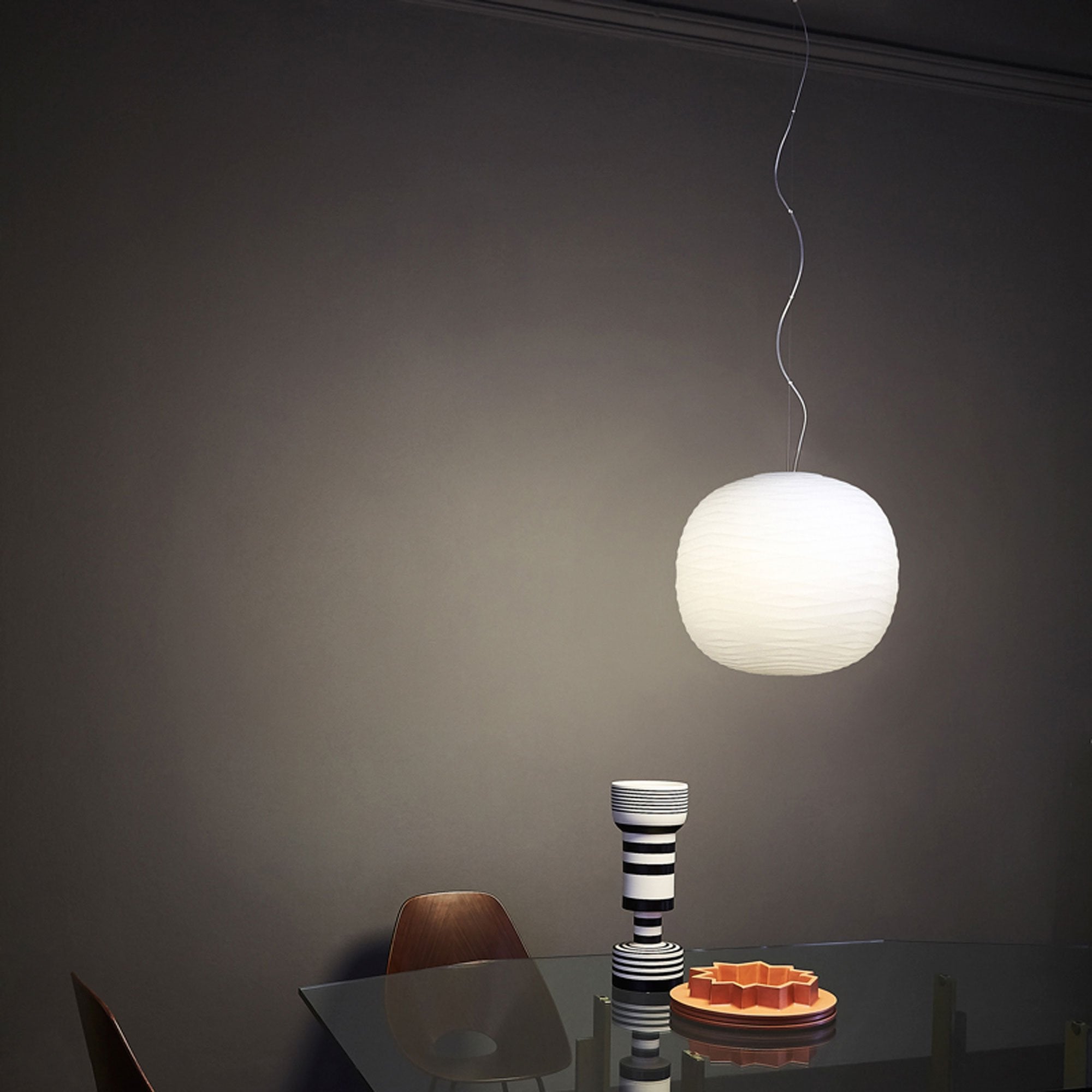 With a patterned shade, the Gem Pendant Light from Foscarini offers a soothing effect similar to gentle ocean waves. Place this piece near a window with waterfront views for extraordinary appeal.