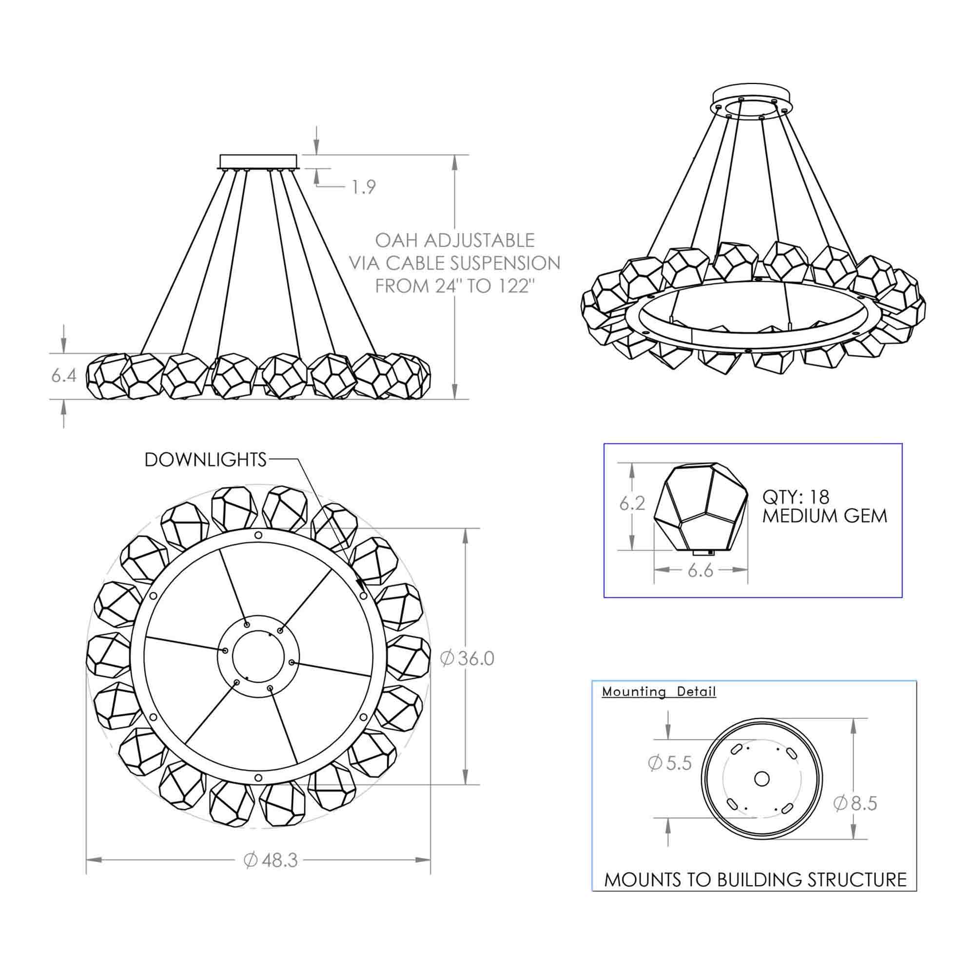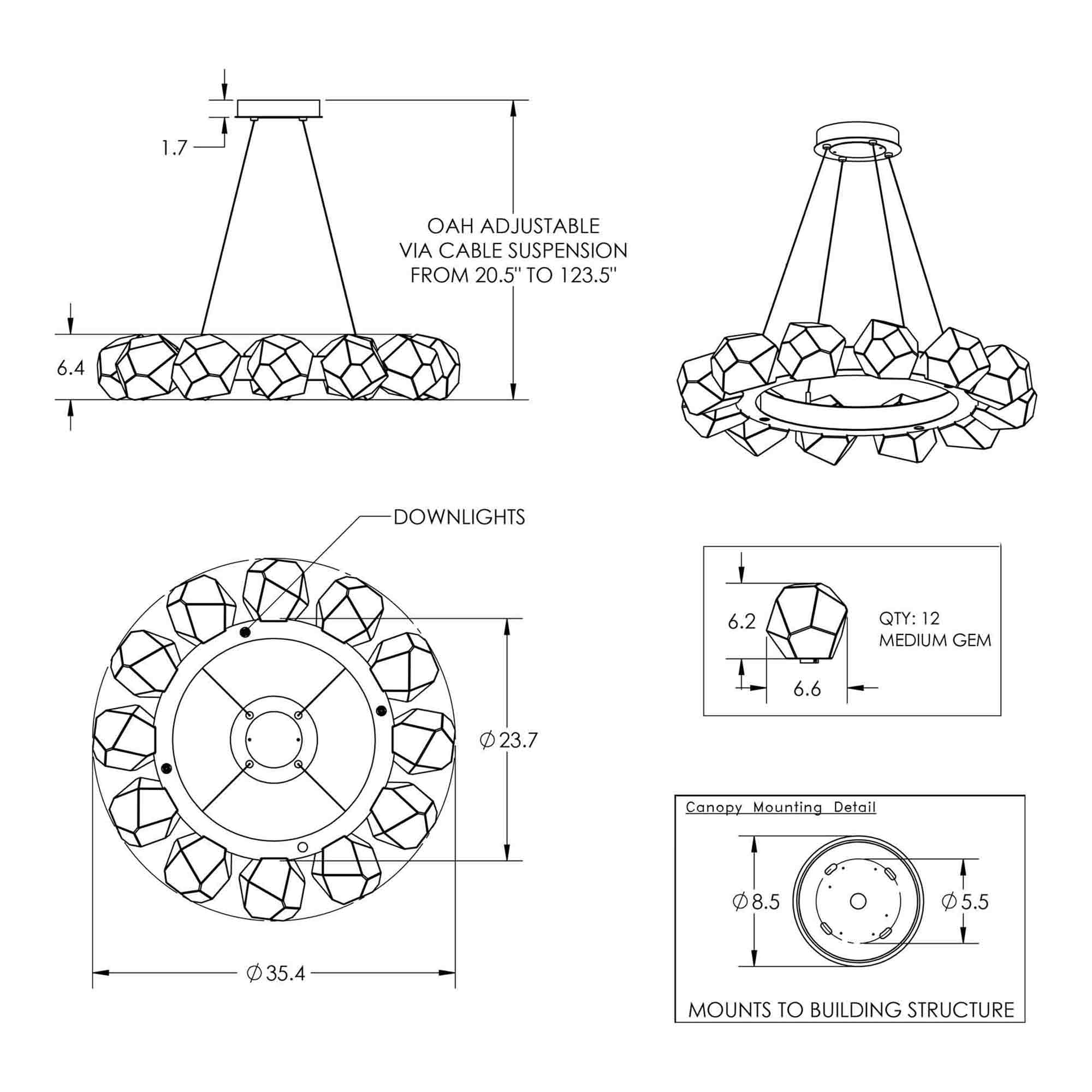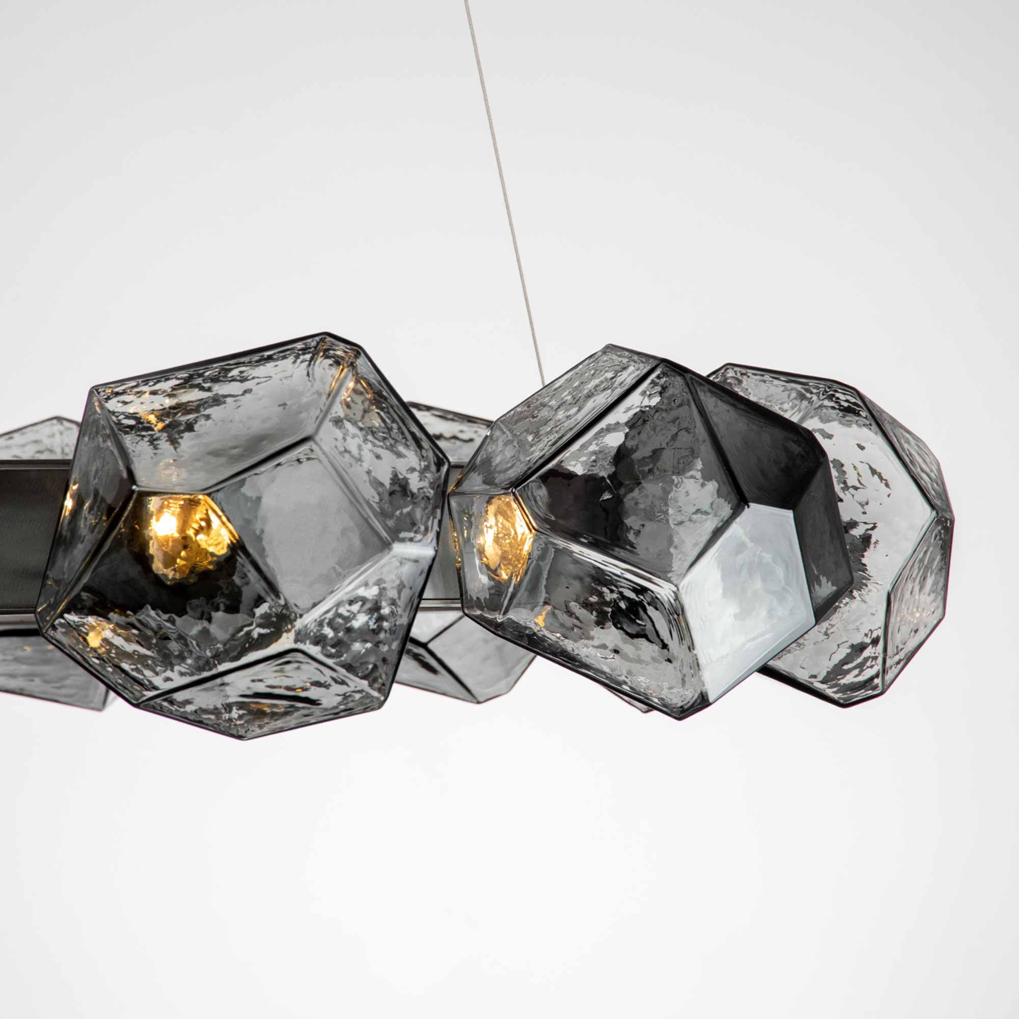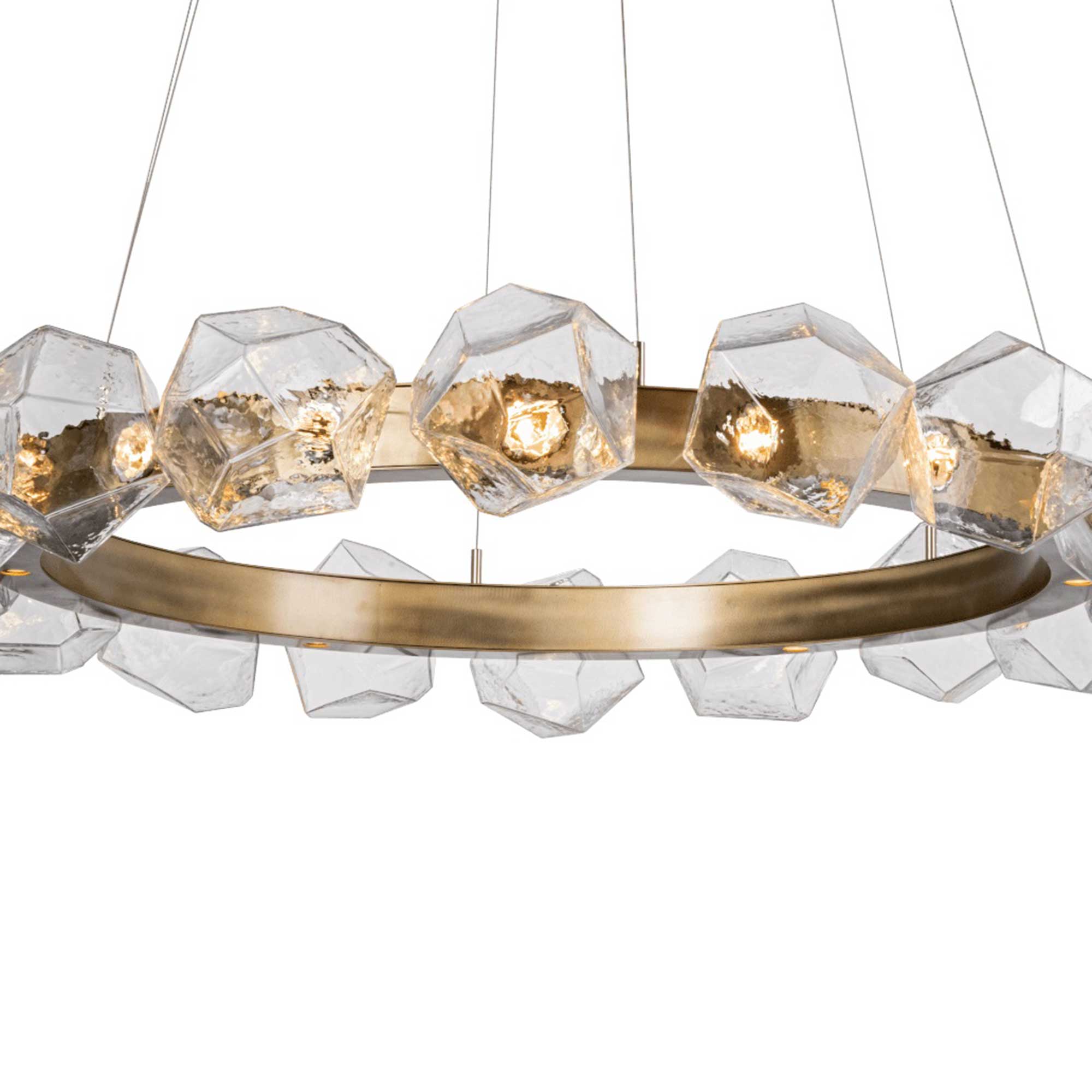 Undeniably inspired by beautiful jewelry, the Gem Radial Ring LED Chandelier from Hammerton Studio is a true focal point in a kitchen or dining room. Faceted blown glass glows with the illumination of energy efficient LEDs to bring bold style and wonderful lighting.