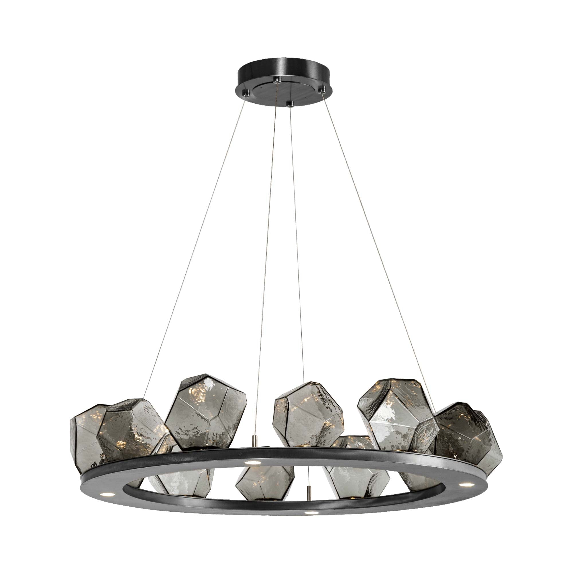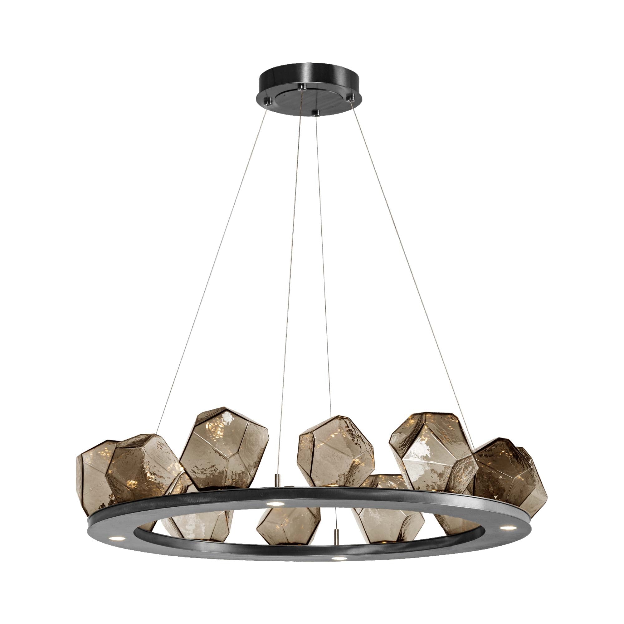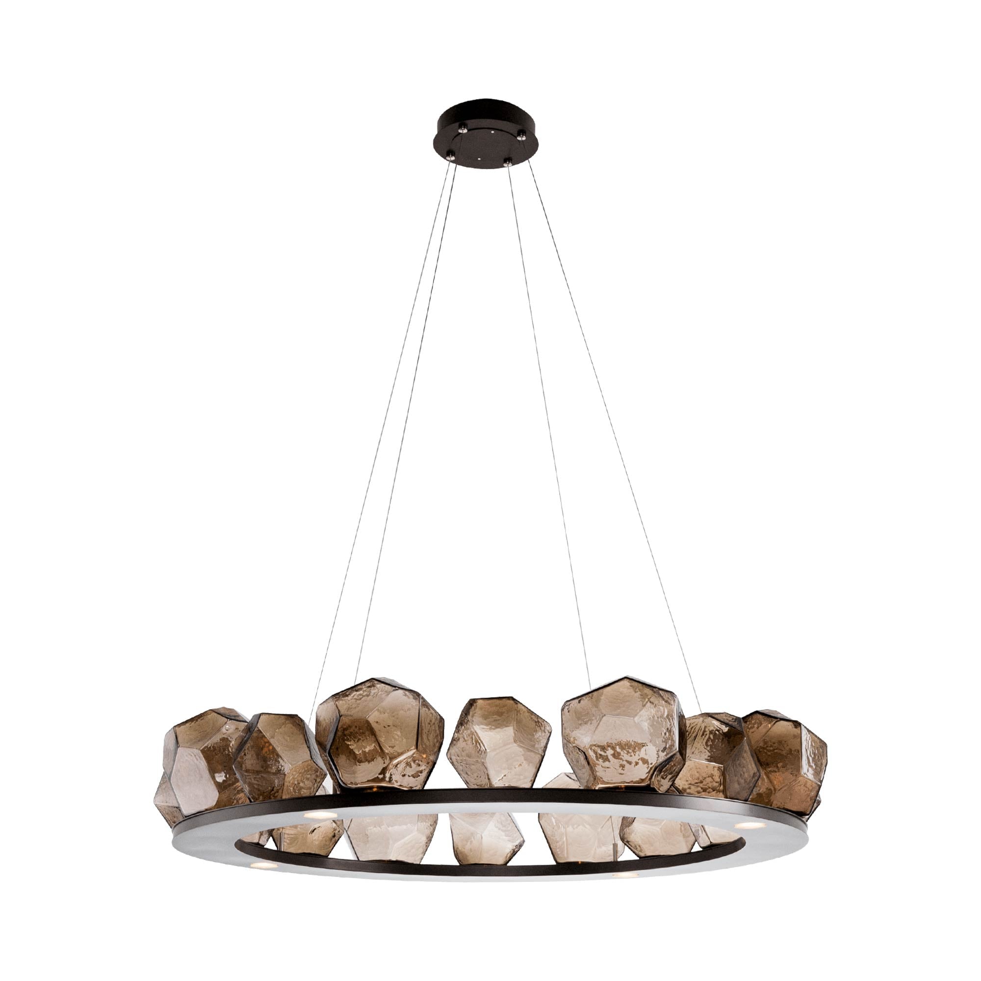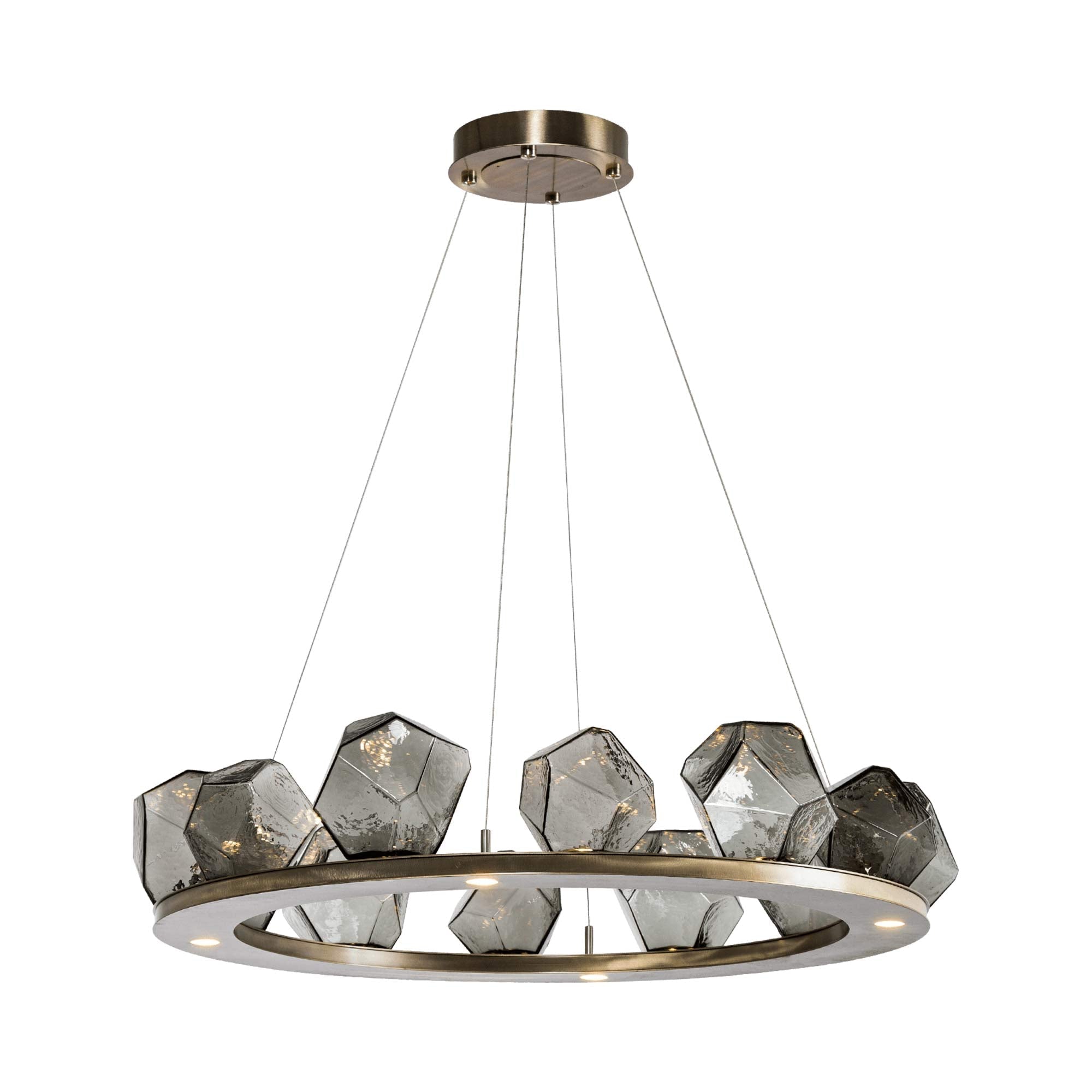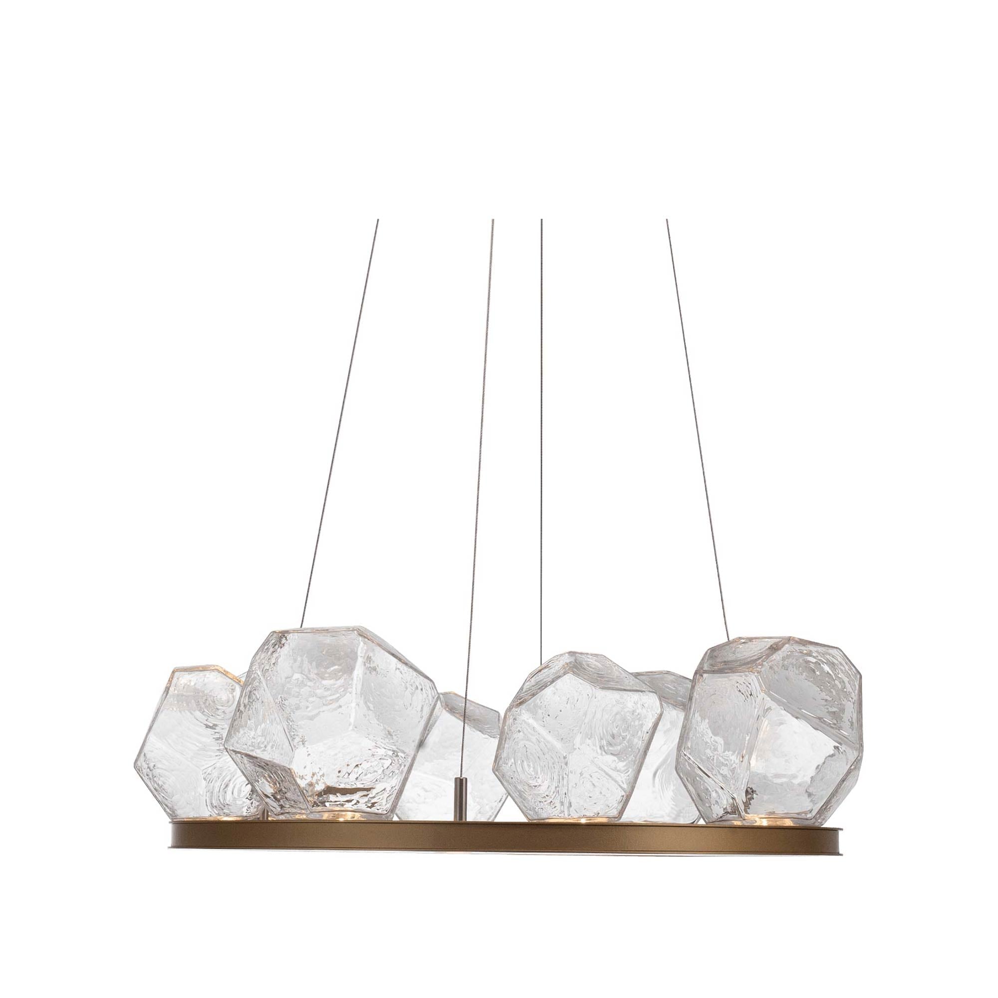 Cast sparkling light across a dining table or over a living room with the engaging, organic nature of the Gem Ring LED Chandelier from Hammerton Studio. Touched with downlights for added illumination, the chandelier is a gorgeous addition as it shows off gorgeous blown glass, gemstone-inspired shades that glitter in the light.