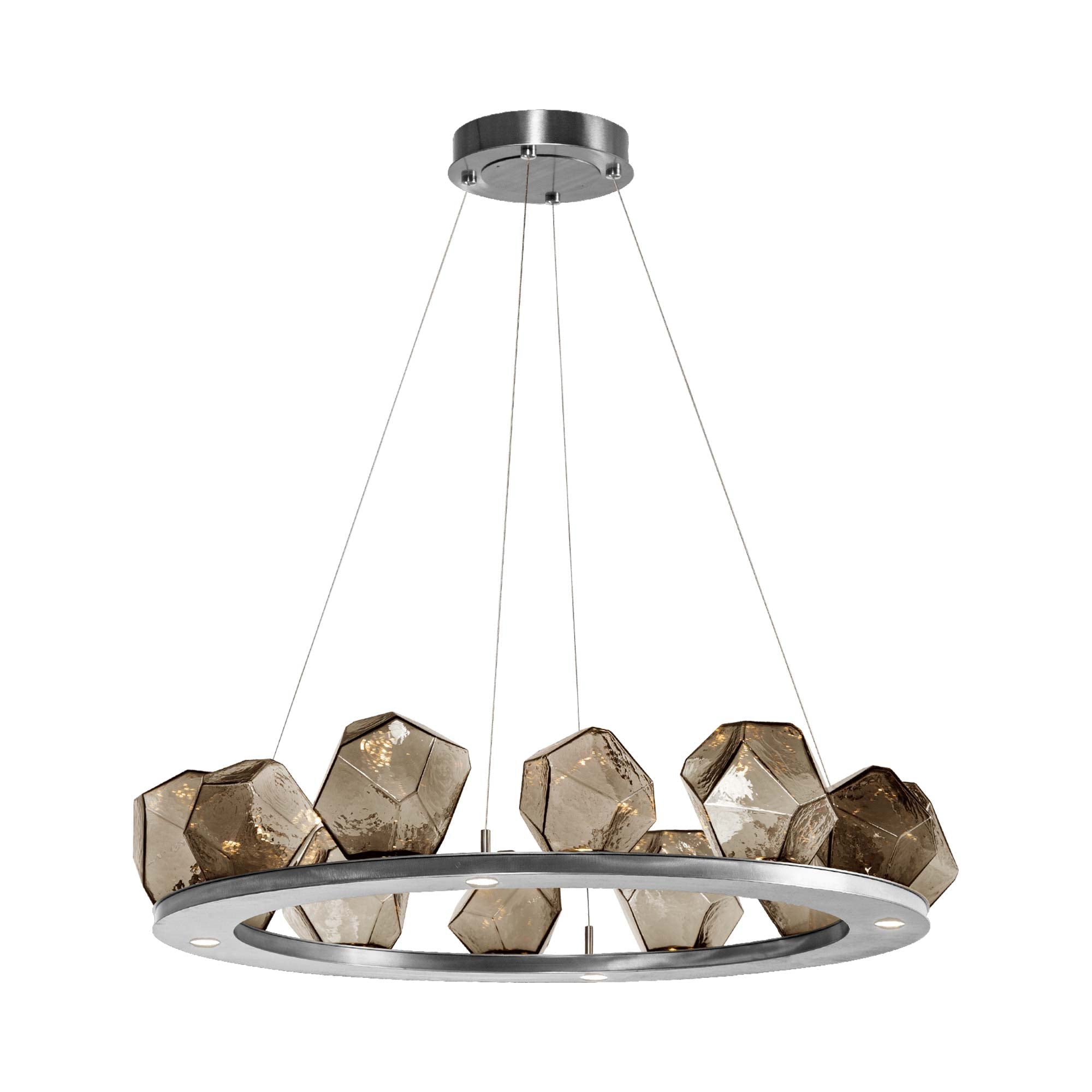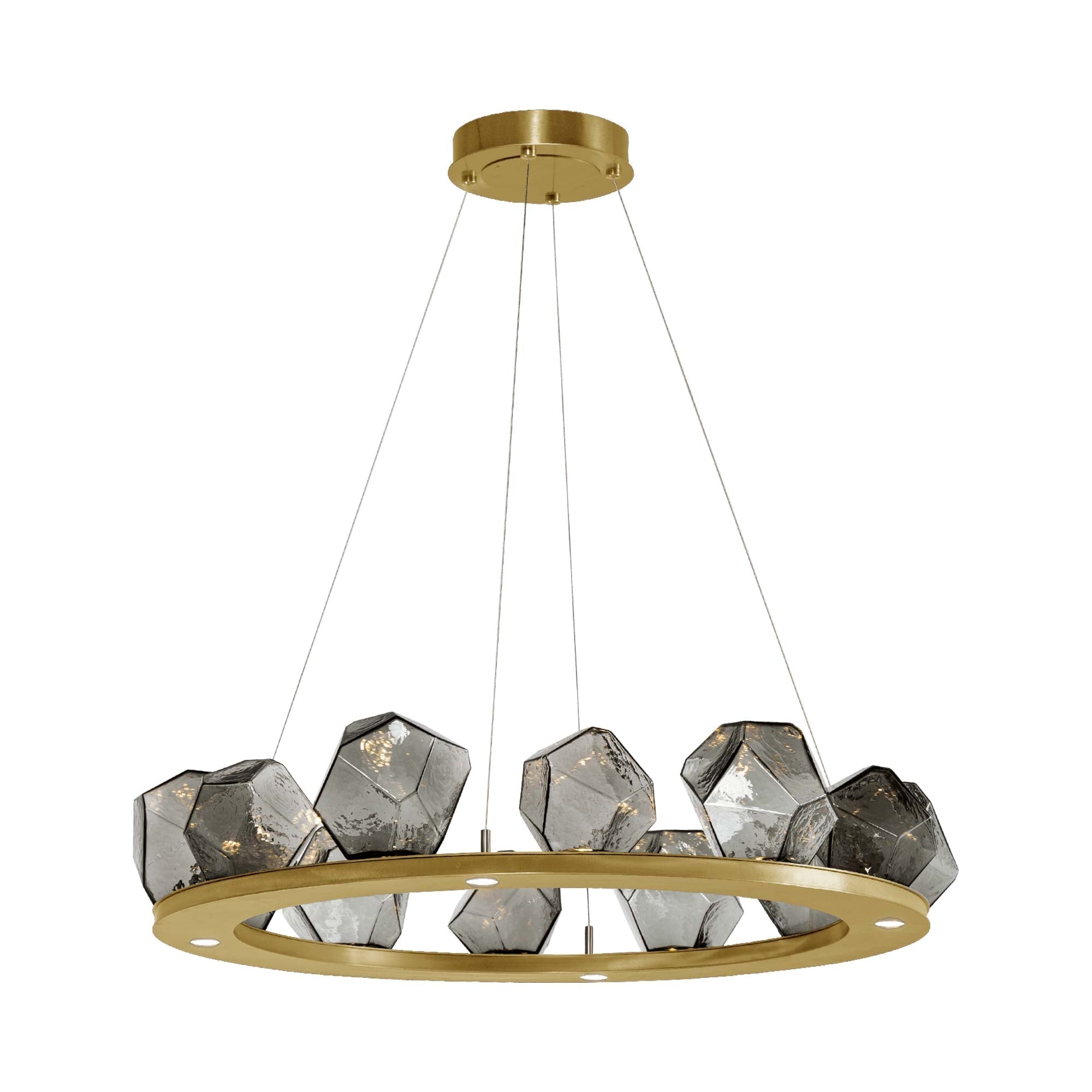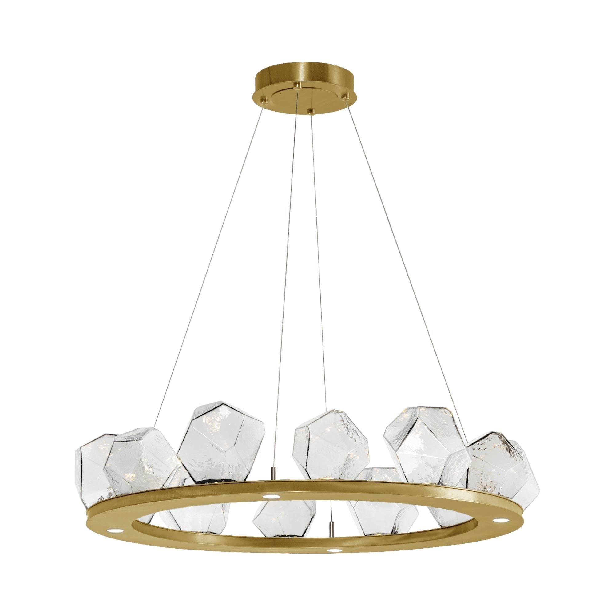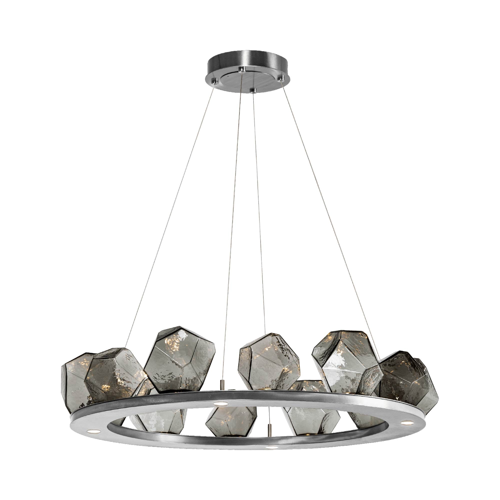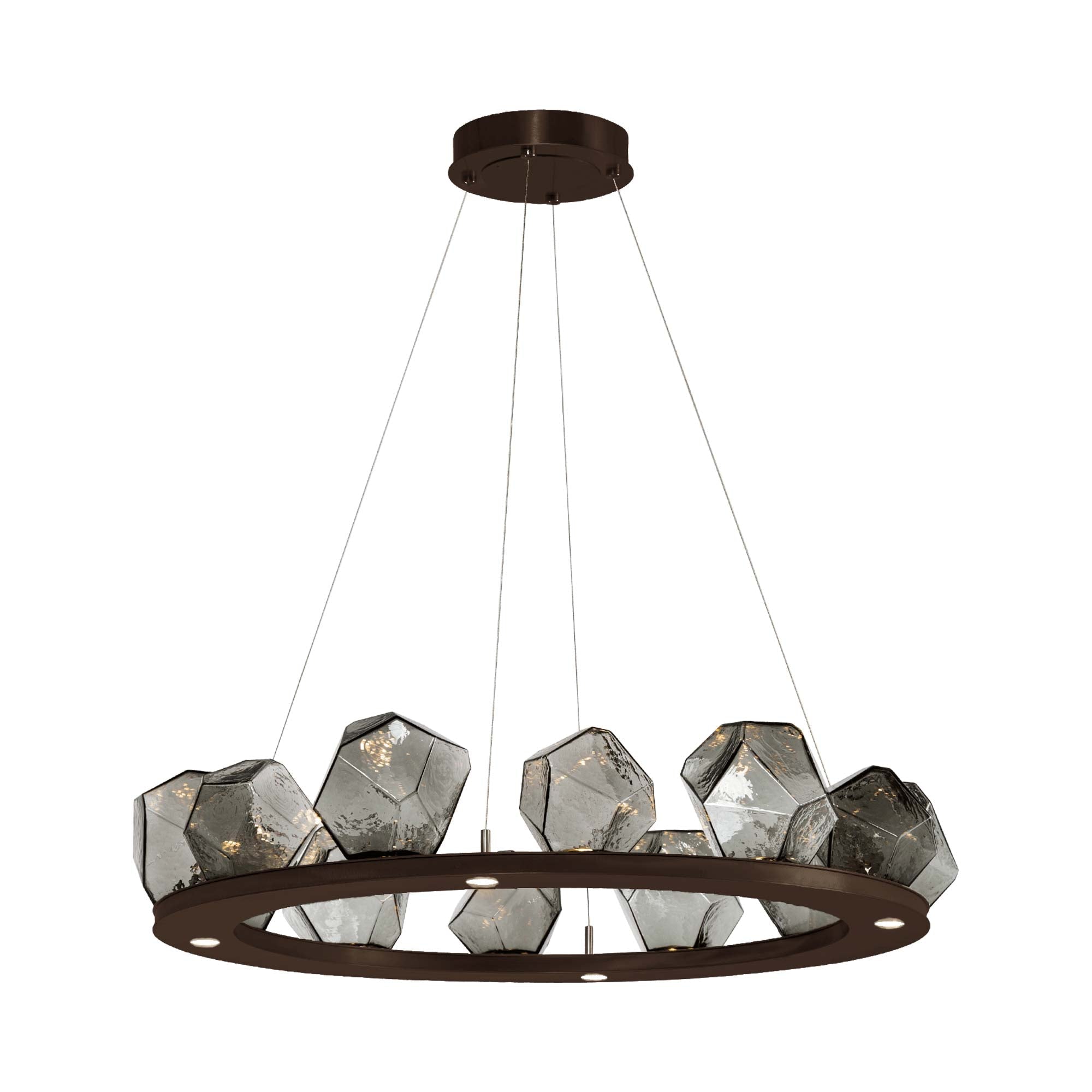 Cast sparkling light across a dining table or over a living room with the engaging, organic nature of the Gem Ring LED Chandelier from Hammerton Studio. Touched with downlights for added illumination, the chandelier is a gorgeous addition as it shows off gorgeous blown glass, gemstone-inspired shades that glitter in the light.
