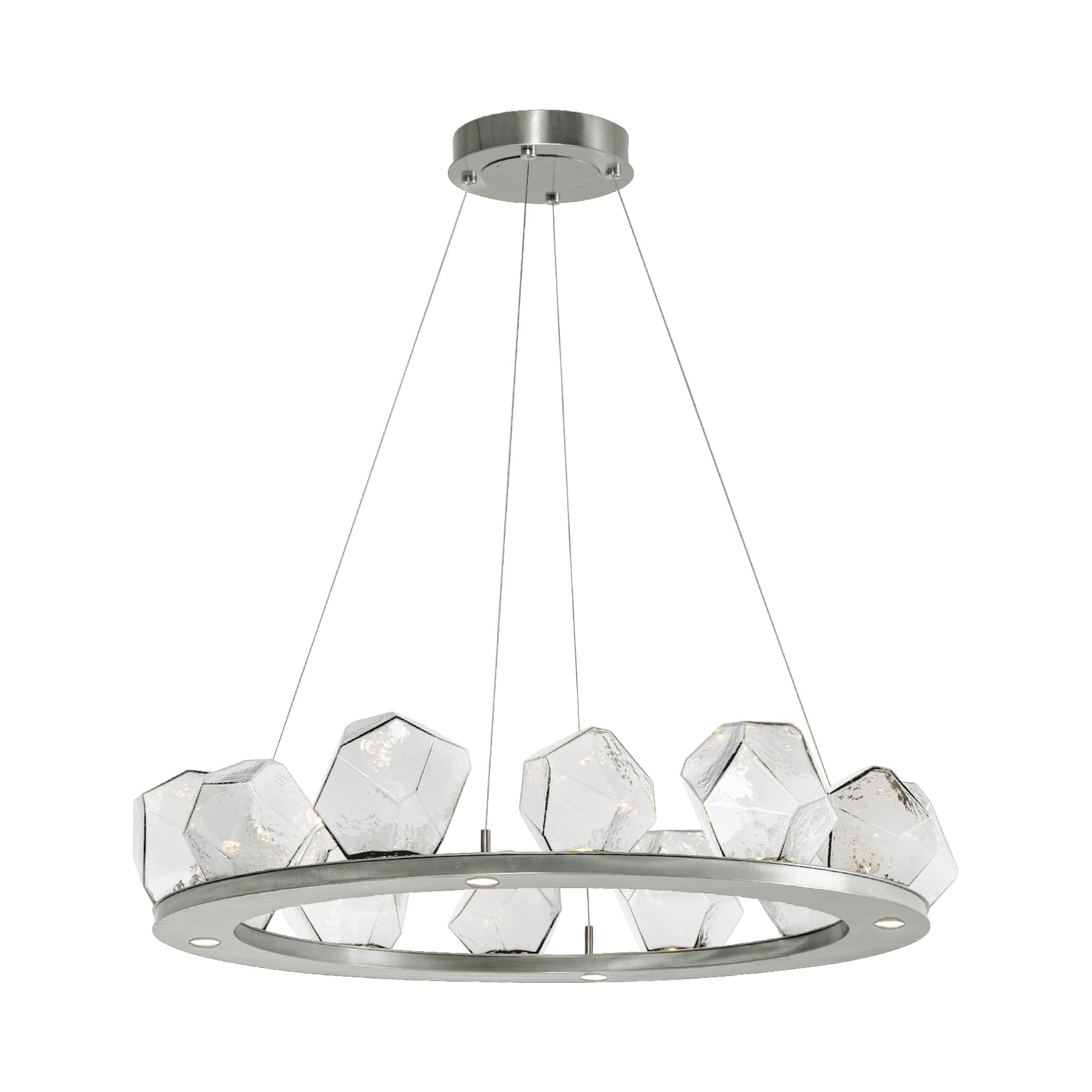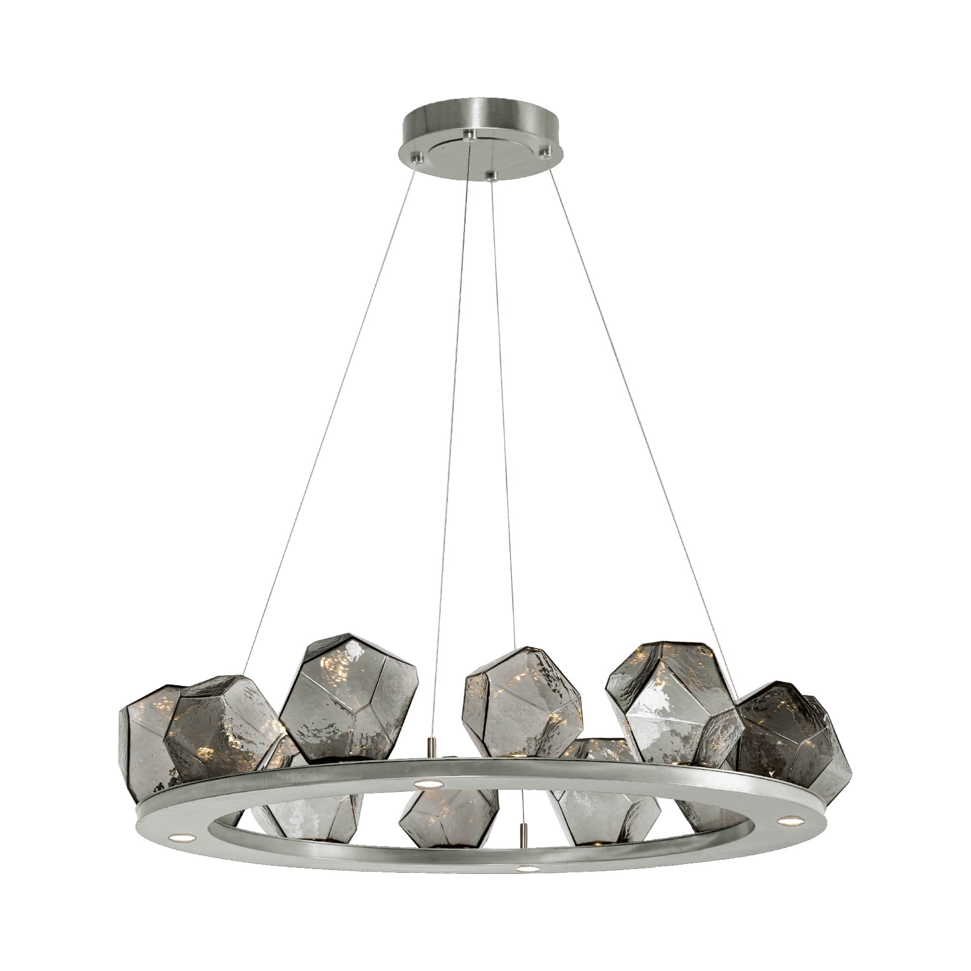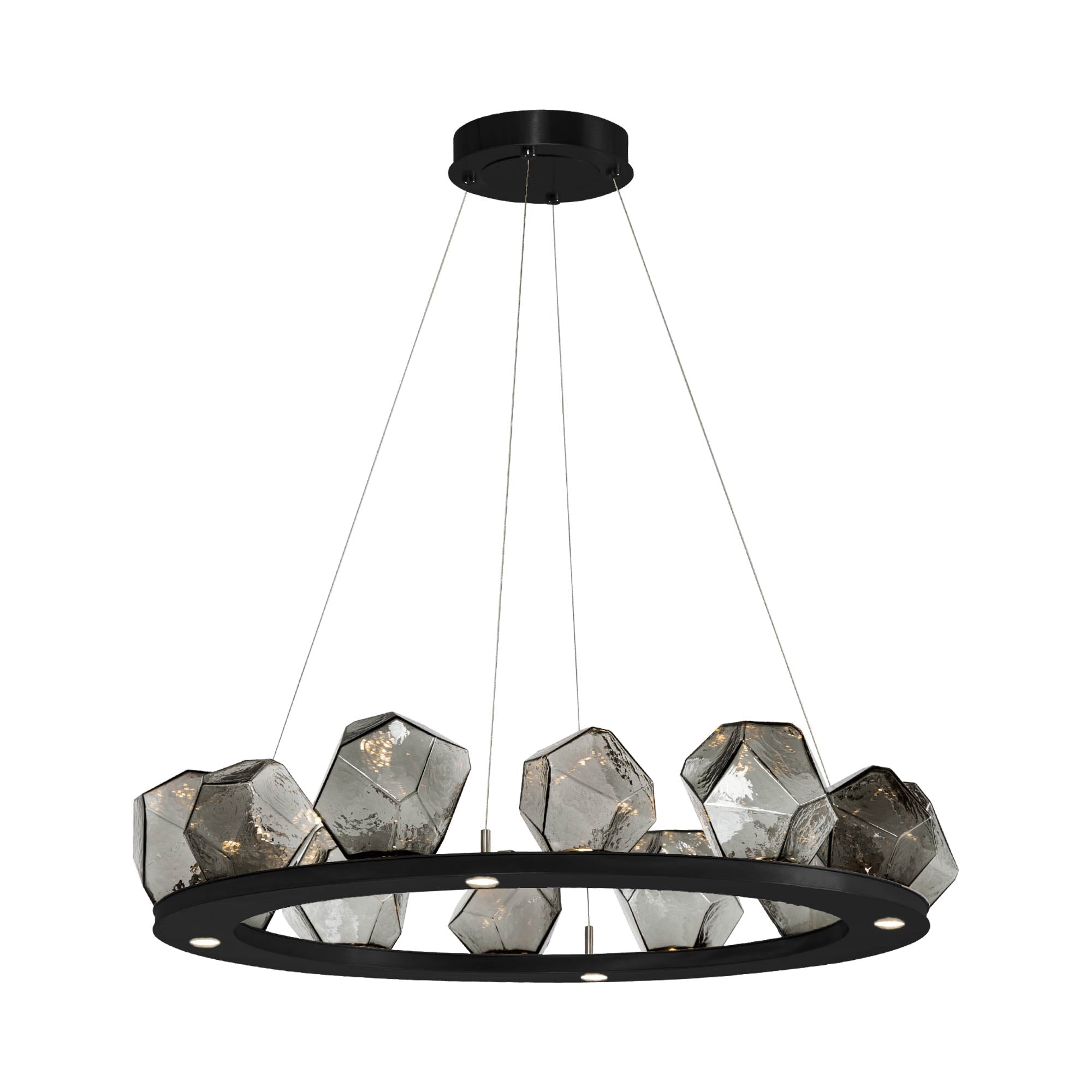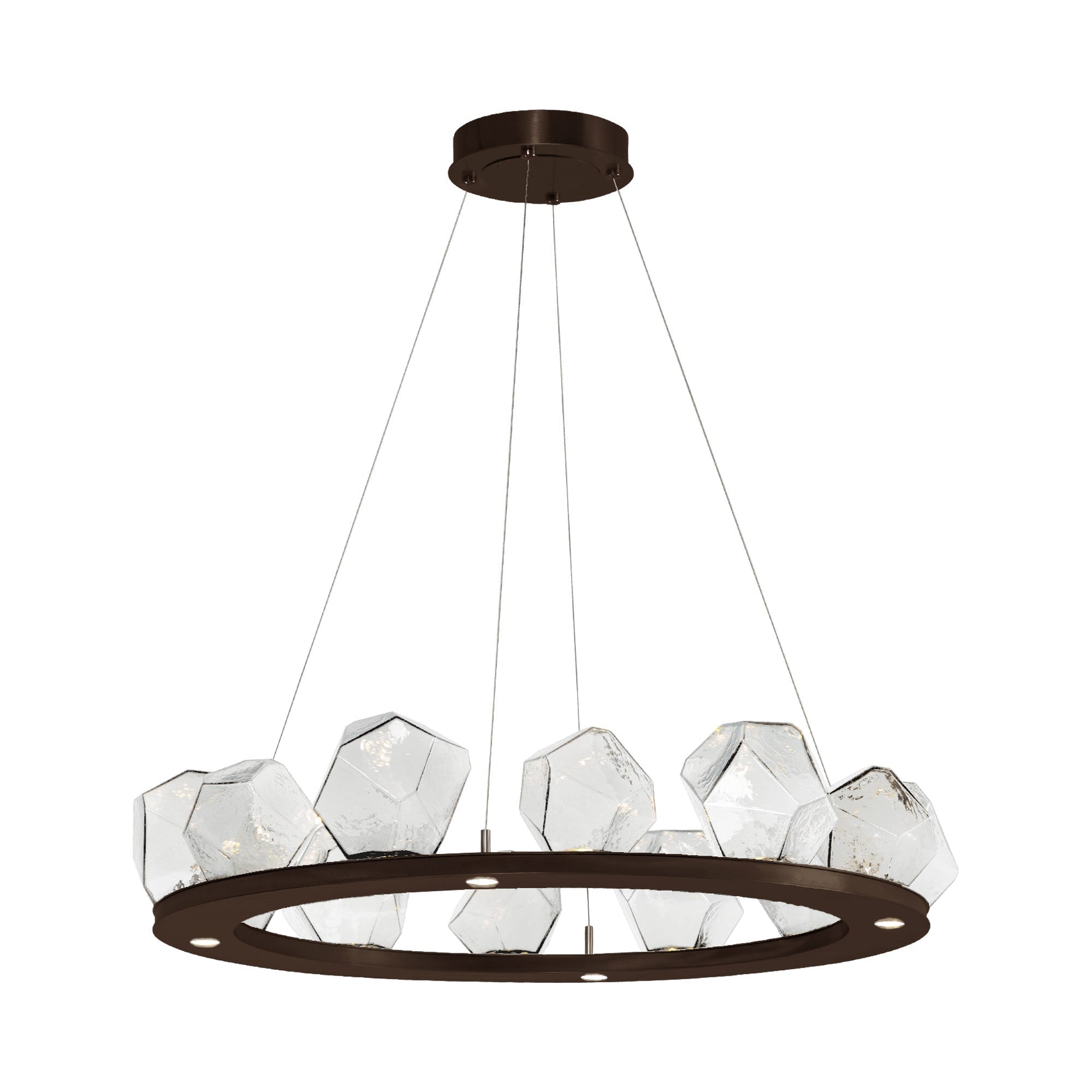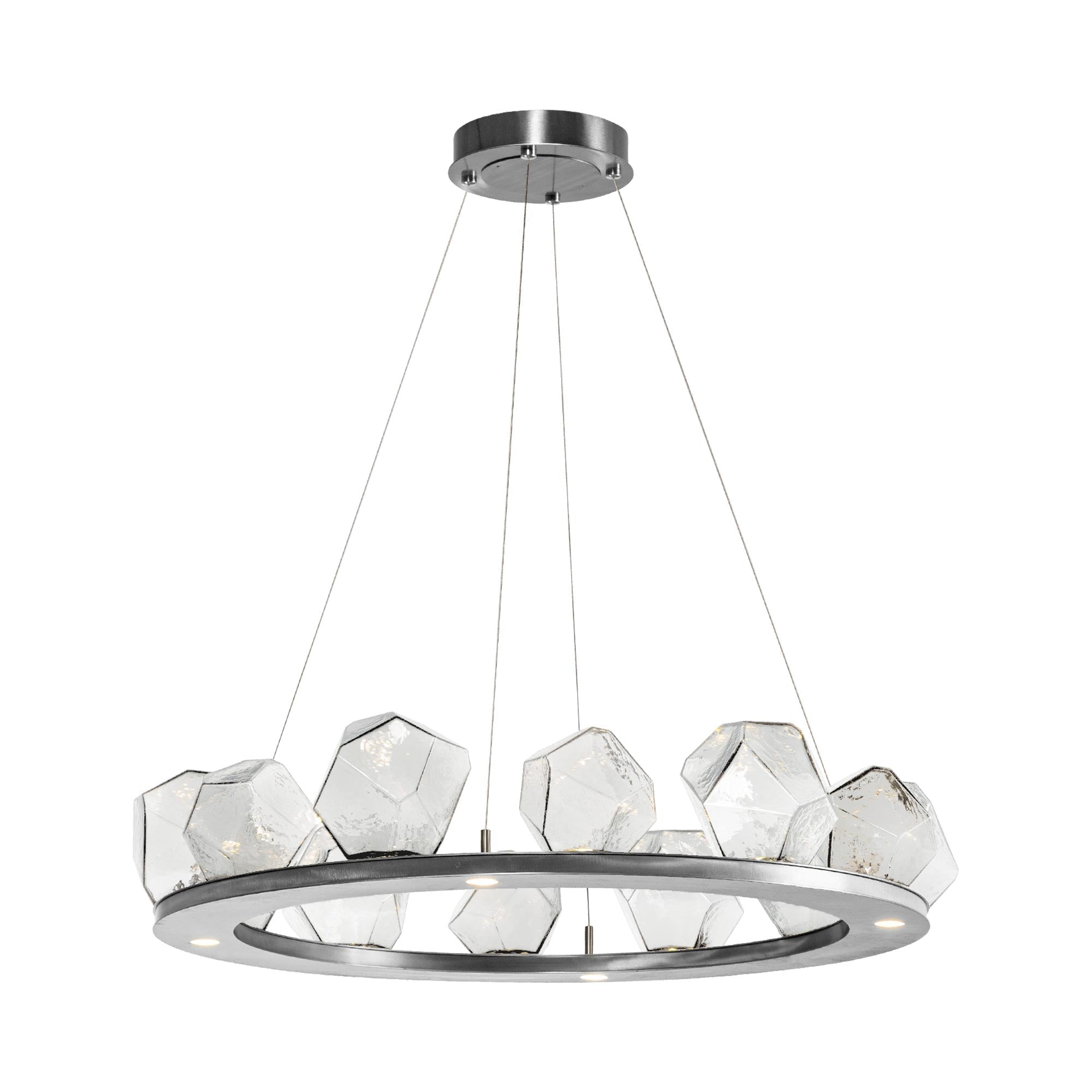 Cast sparkling light across a dining table or over a living room with the engaging, organic nature of the Gem Ring LED Chandelier from Hammerton Studio. Touched with downlights for added illumination, the chandelier is a gorgeous addition as it shows off gorgeous blown glass, gemstone-inspired shades that glitter in the light.