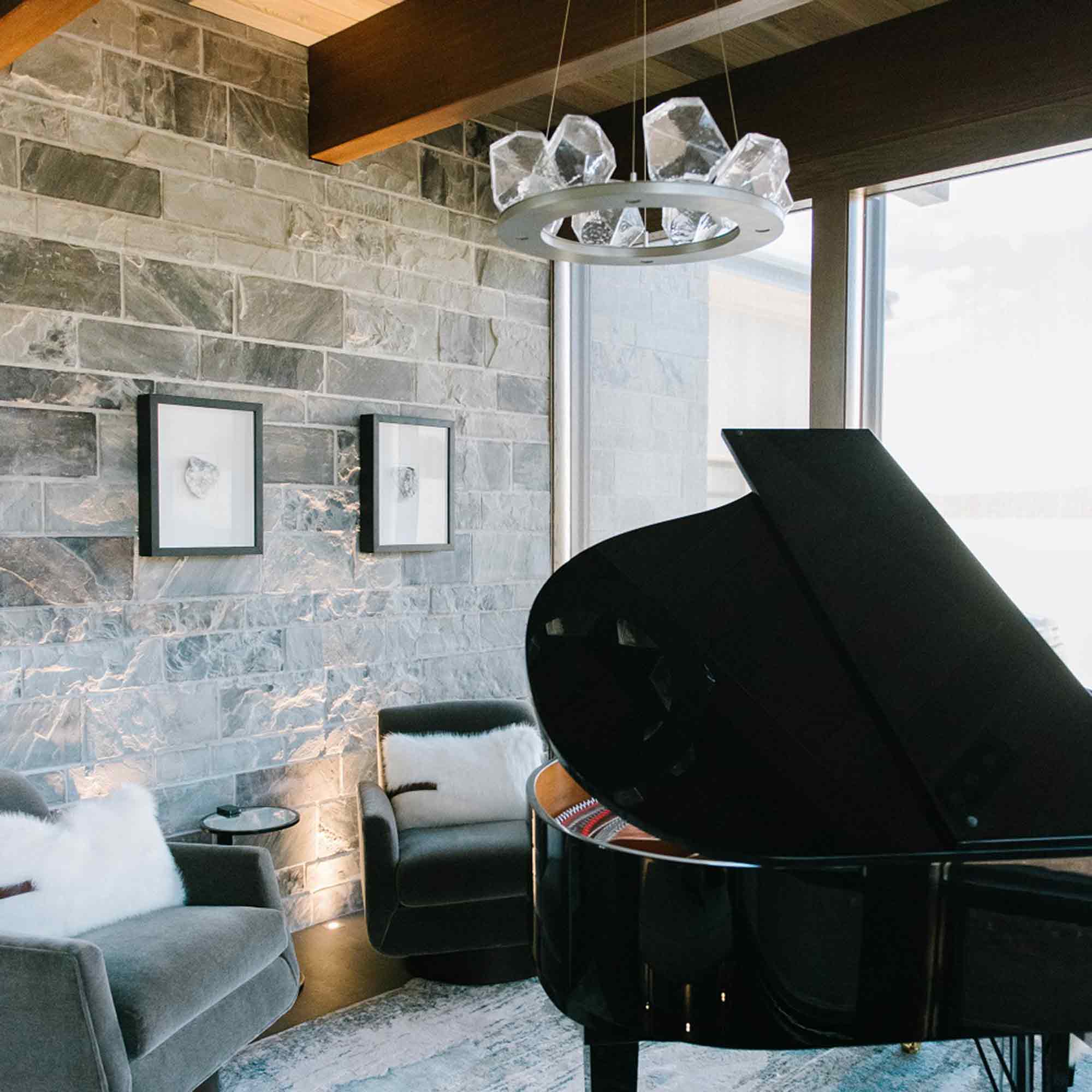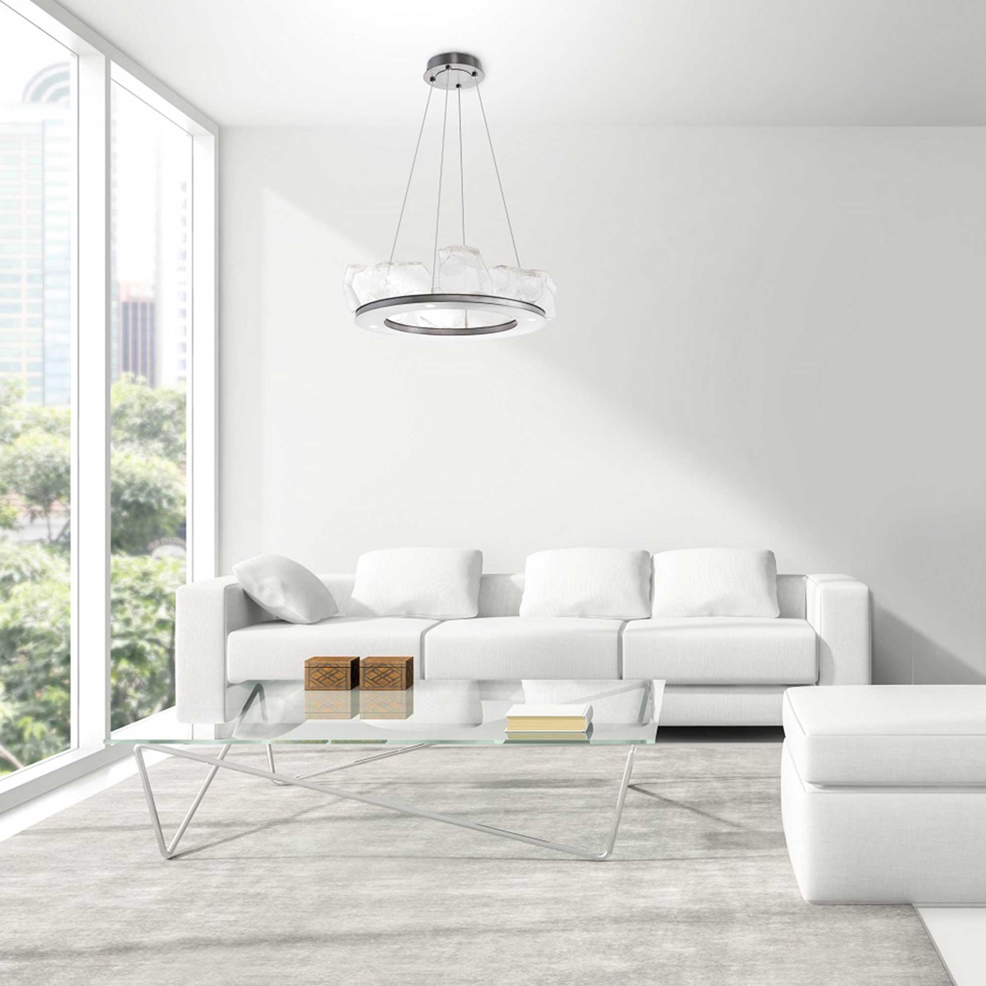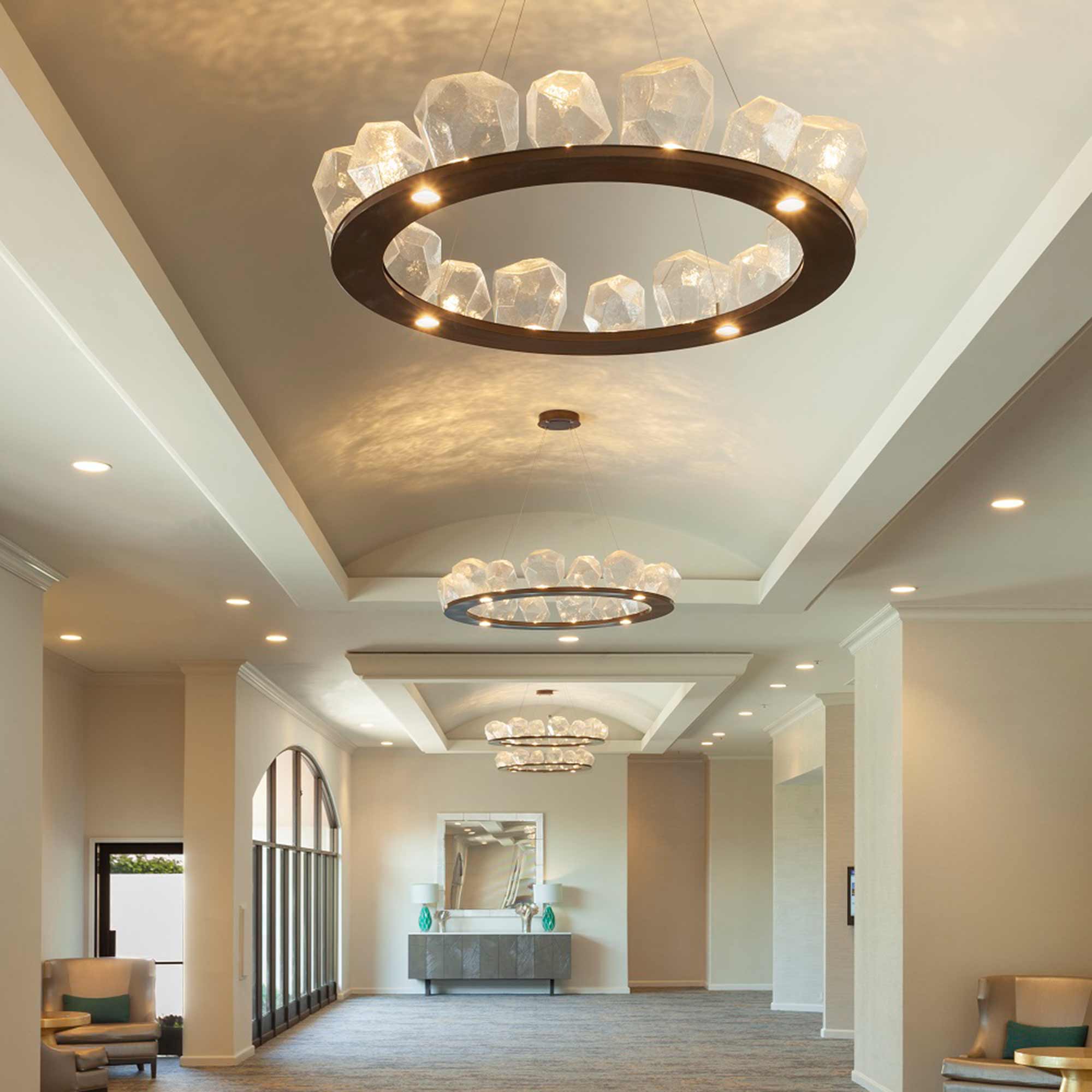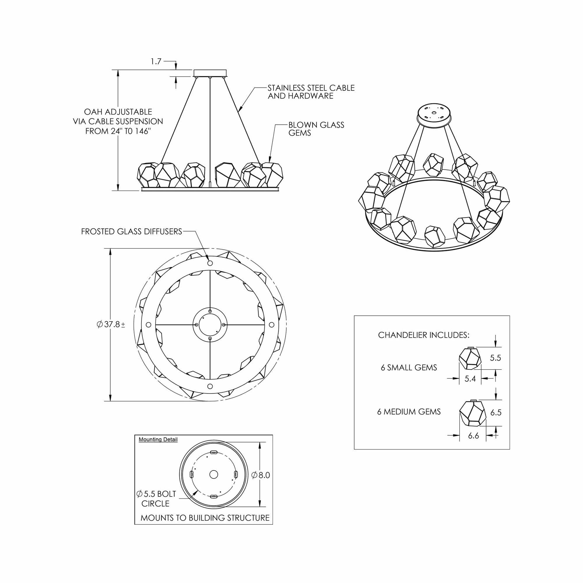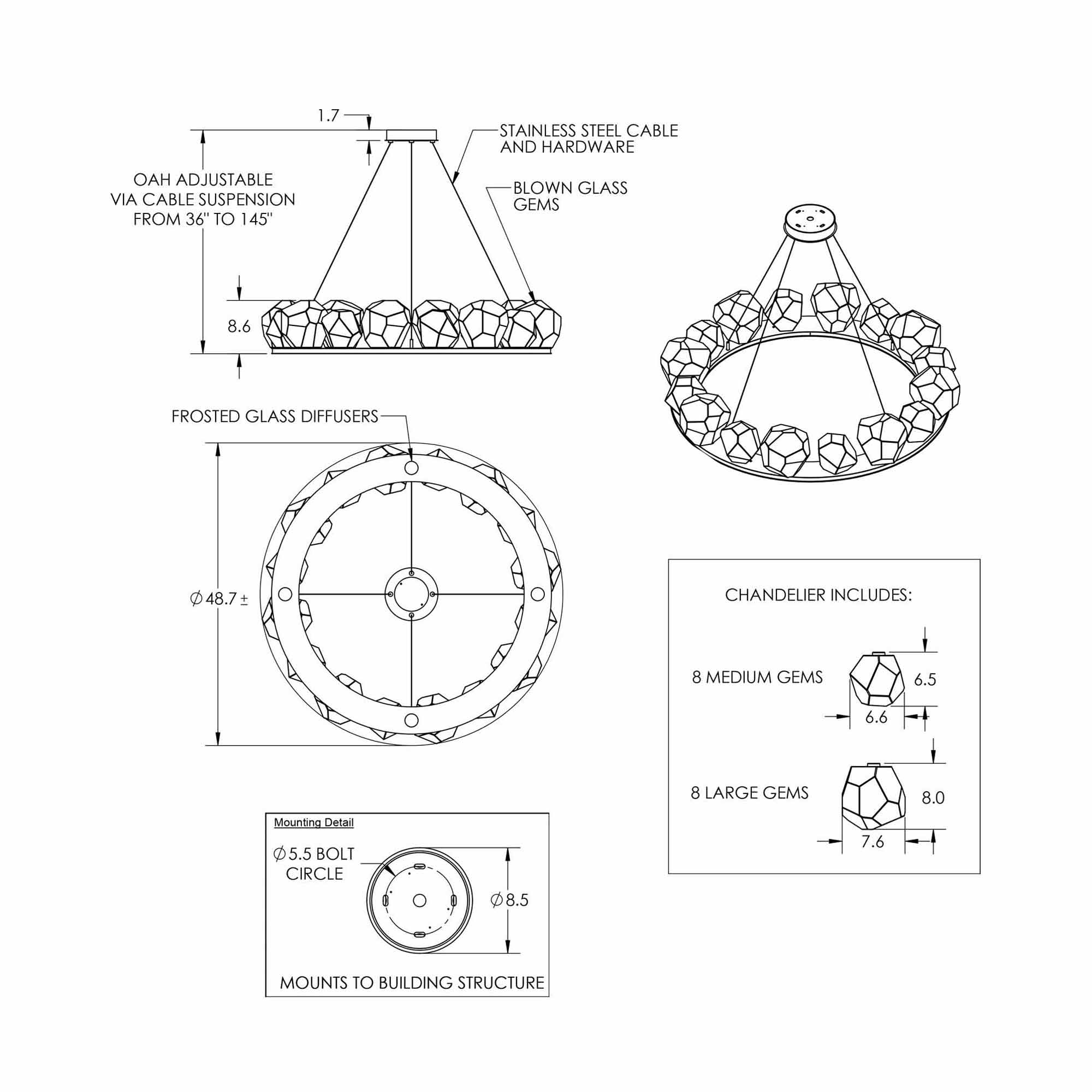 Cast sparkling light across a dining table or over a living room with the engaging, organic nature of the Gem Ring LED Chandelier from Hammerton Studio. Touched with downlights for added illumination, the chandelier is a gorgeous addition as it shows off gorgeous blown glass, gemstone-inspired shades that glitter in the light.