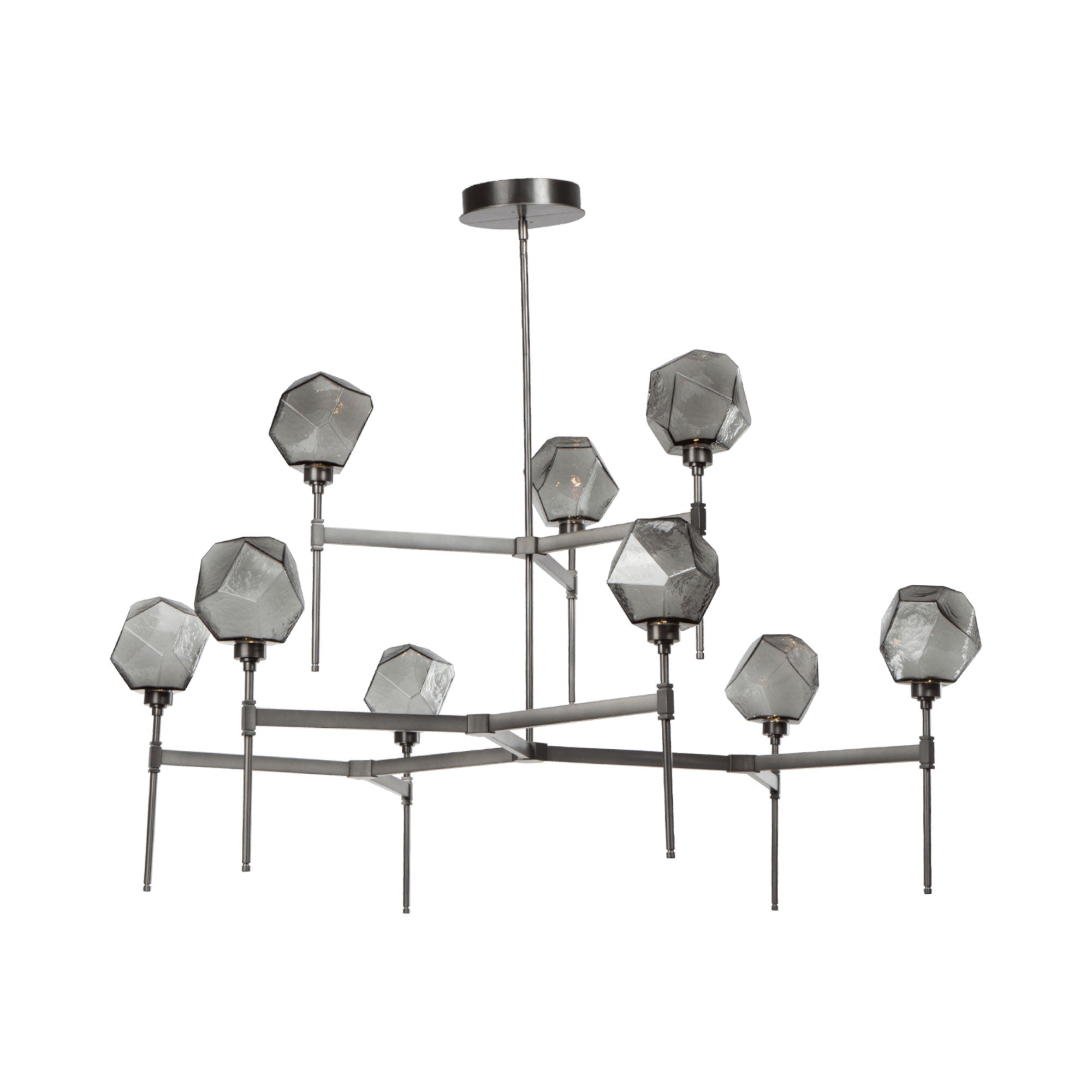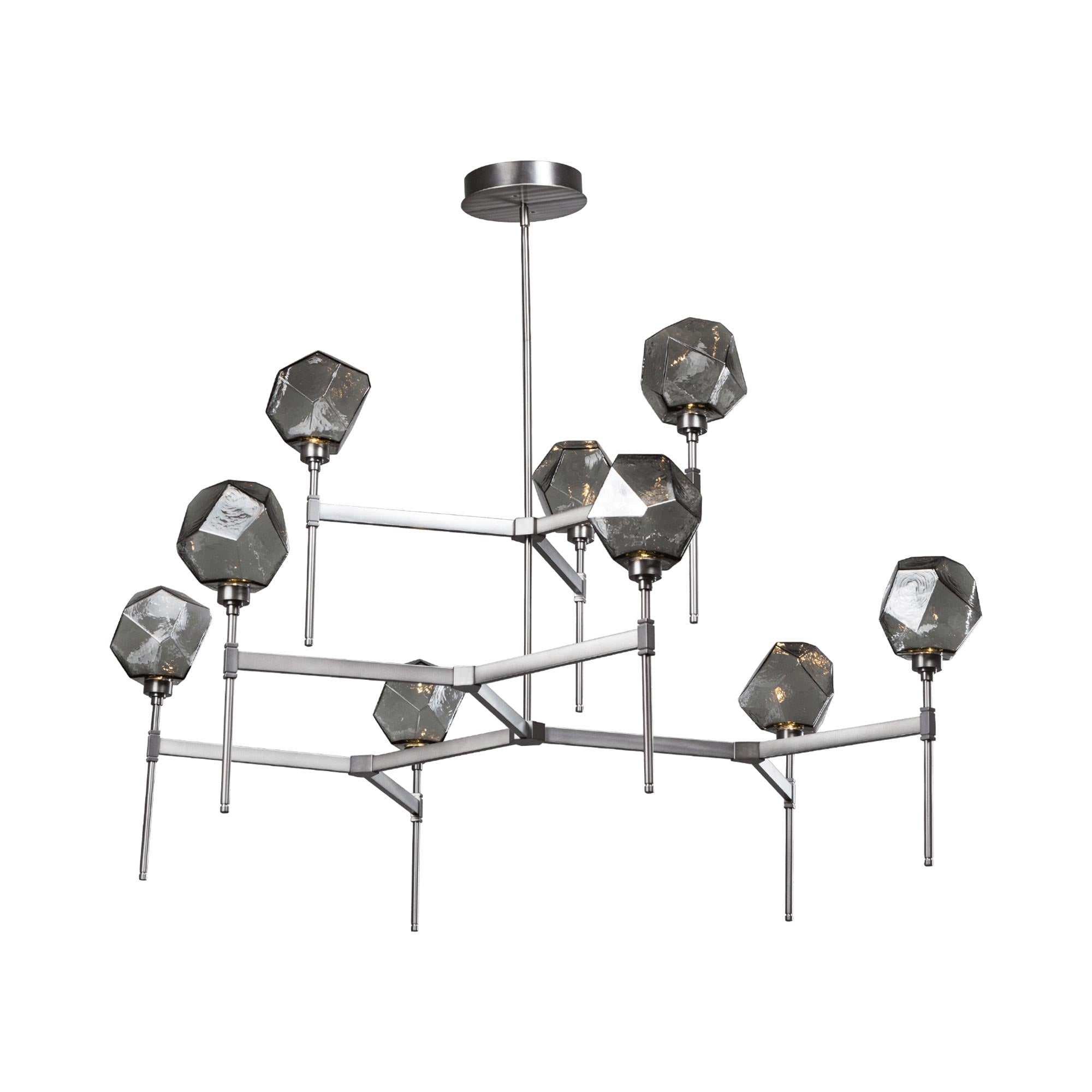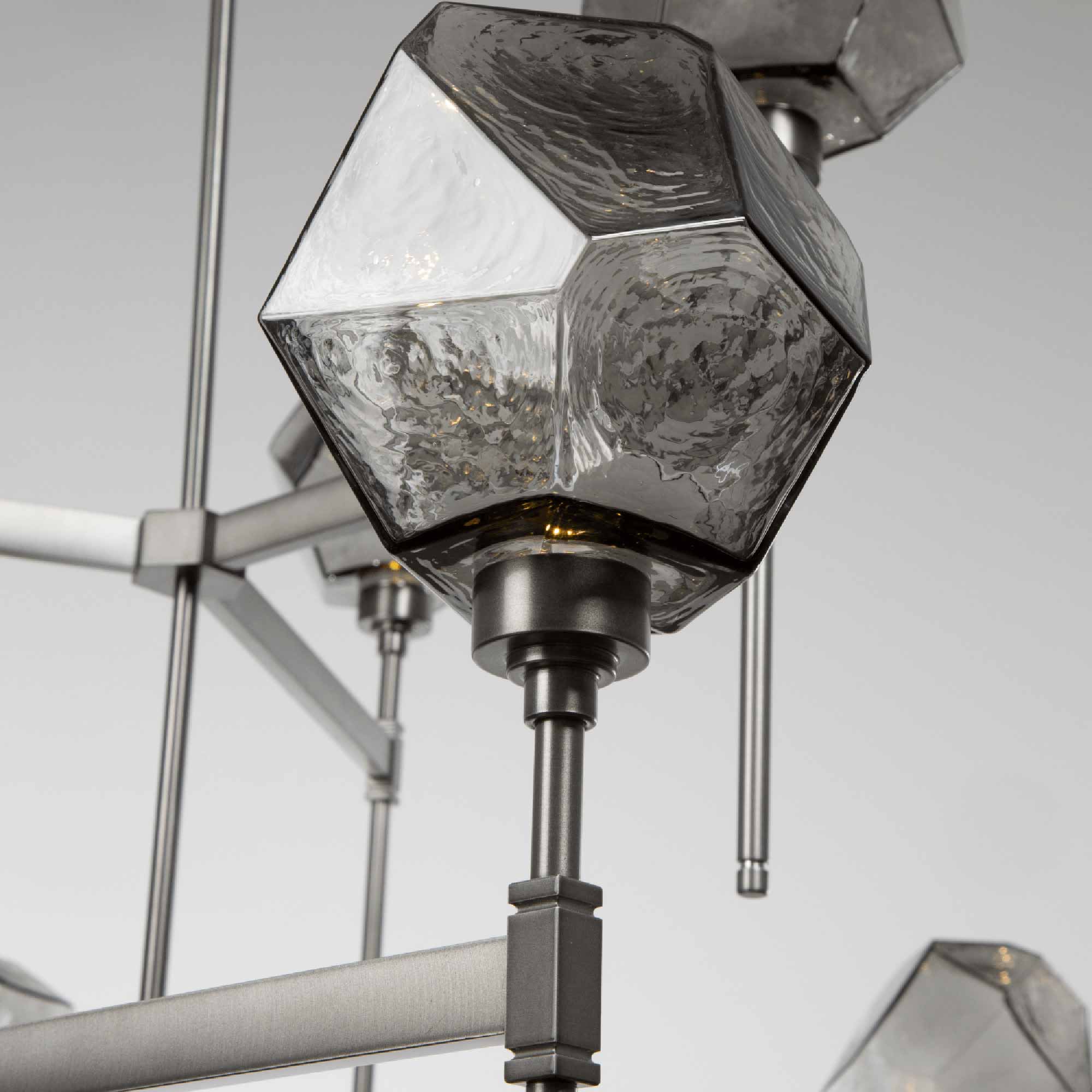 Geometrically inclined in every aspect of its design, the Gem Round Belvedere LED Chandelier from Hammerton Studio is a true showstopper. Slim posts punctuate glittering blown glass shades inspired by gorgeous gemstones for an organic but organized look.