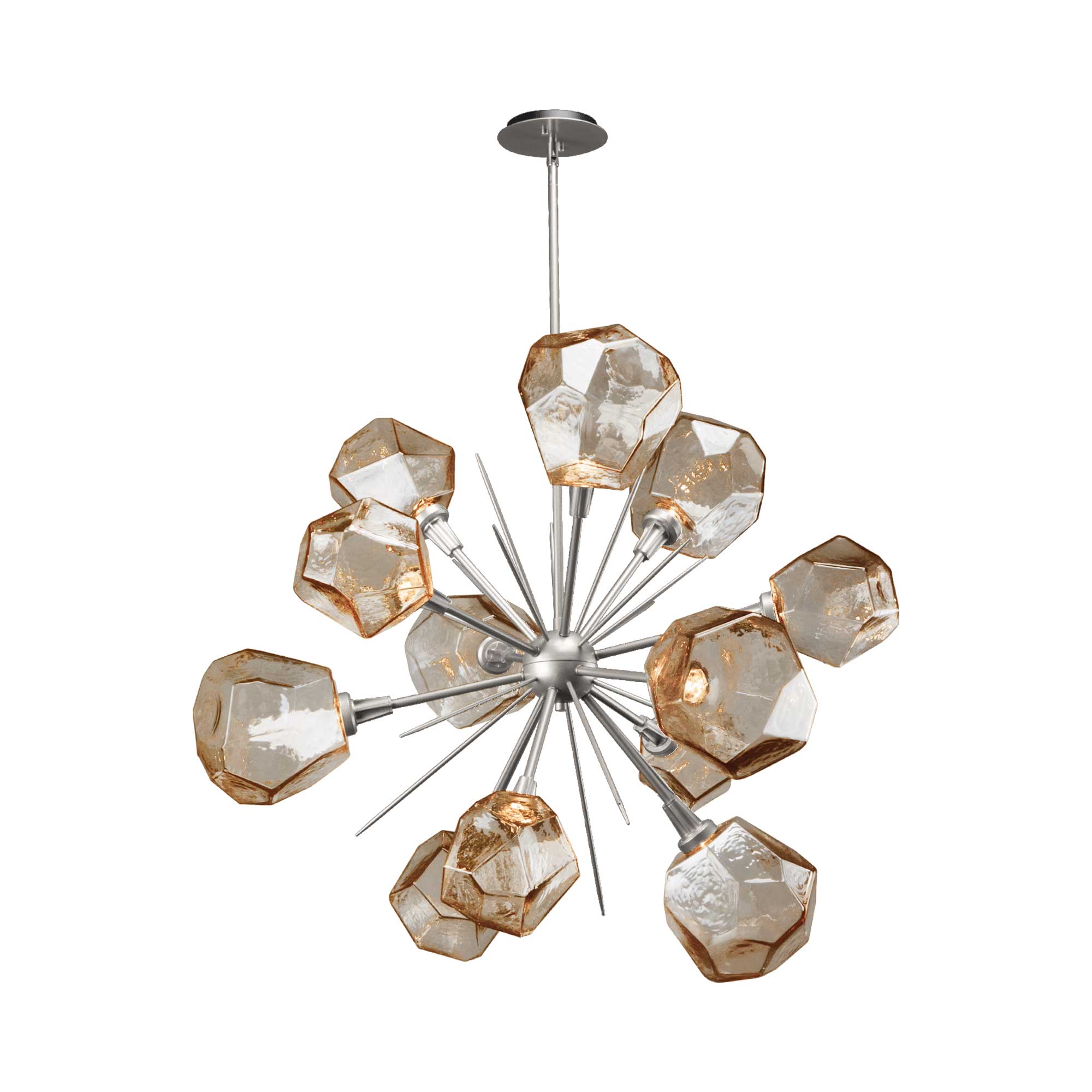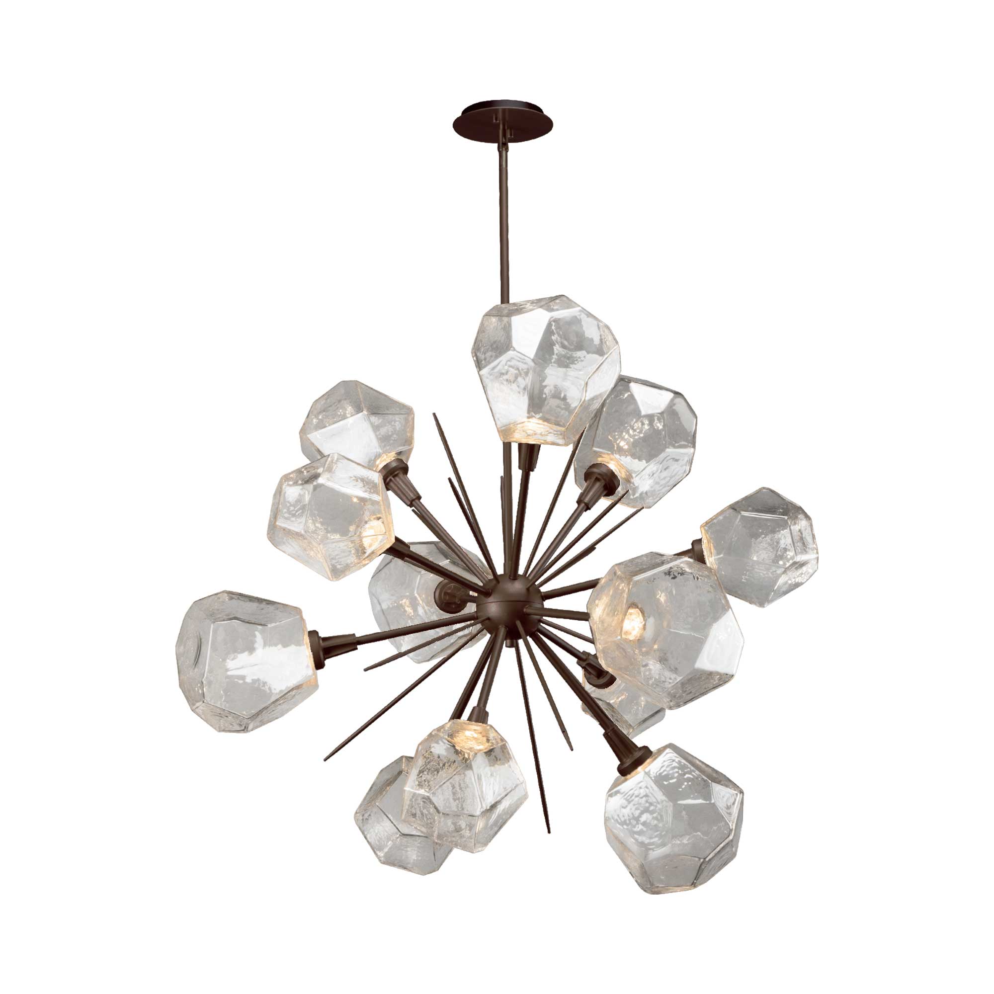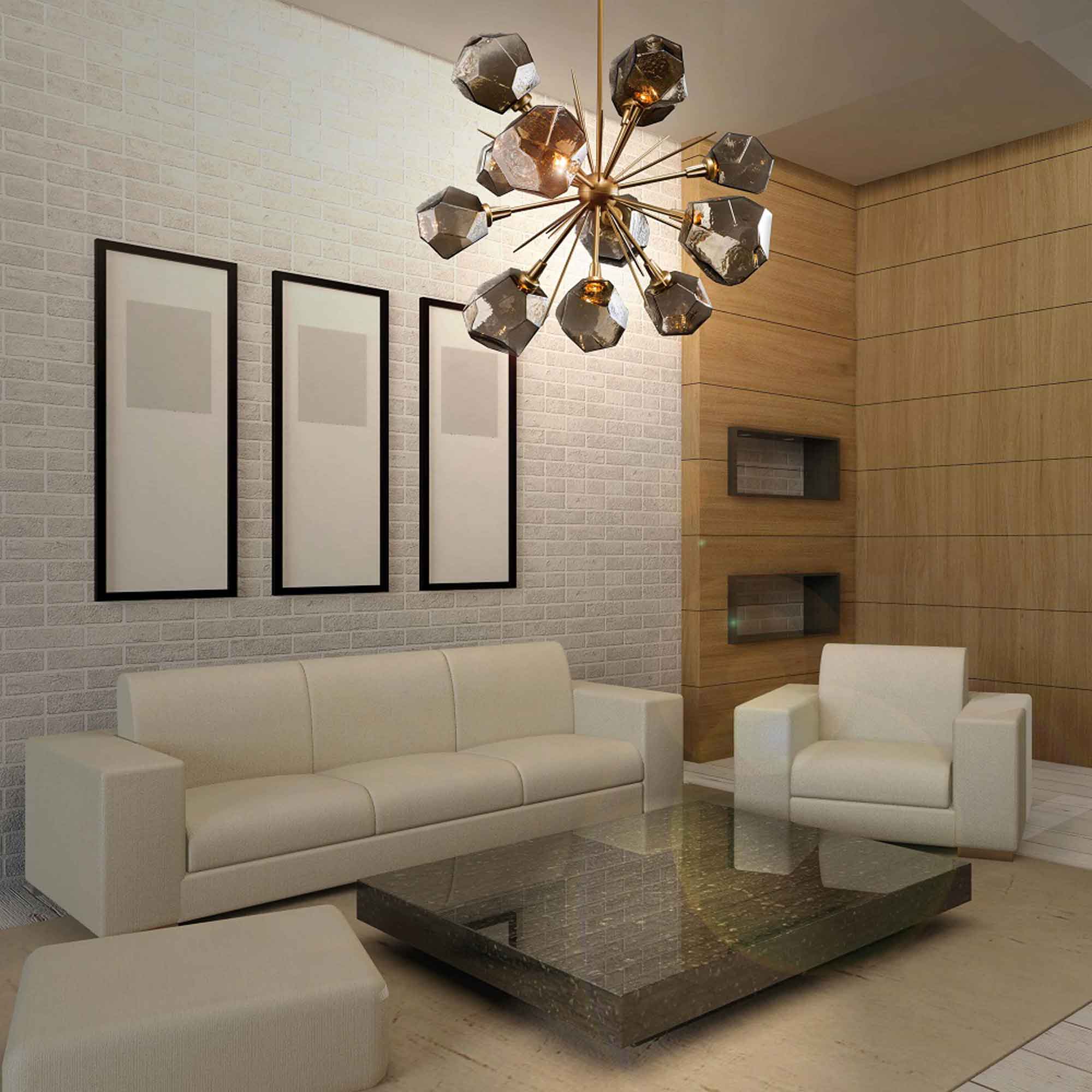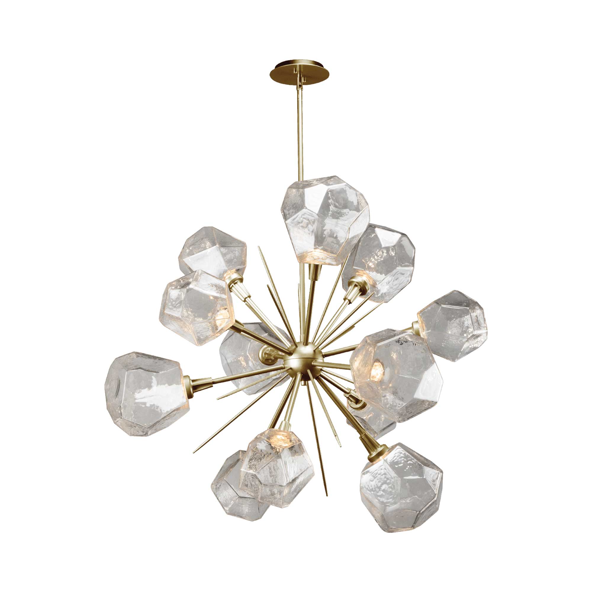 Imbued with mid-century character and sparkling elegance, the Gem Starburst LED Chandelier from Hammerton Studio is the perfect update over a living or dining room. Its Sputnik-inspired silhouette is interspersed with metal shards that further call attention to gemstone-inspired blown glass that glitters when illuminated.