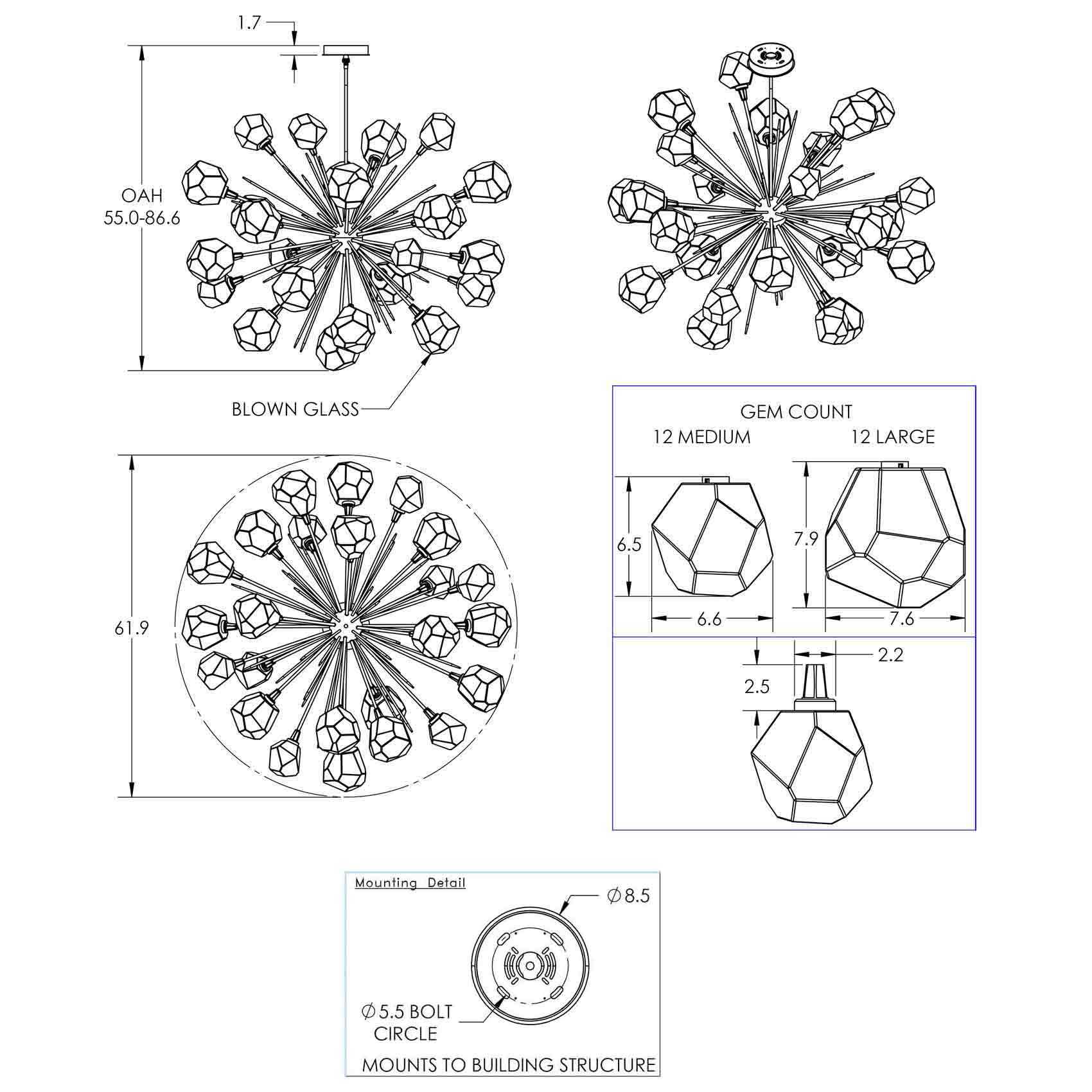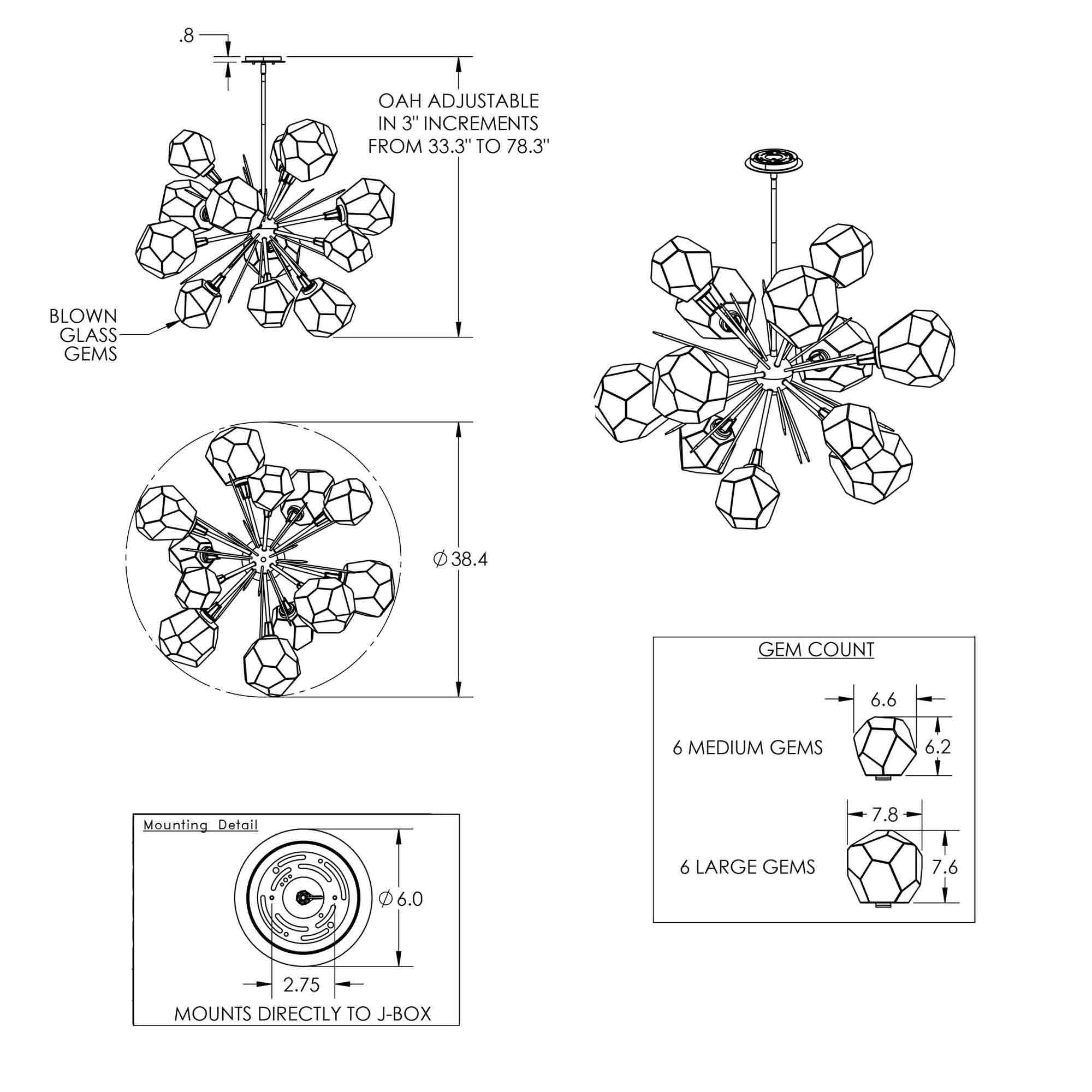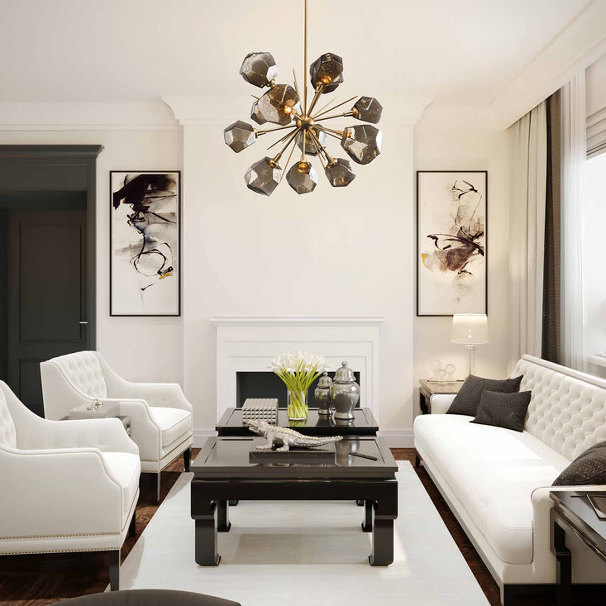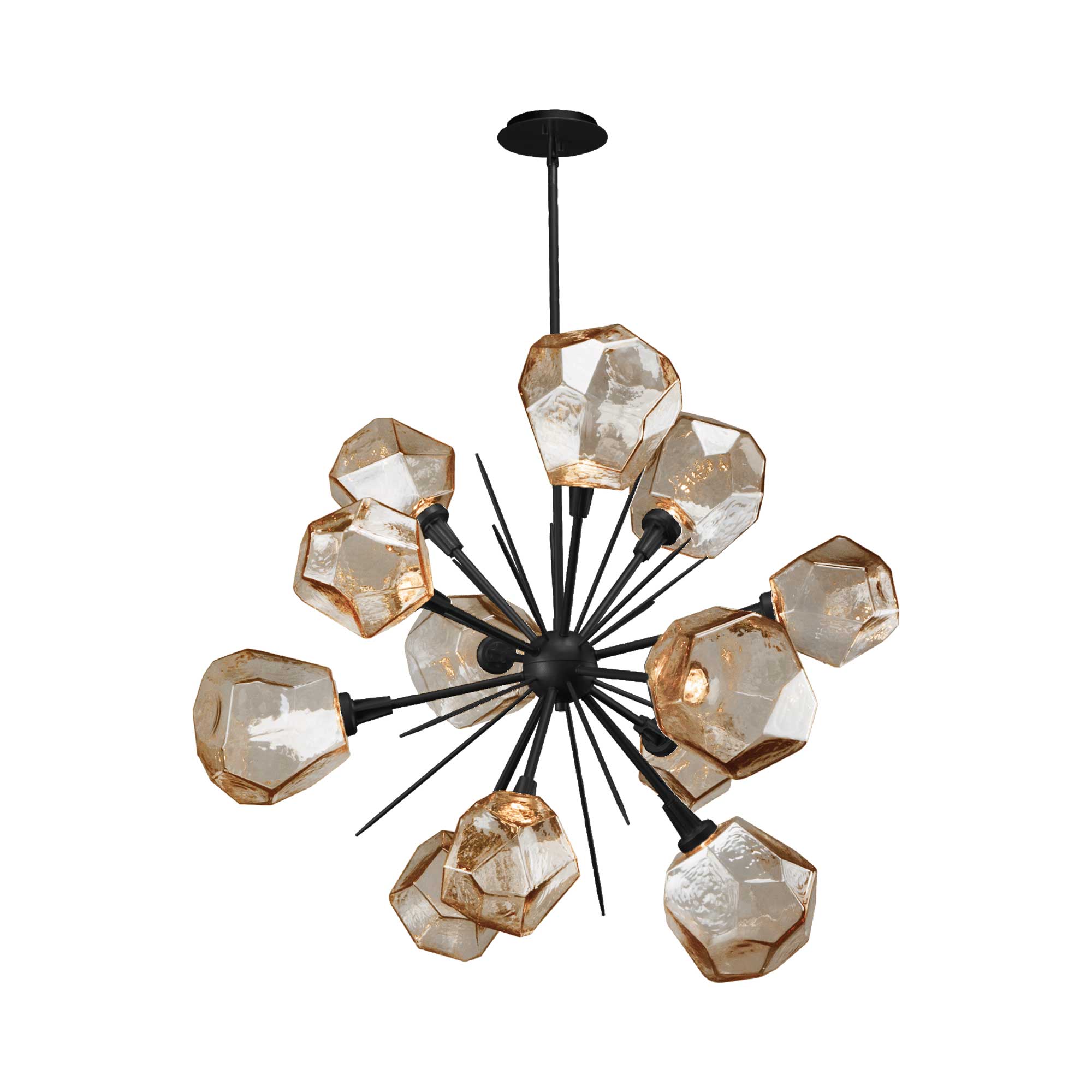 Imbued with mid-century character and sparkling elegance, the Gem Starburst LED Chandelier from Hammerton Studio is the perfect update over a living or dining room. Its Sputnik-inspired silhouette is interspersed with metal shards that further call attention to gemstone-inspired blown glass that glitters when illuminated.