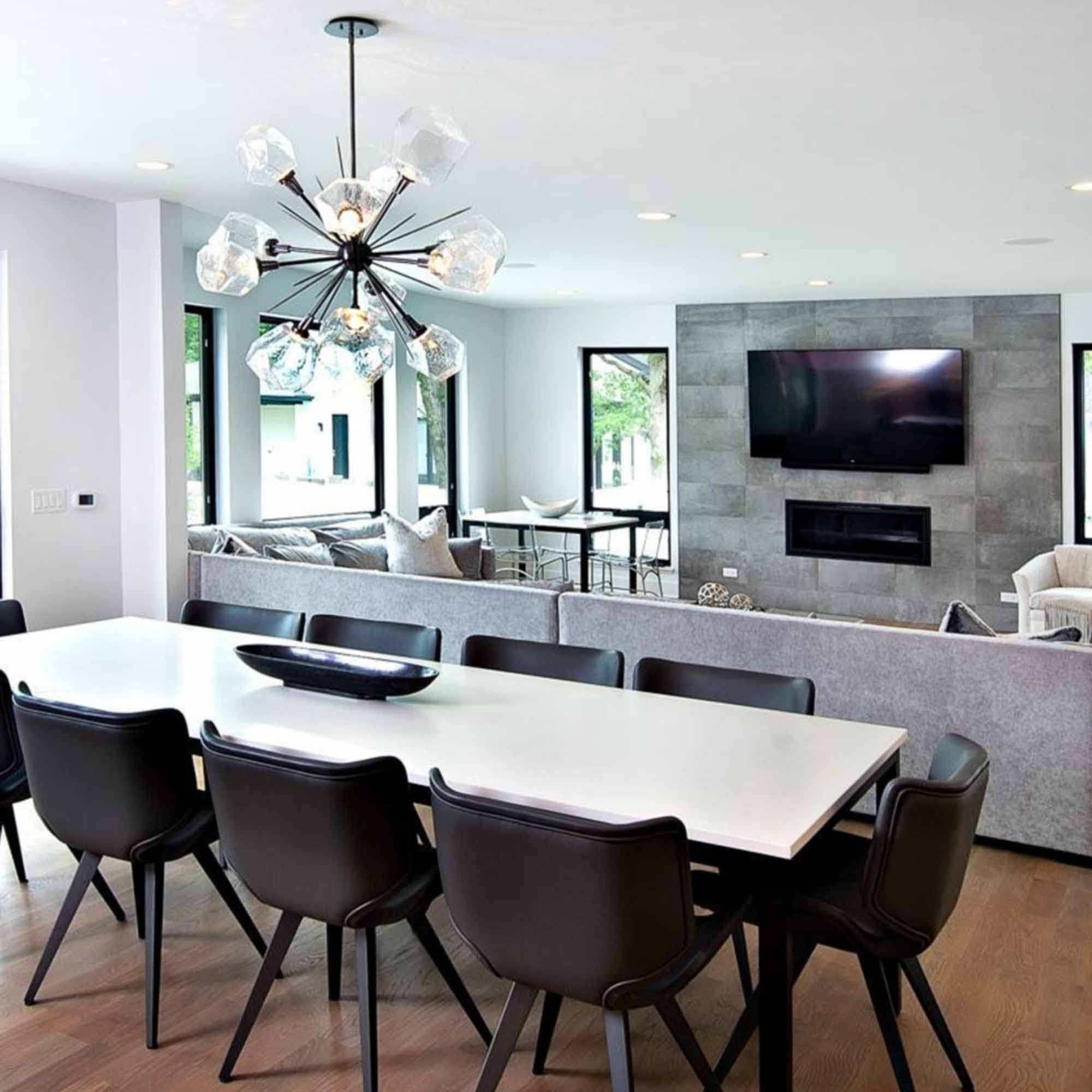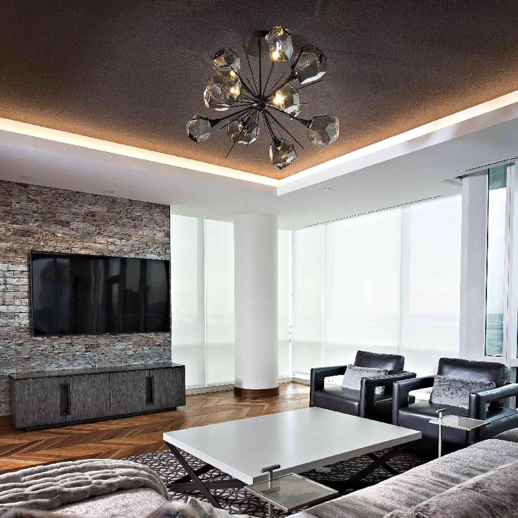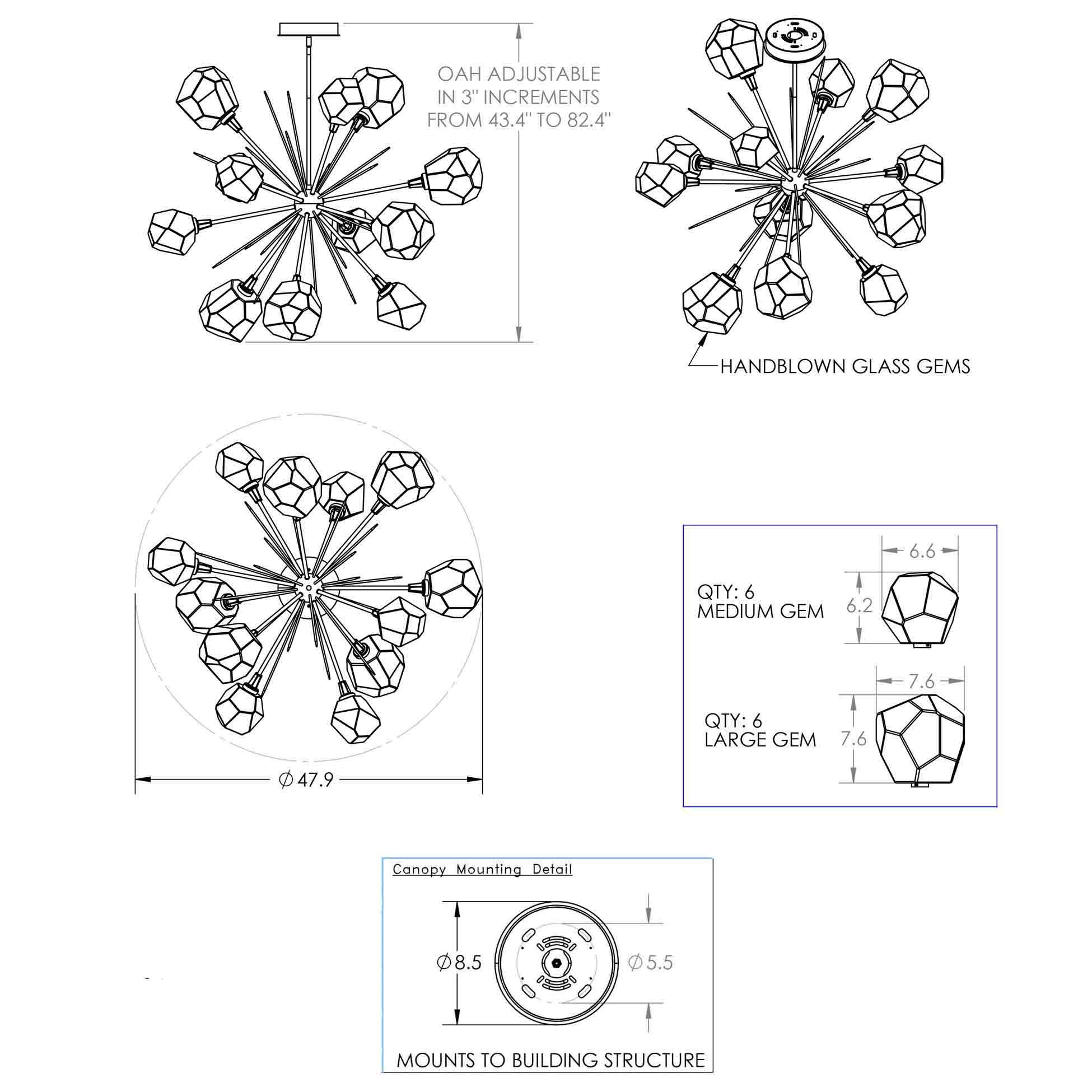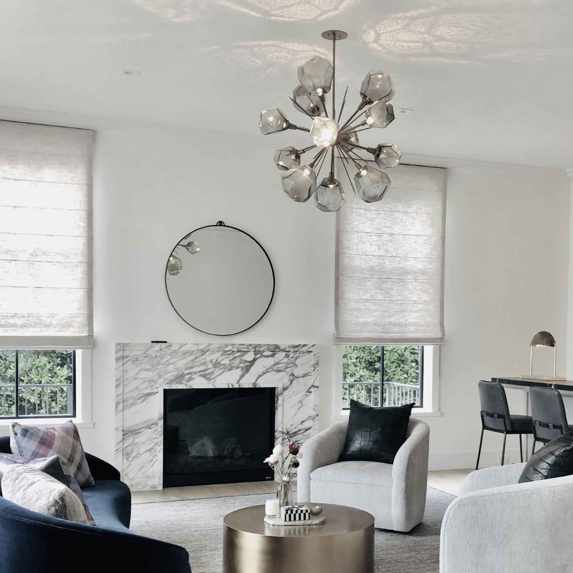 Imbued with mid-century character and sparkling elegance, the Gem Starburst LED Chandelier from Hammerton Studio is the perfect update over a living or dining room. Its Sputnik-inspired silhouette is interspersed with metal shards that further call attention to gemstone-inspired blown glass that glitters when illuminated.